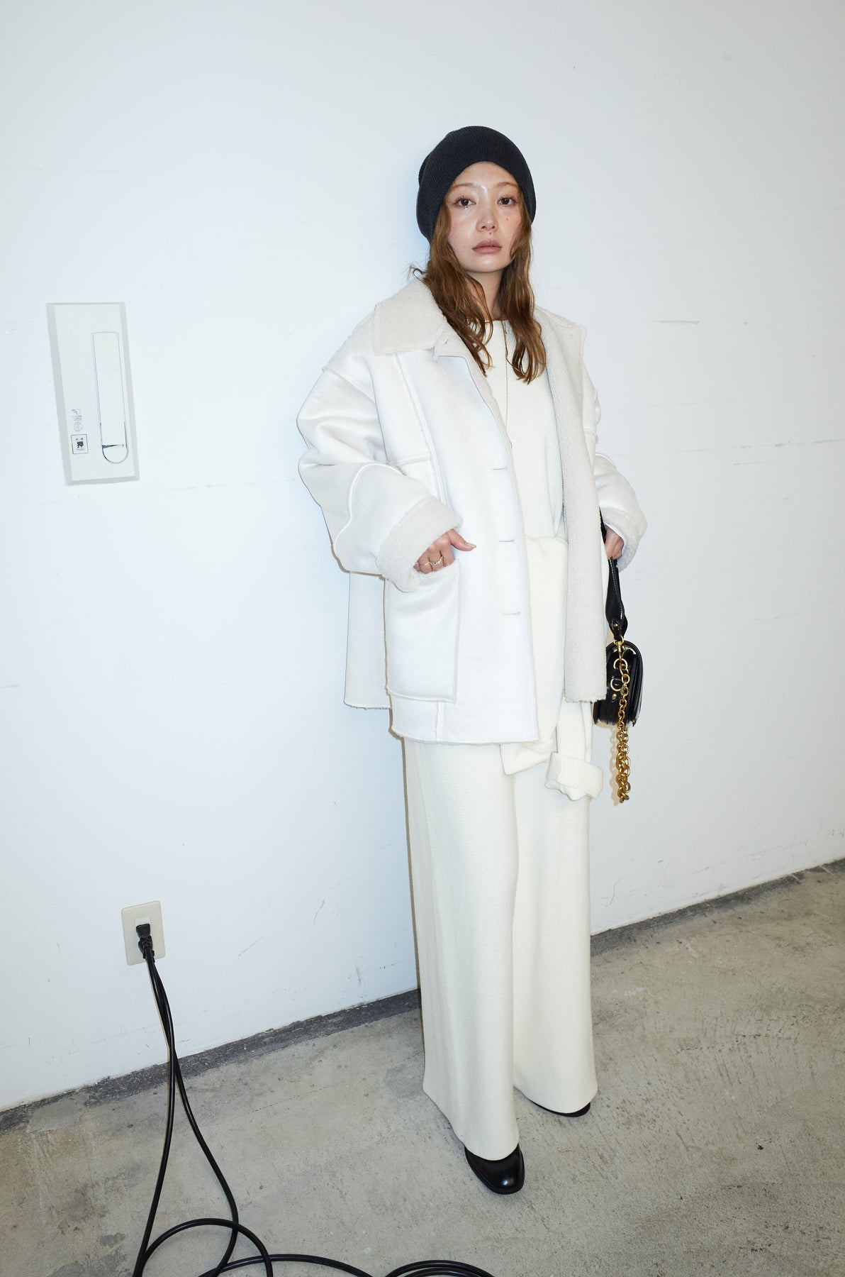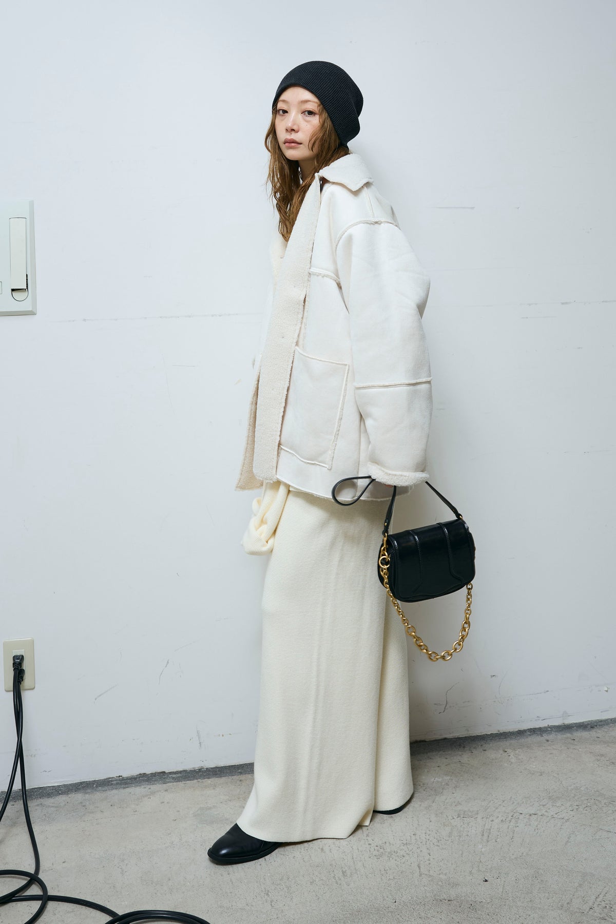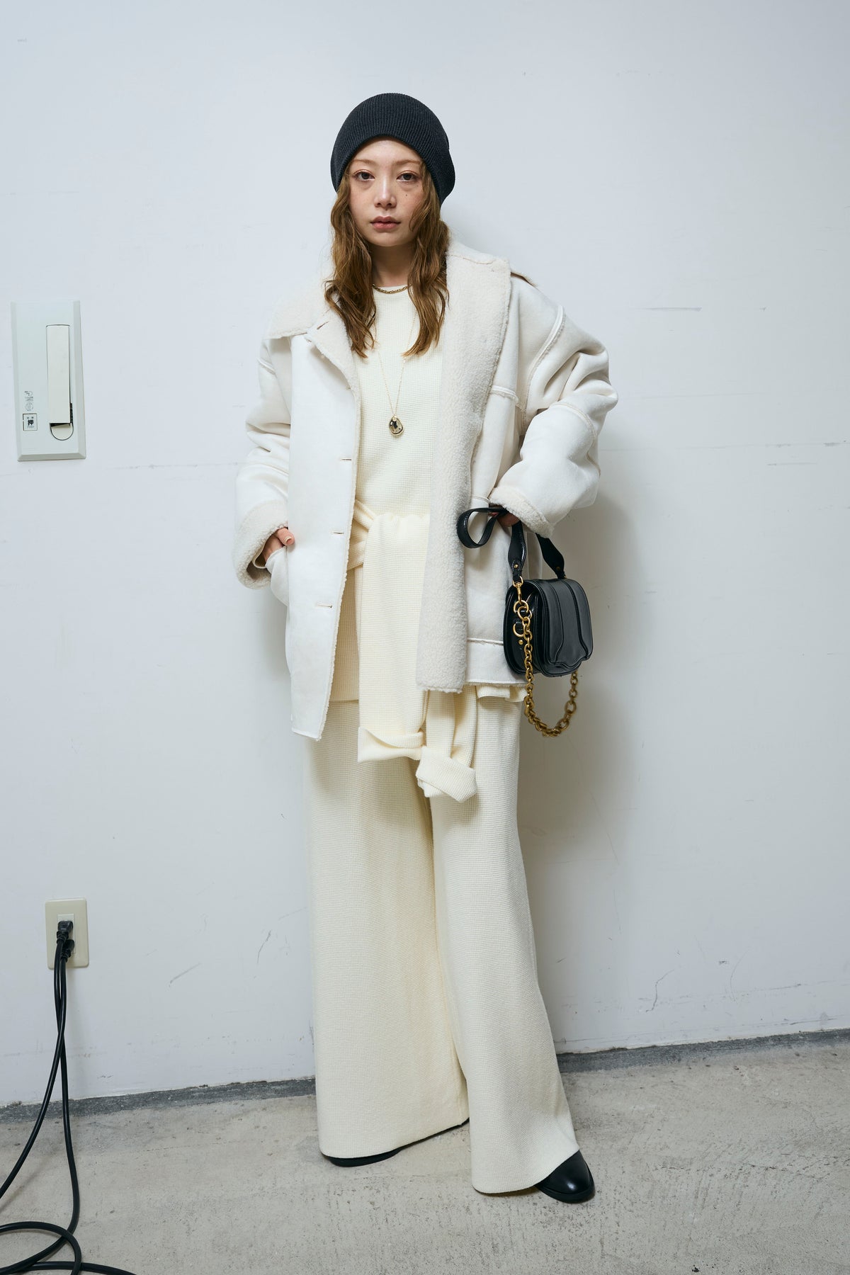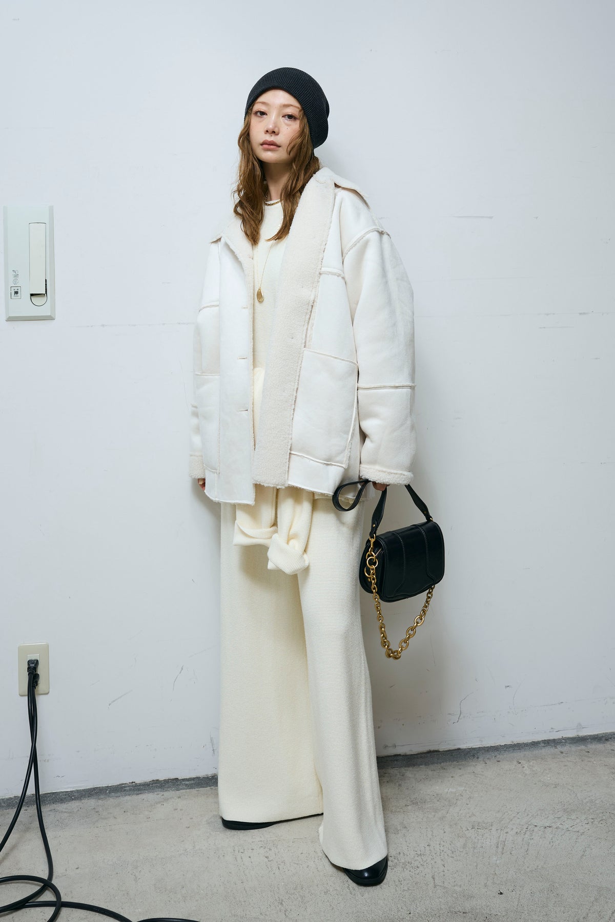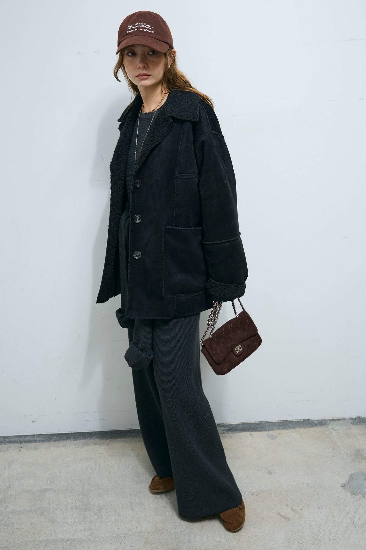 [予約/SET]ウエストレイヤードニットセットアップ+フェイクムートンカバーオール(2set)