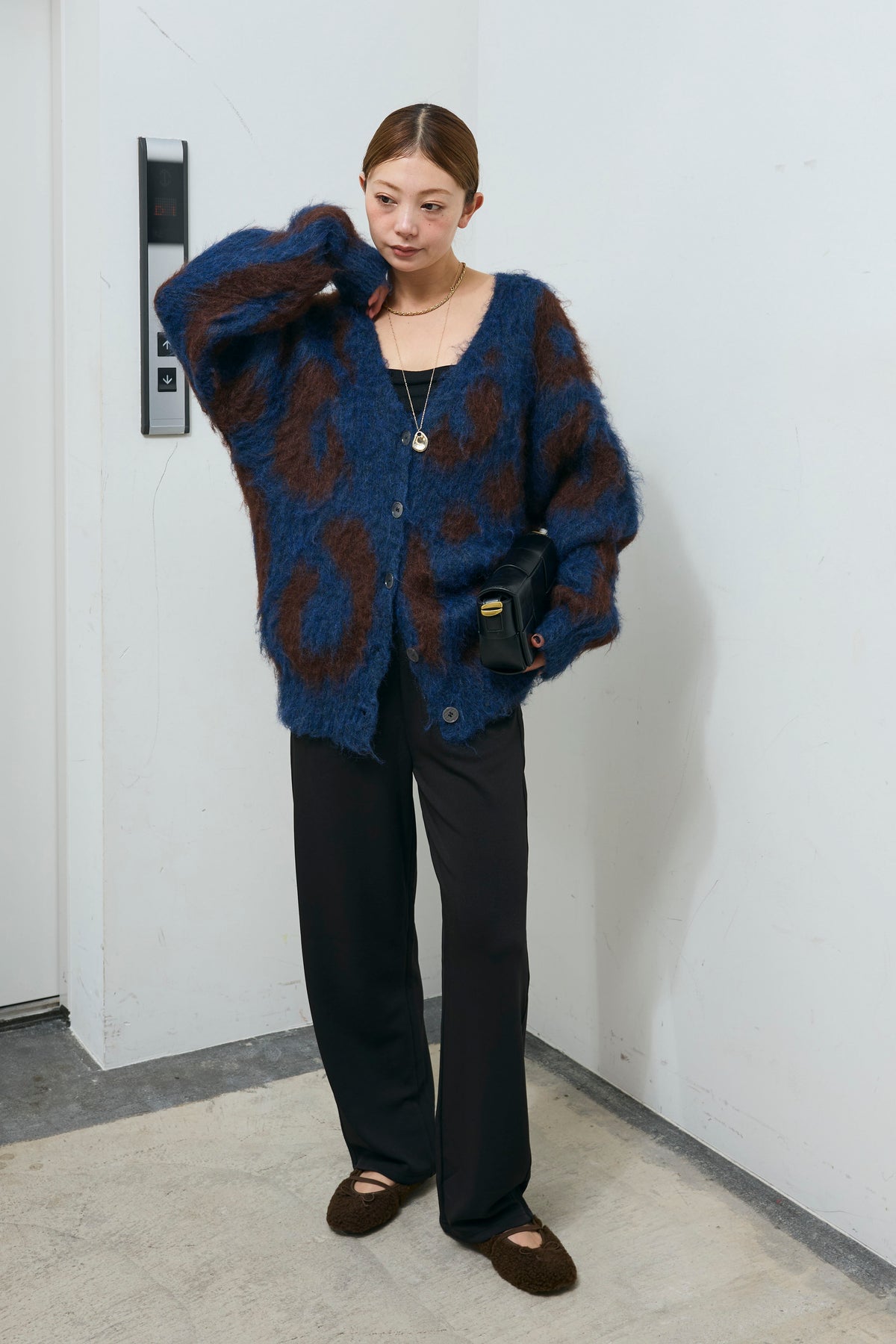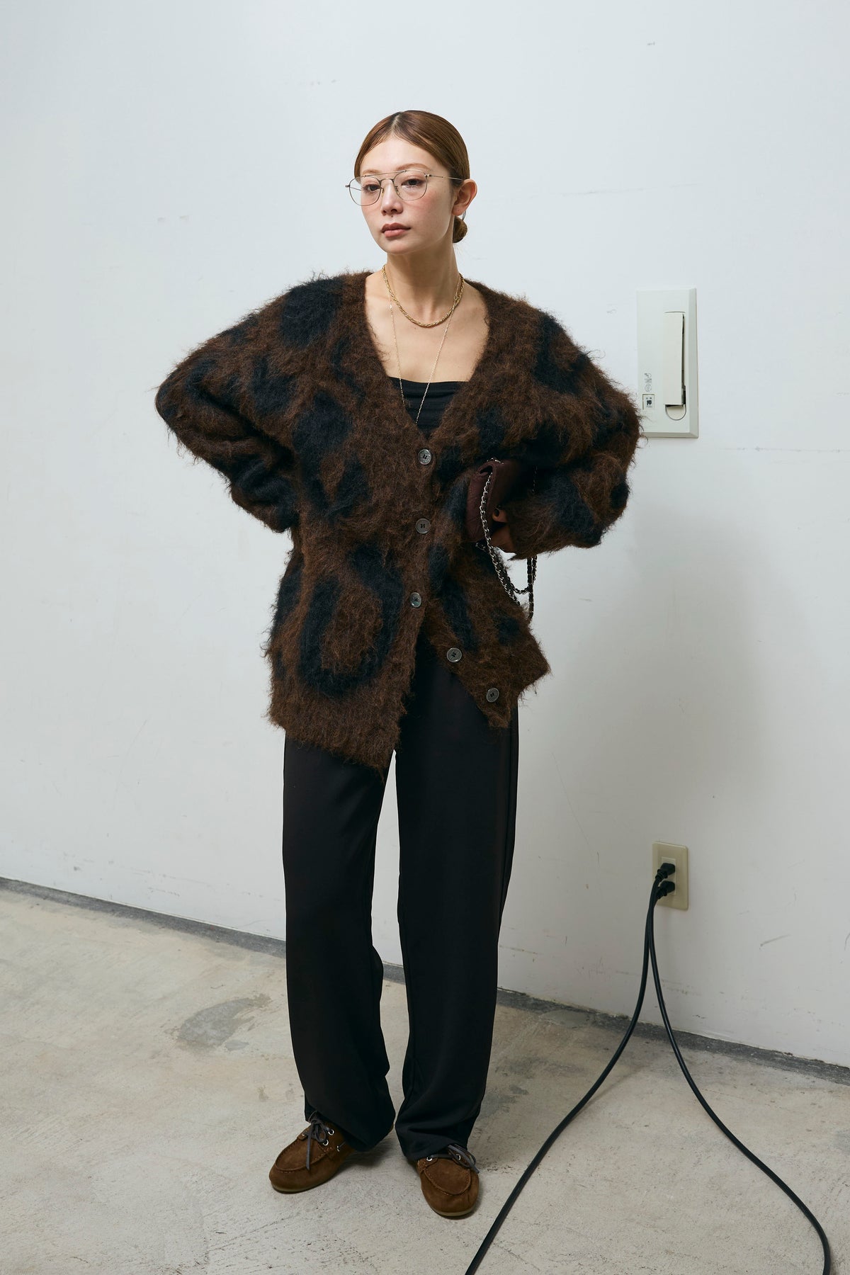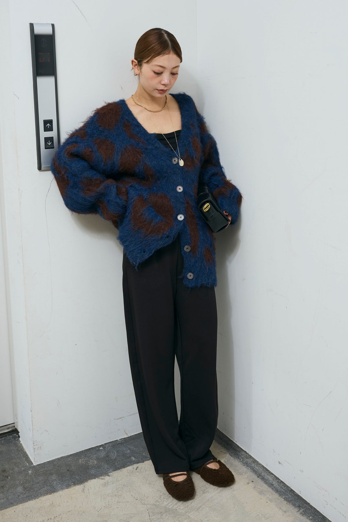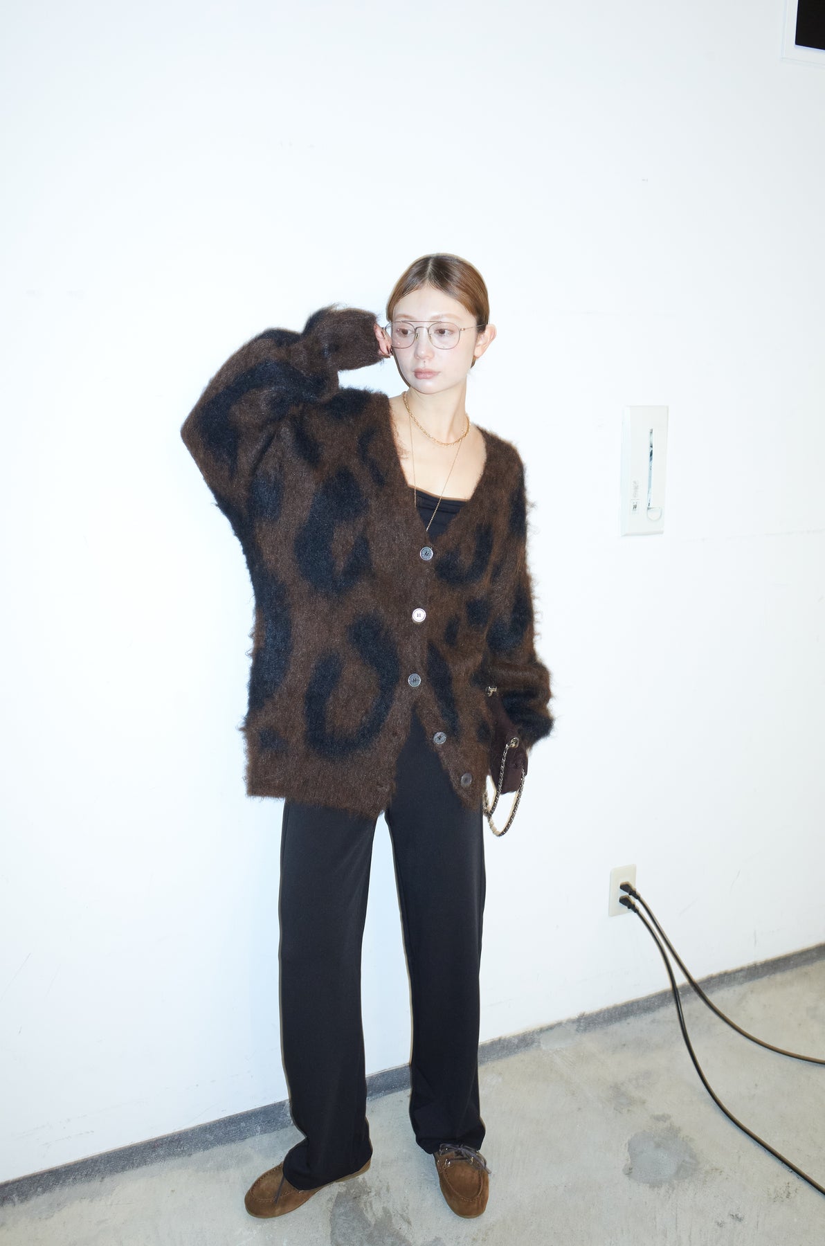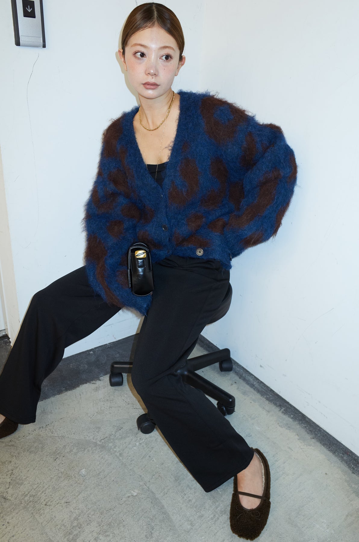 [予約/SET]ウールミックスシャギーレオパードカーデ+エフォートレスカーブパンツ(2set)