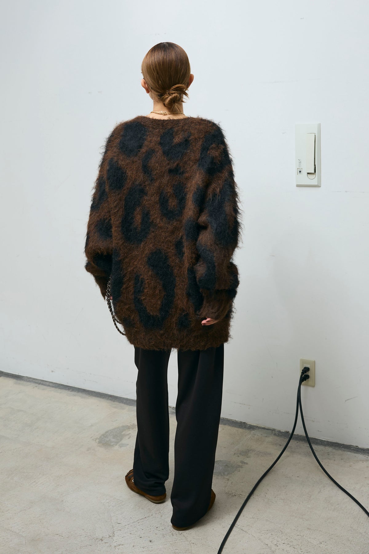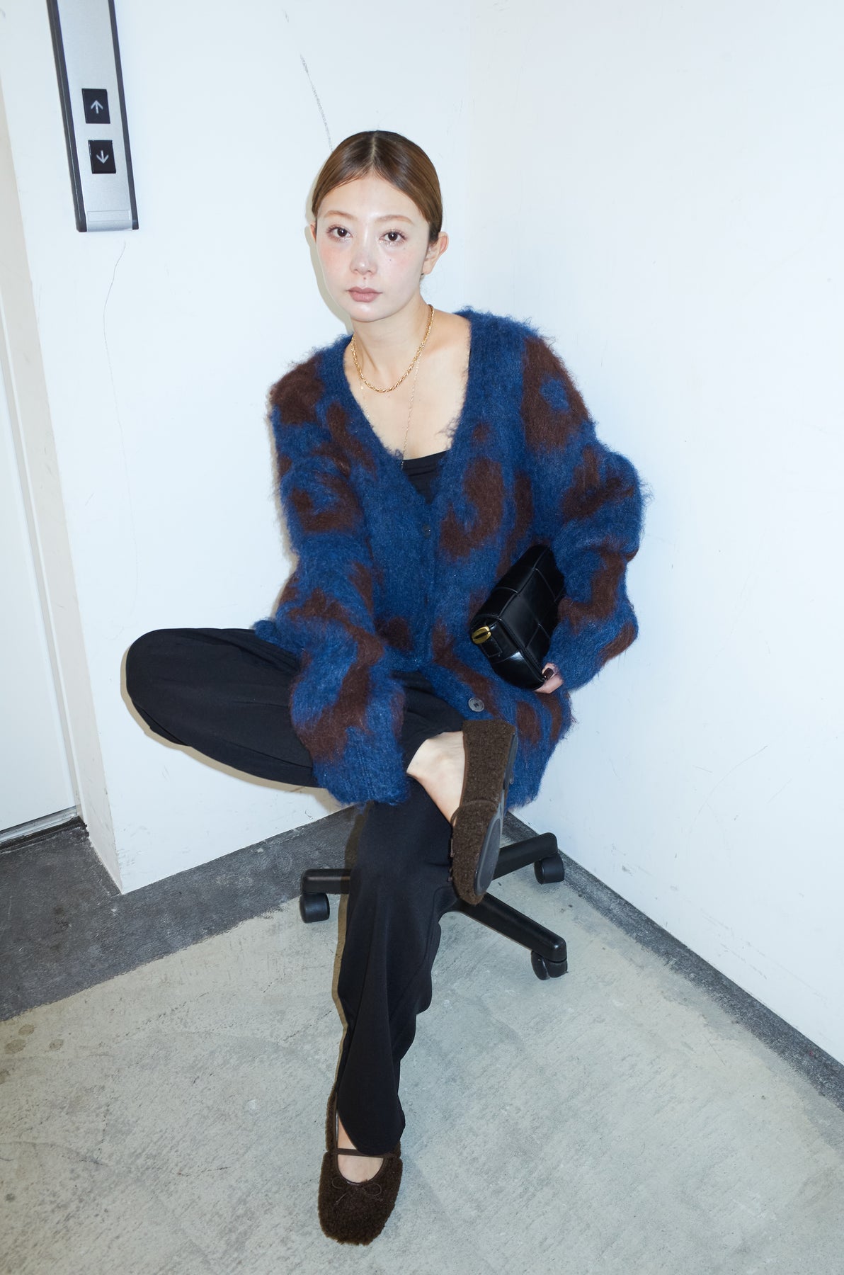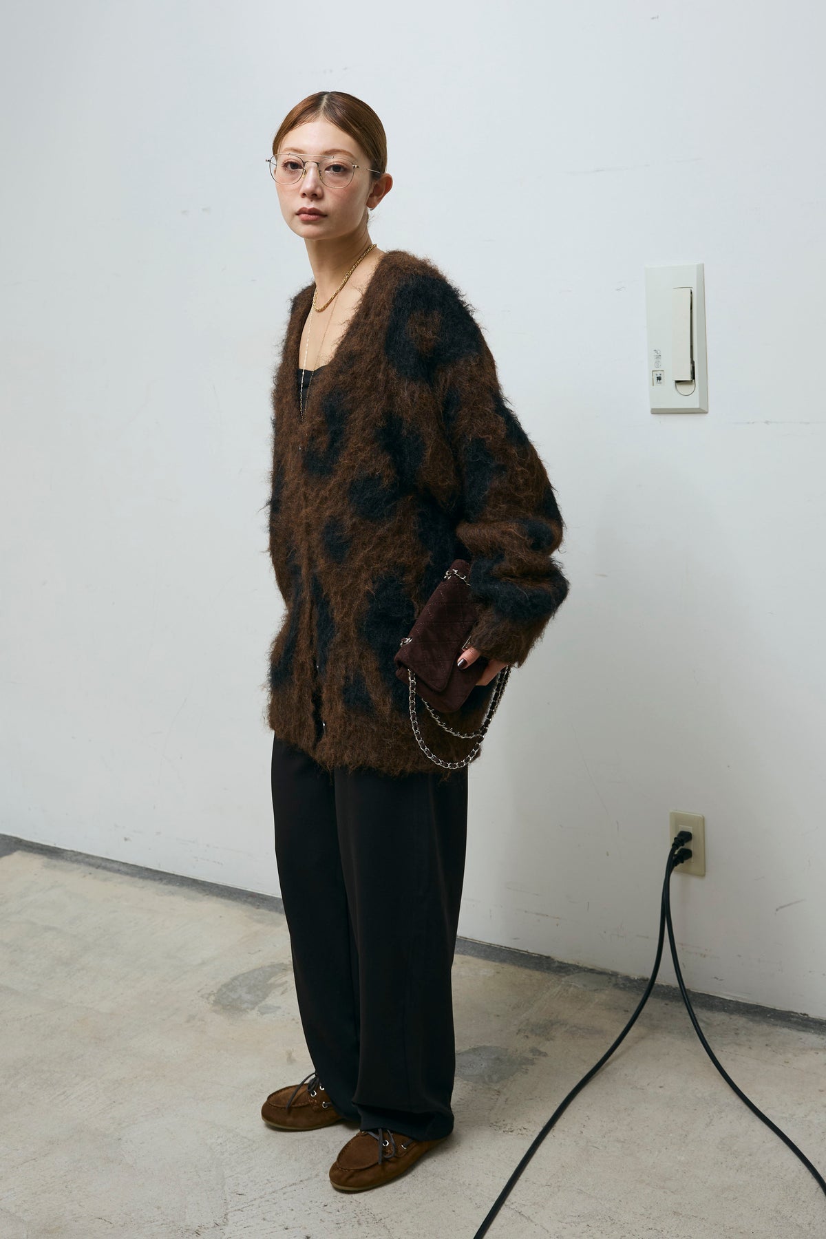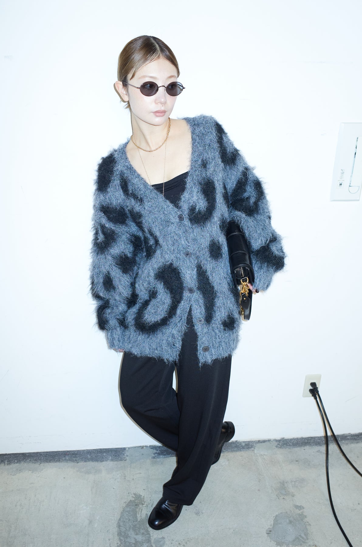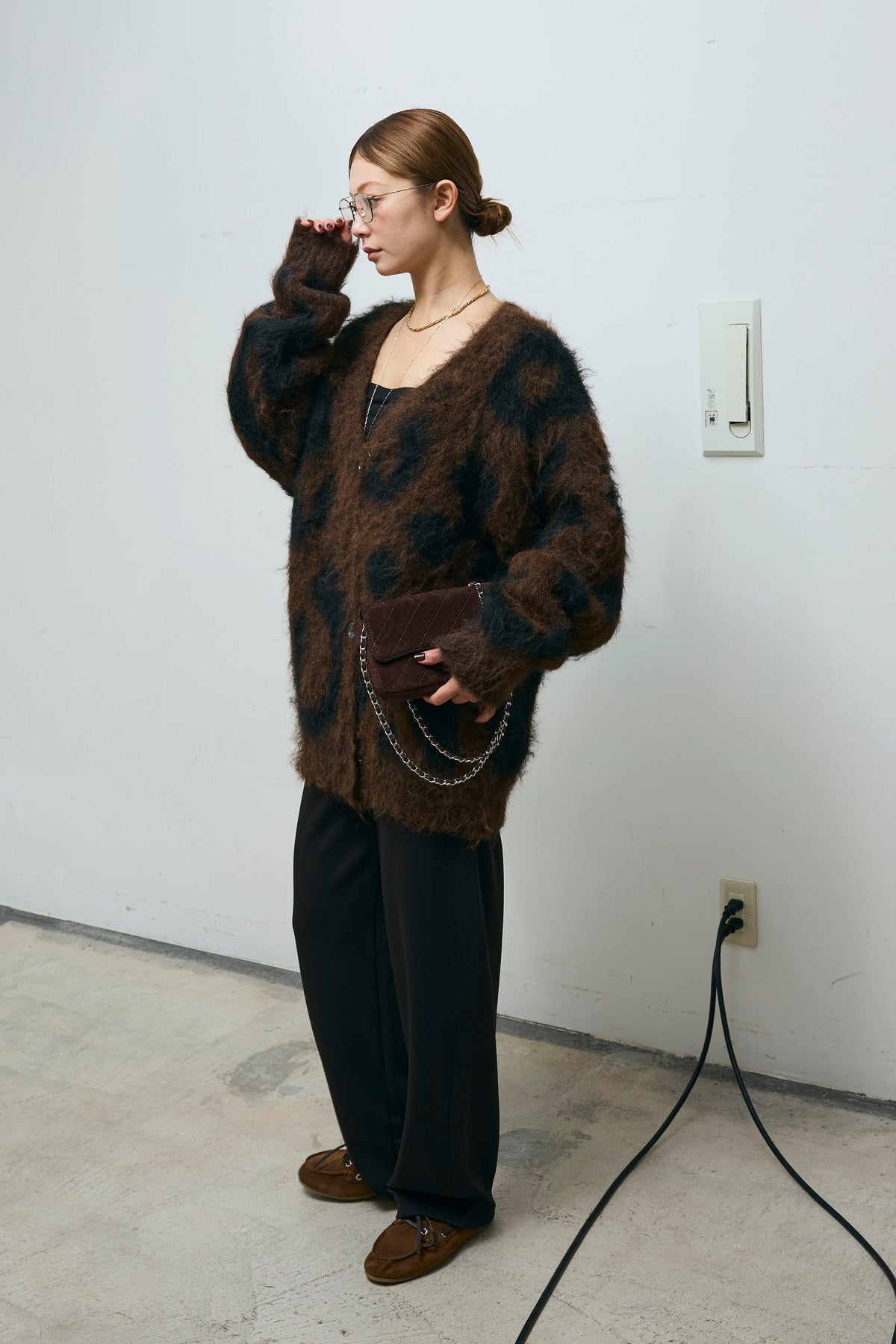 [予約/SET]ウールミックスシャギーレオパードカーデ+エフォートレスカーブパンツ(2set)