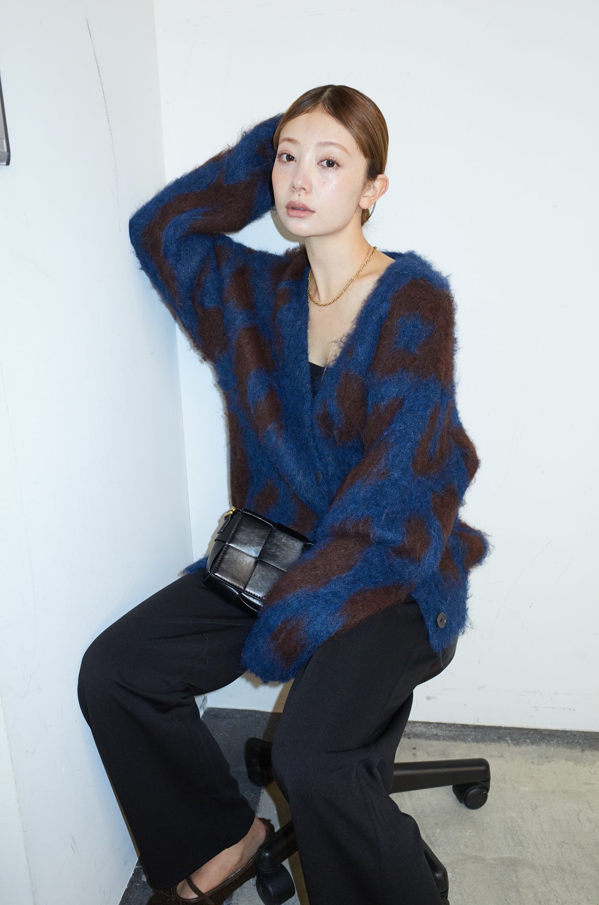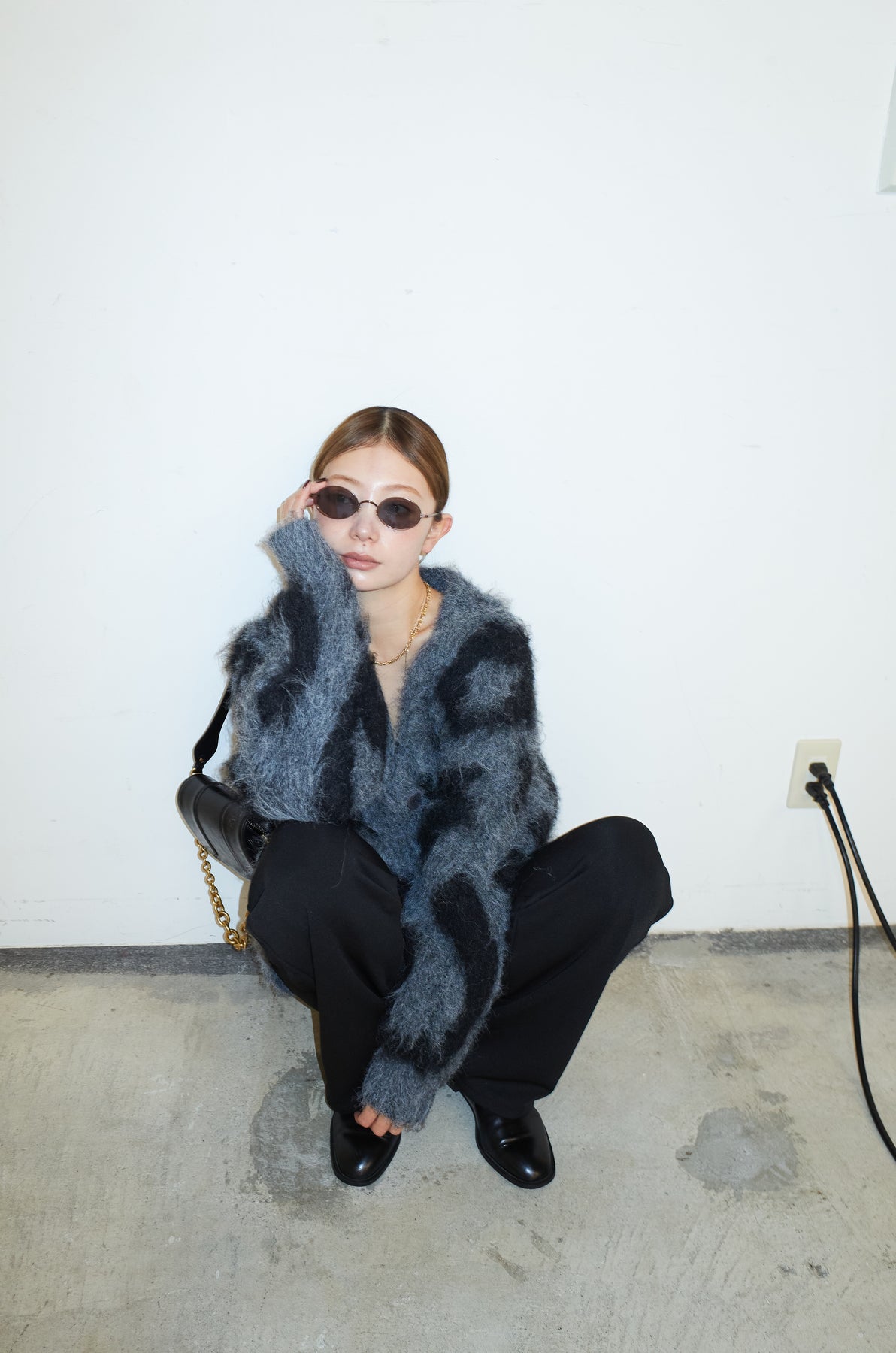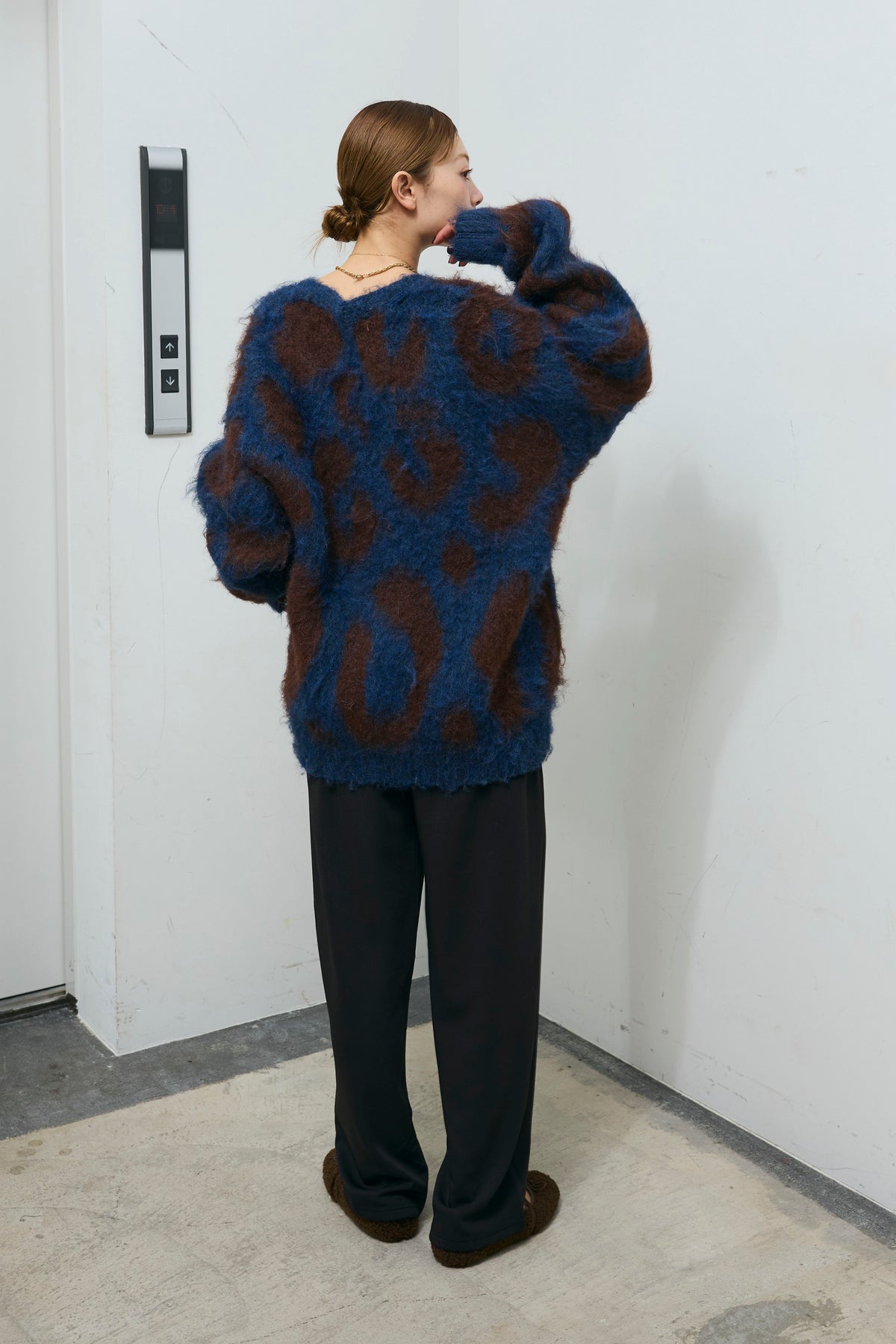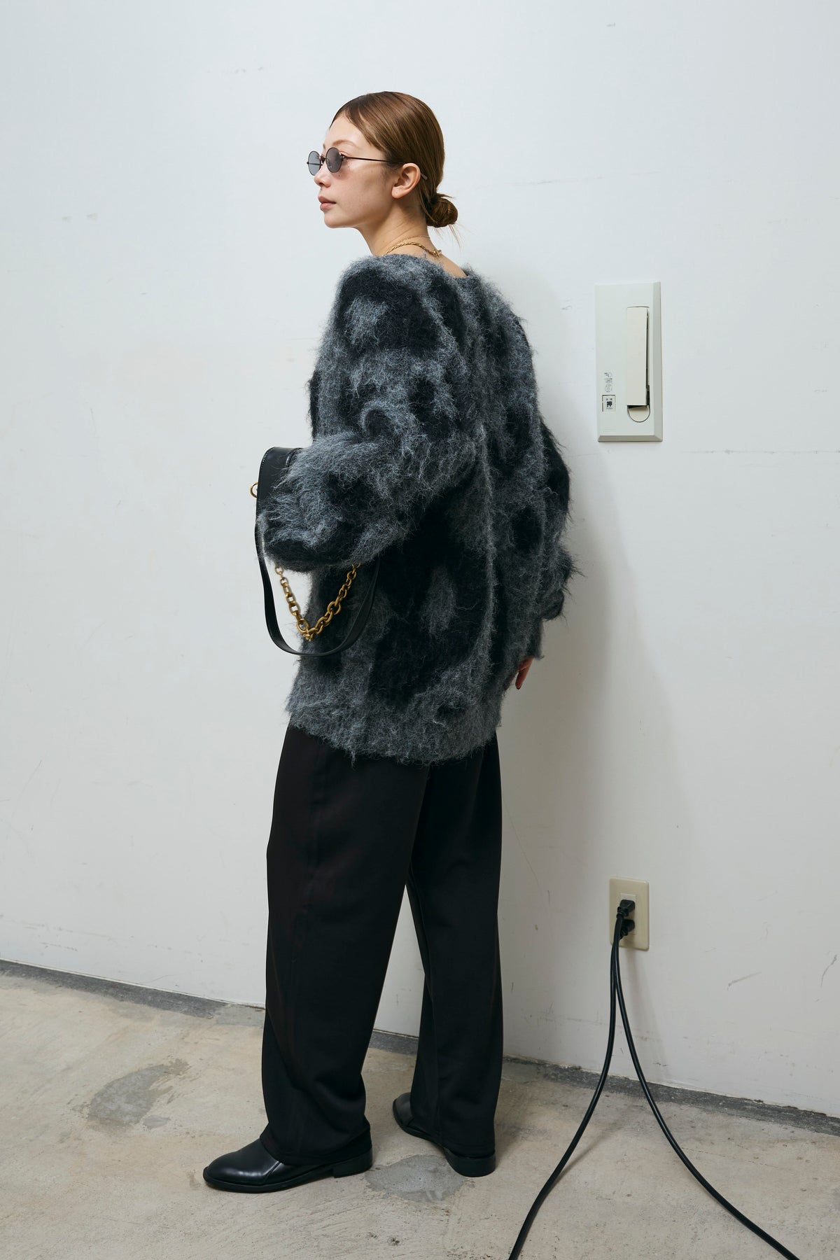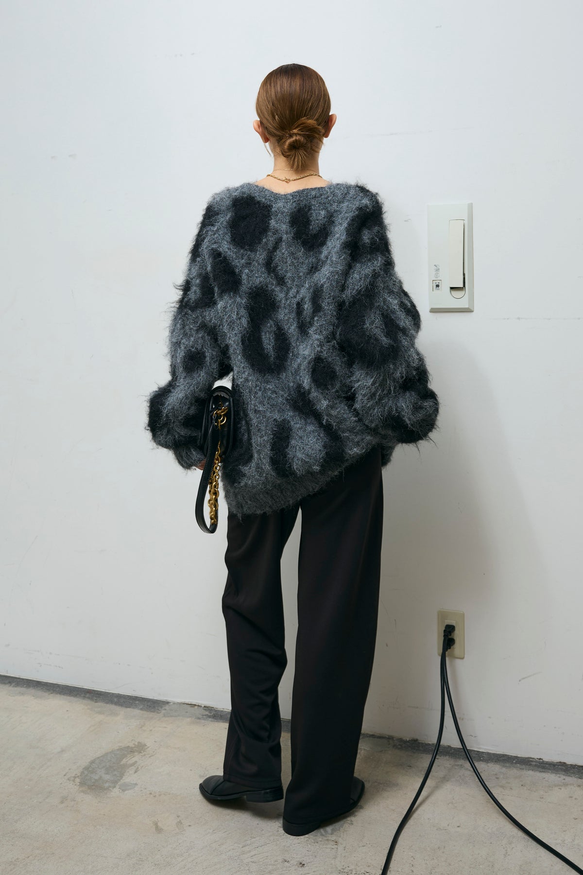 [予約/SET]ウールミックスシャギーレオパードカーデ+エフォートレスカーブパンツ(2set)