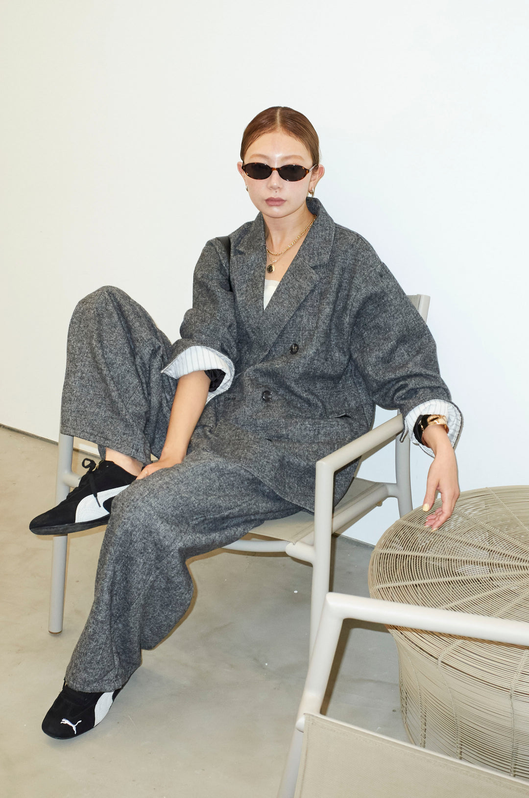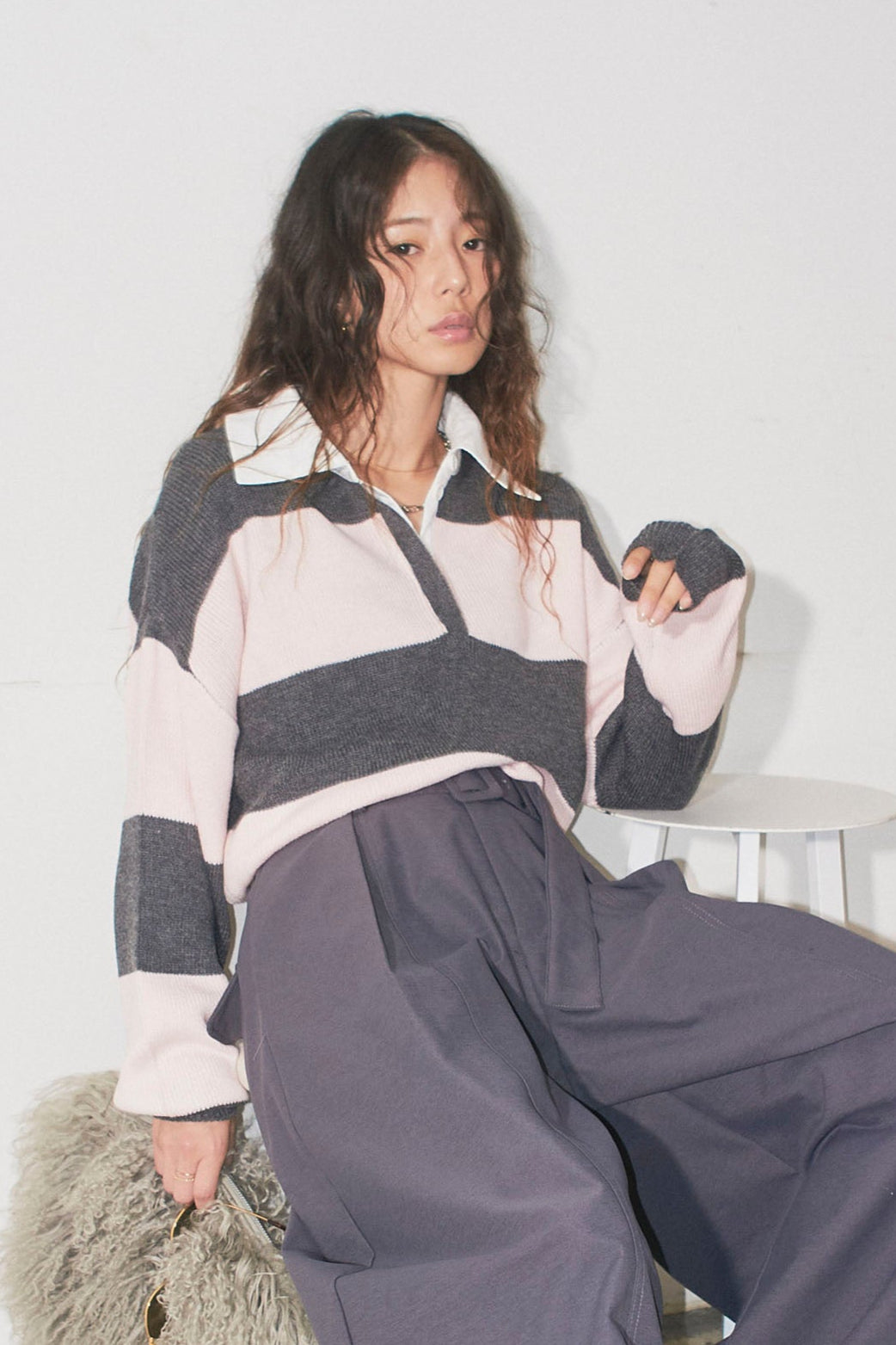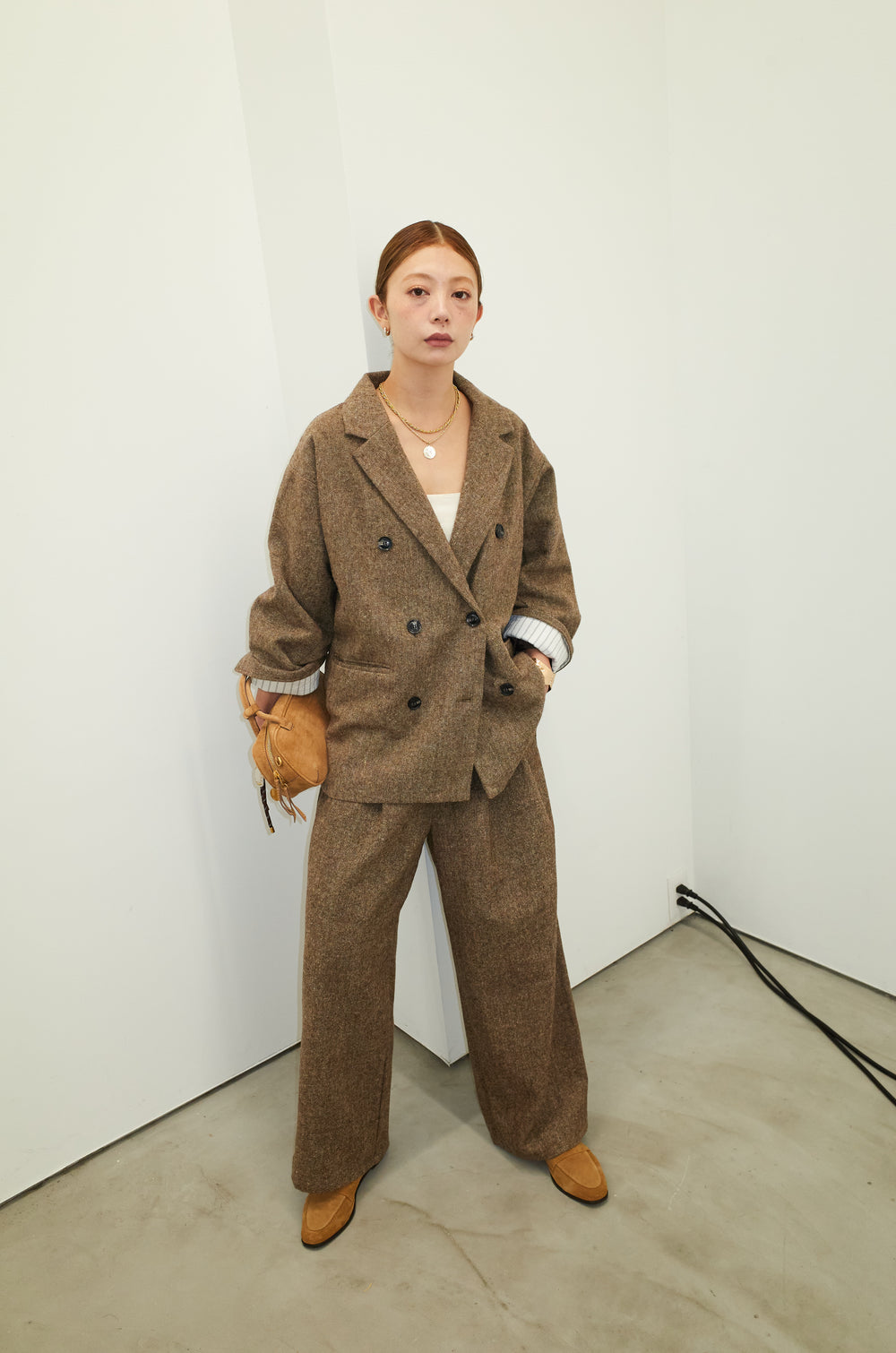 [予約/SET]ループツイードビックカフスシャツジャケット+リラックスニットパンツ(2set)