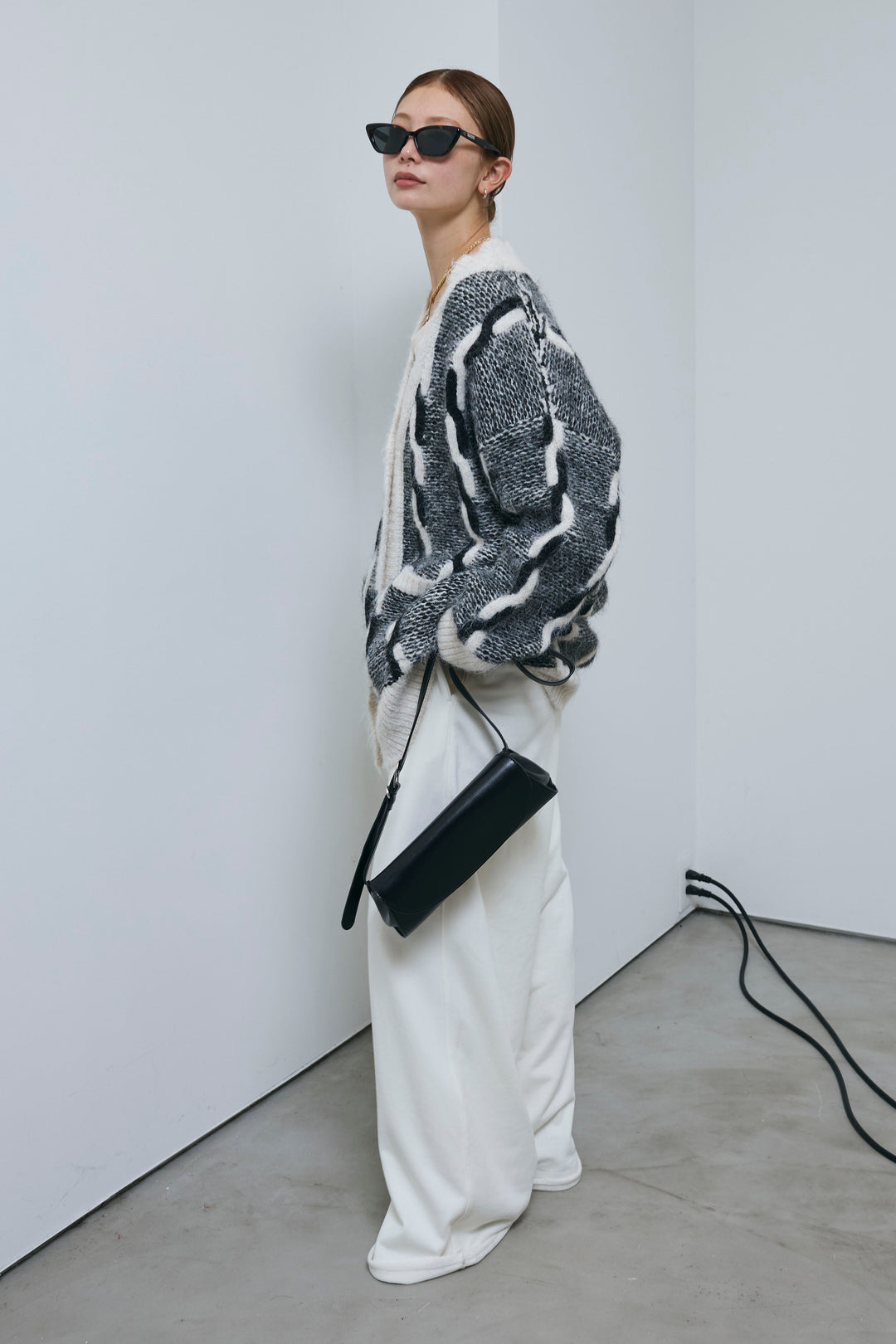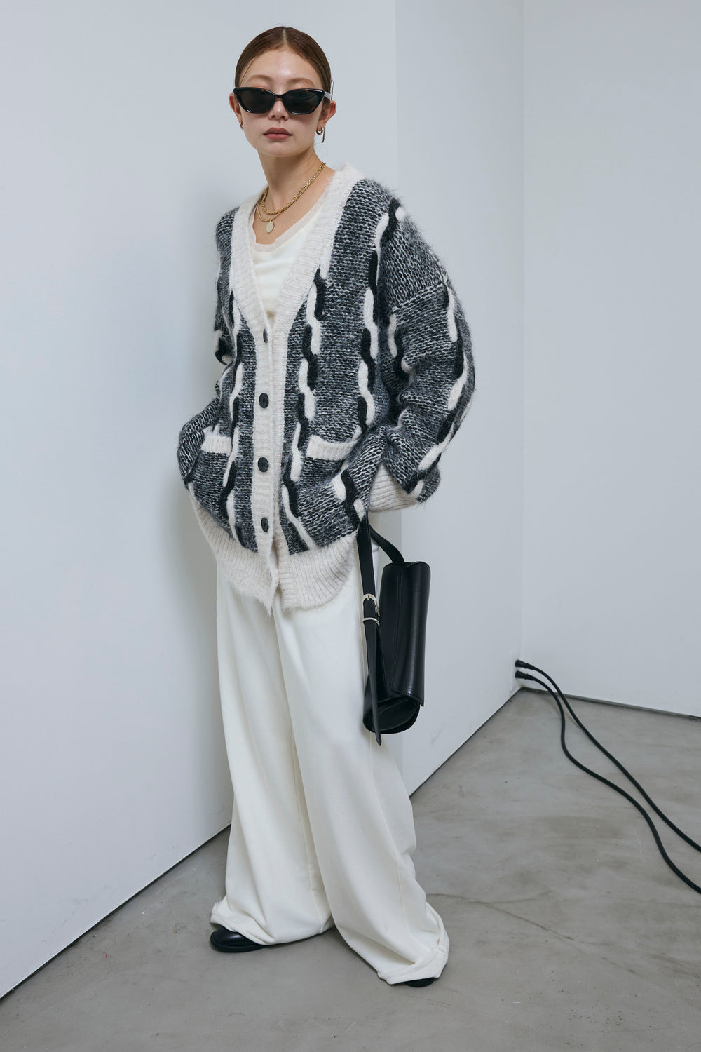 [予約/SET]ロープ柄ボリュームニットカーディガン+エフォートレススウェットパンツ(2set)