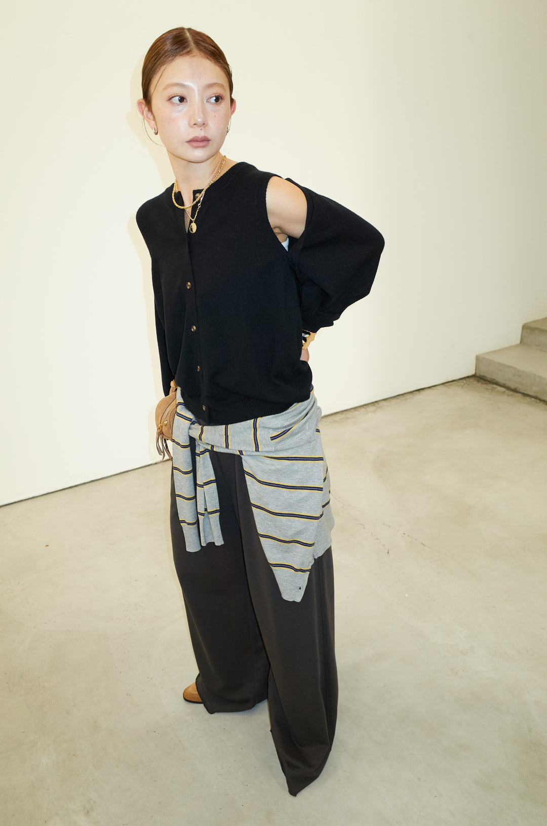 [予約/SET]ループ付きミニフェザーニット+ウエスト配色タックワイドパンツ(2set)