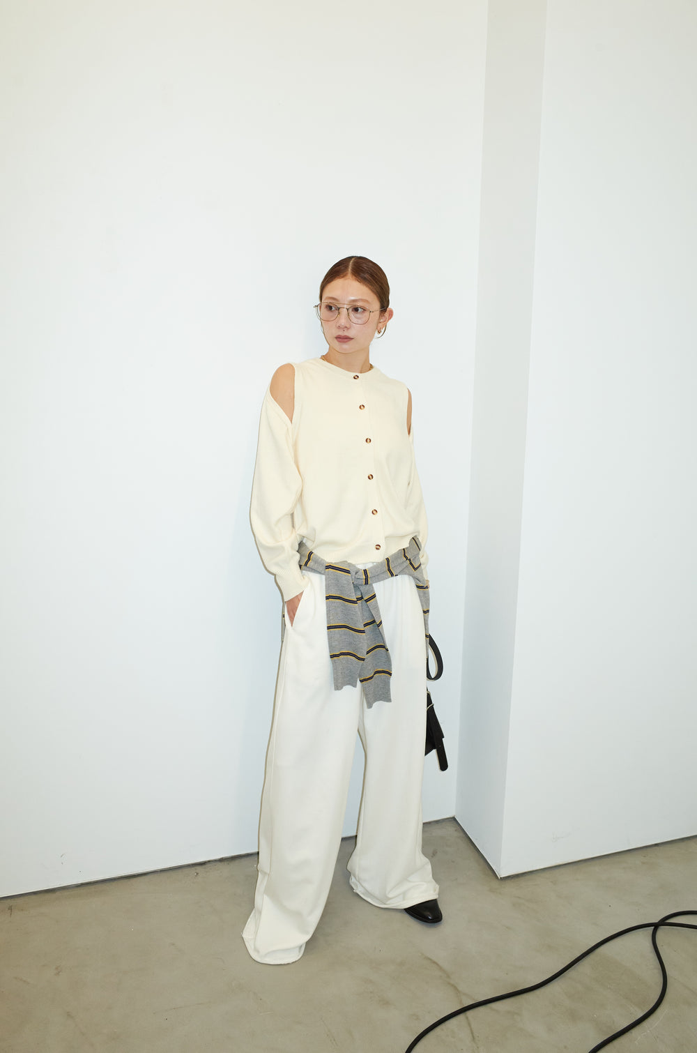 [予約/SET]アシンメトリーシアーニット+リラックスニットパンツ(2set)