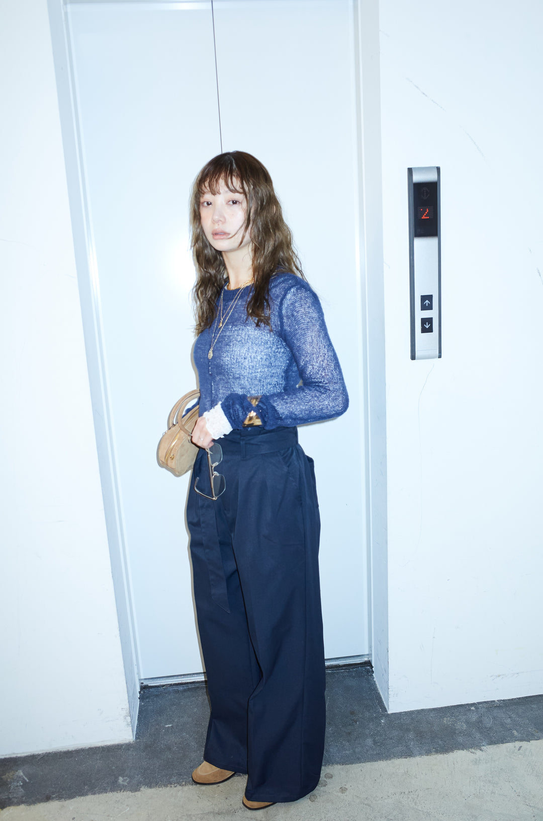 [予約/SET]モヘアセンターリンキングシアーニット+ツイルチノベルトパンツ(2set)