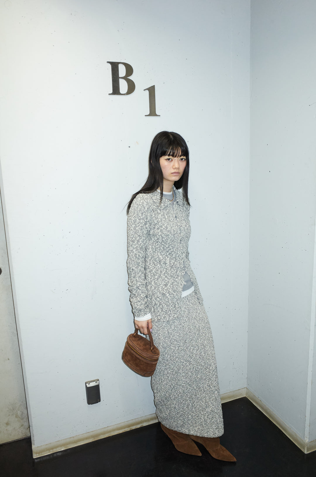 [予約/SET]ツイード風MIXスラブポロカーデ+ツィード風MIXスラブスカート(2set)