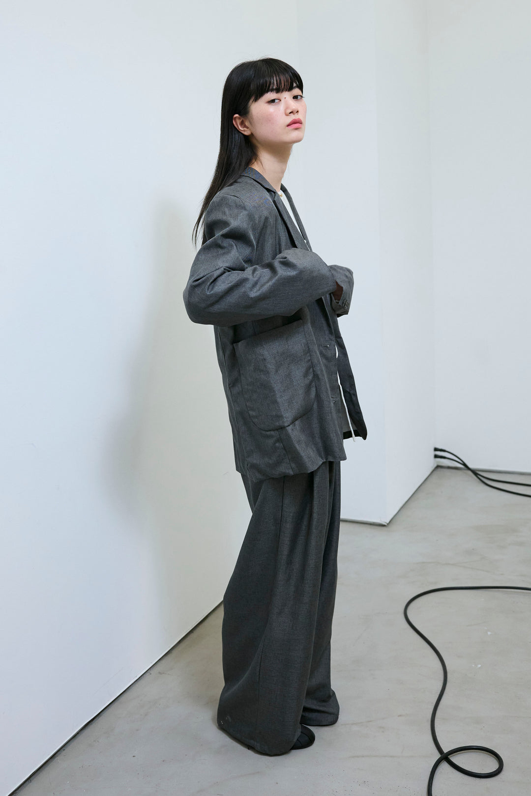 [予約/SET]シアードレープカットソー+パイピングタックカーブパンツ(2set)