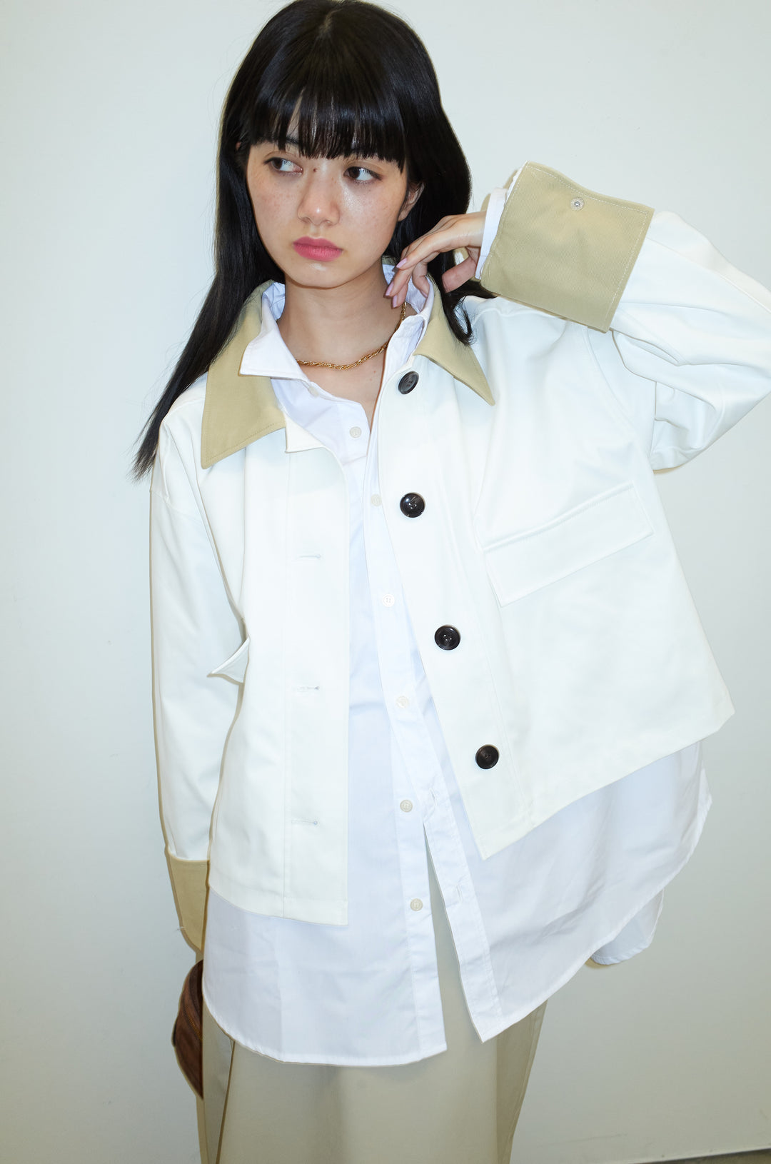 [予約/SET]襟配色カバーオール+TCブロード袖刺繍オーバーシャツ(2set)