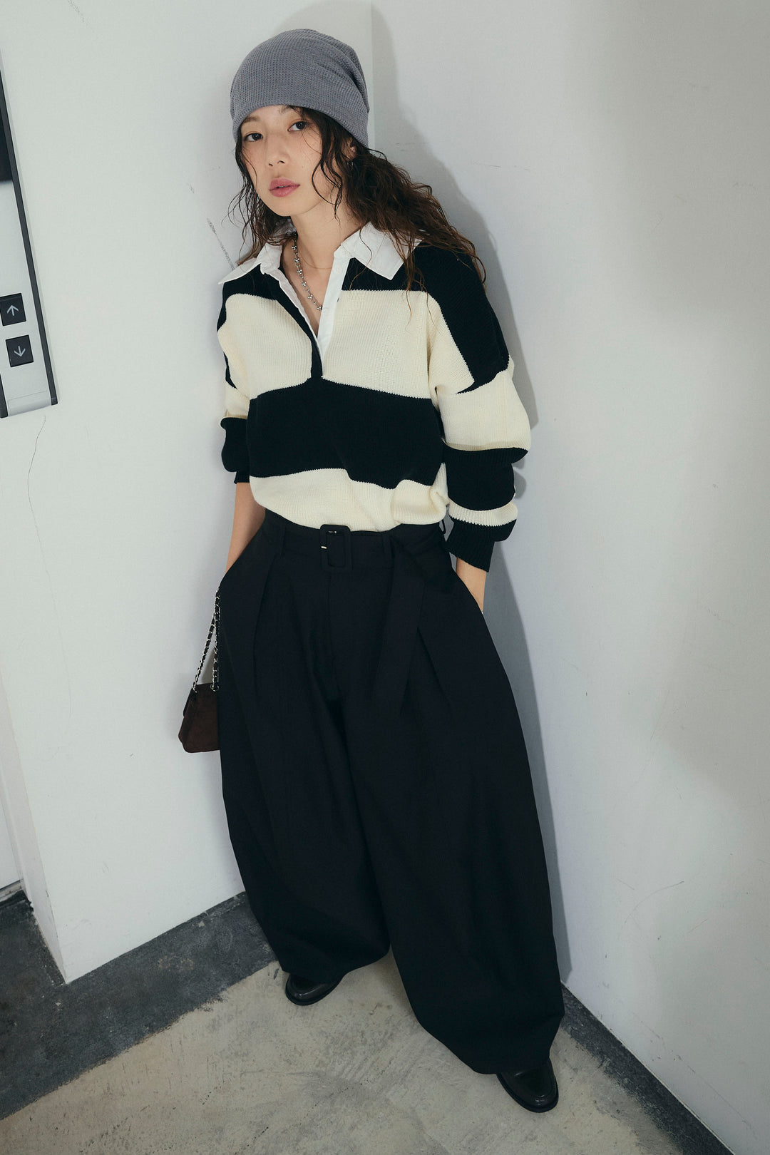 [予約/SET]ラガーニットプルオーバー+ベルト付きコクーンワイドパンツ(2set)