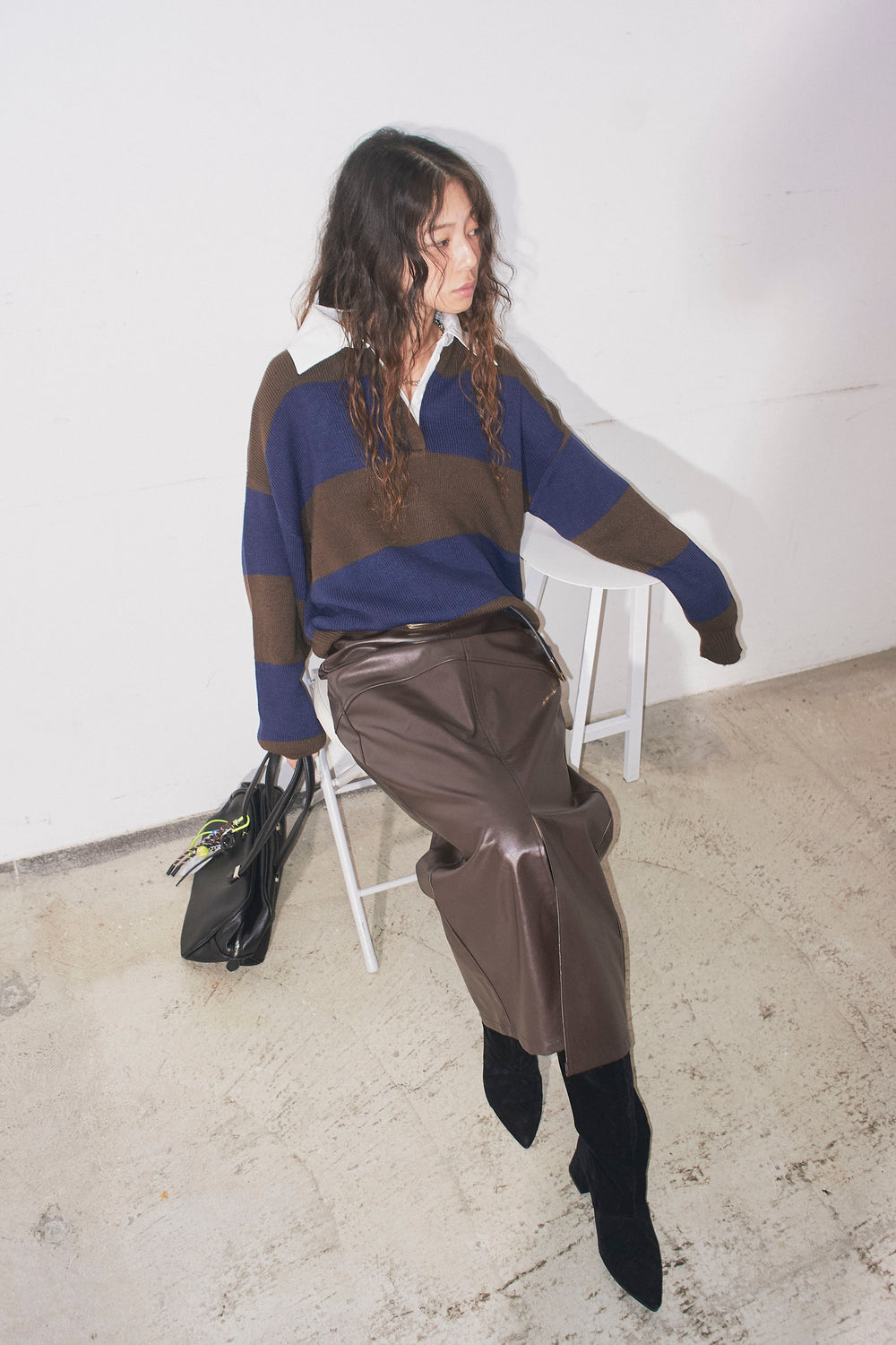 [予約/SET]ラガーニットプルオーバー+エコレザーバックスリットペンシルスカート(2set)