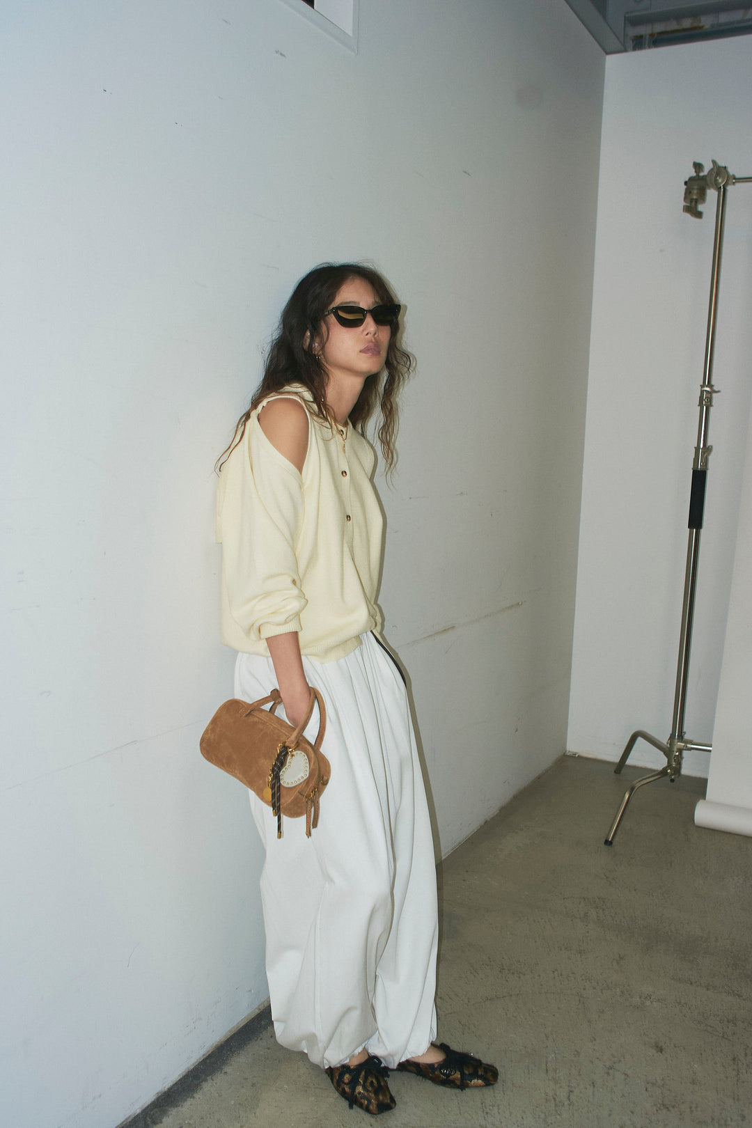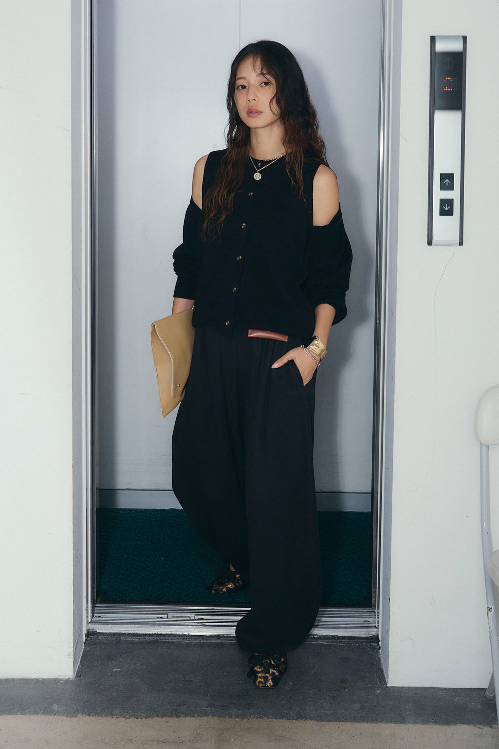 [予約/SET]ケーブルカットアウトニットTOP+ベルト付きコクーンワイドパンツ(2set)