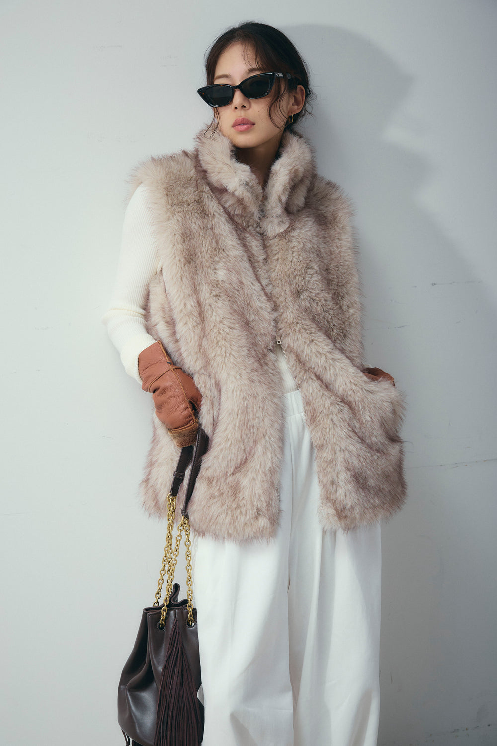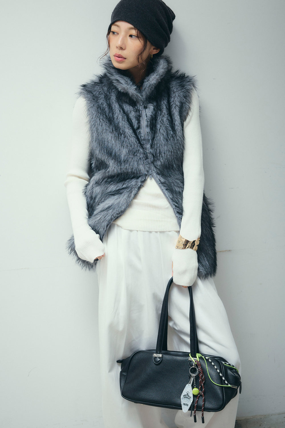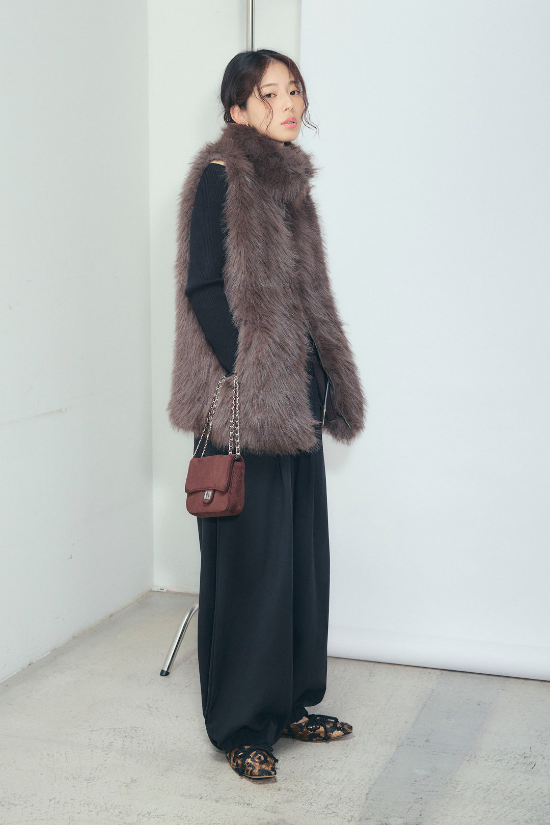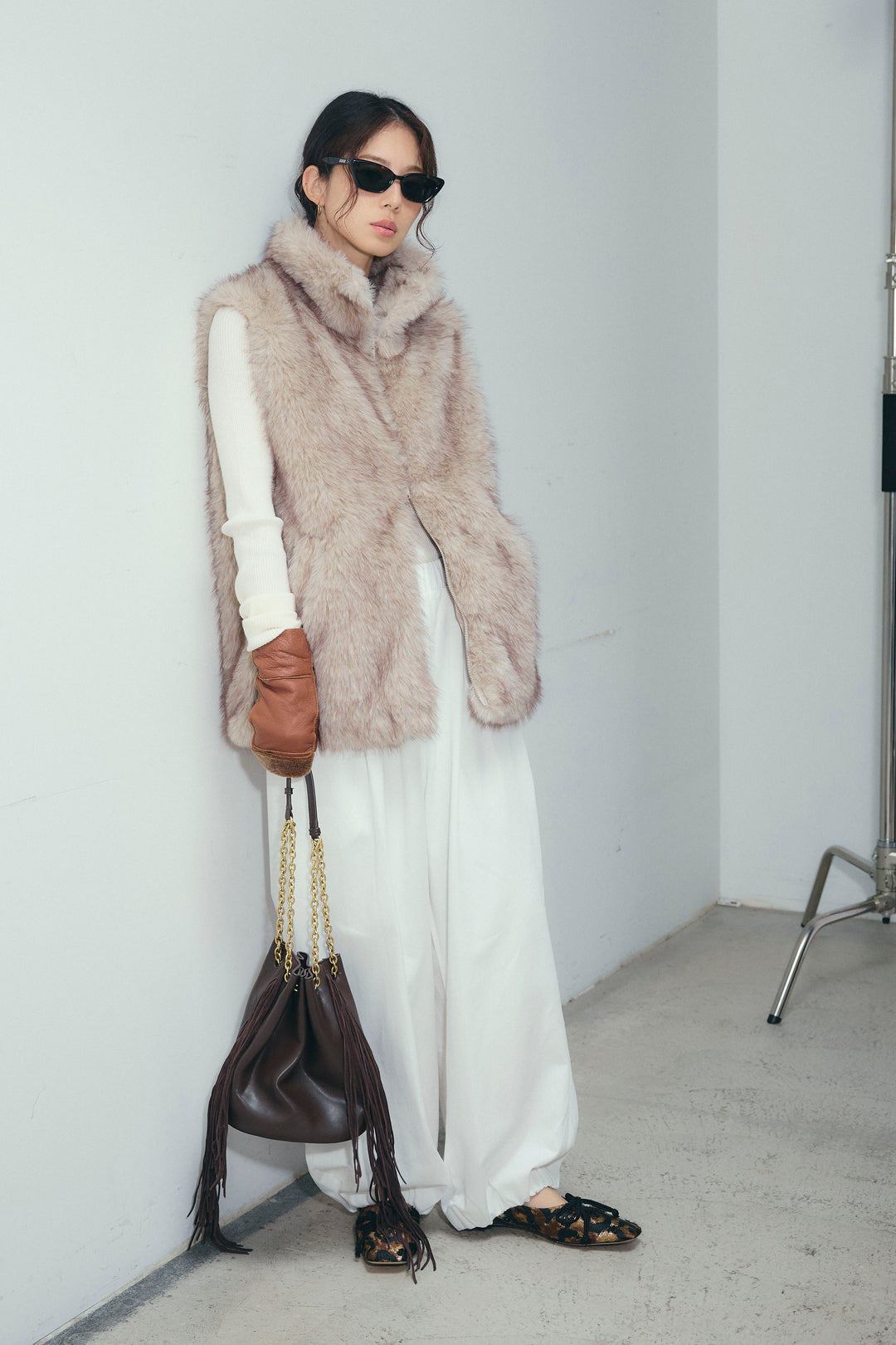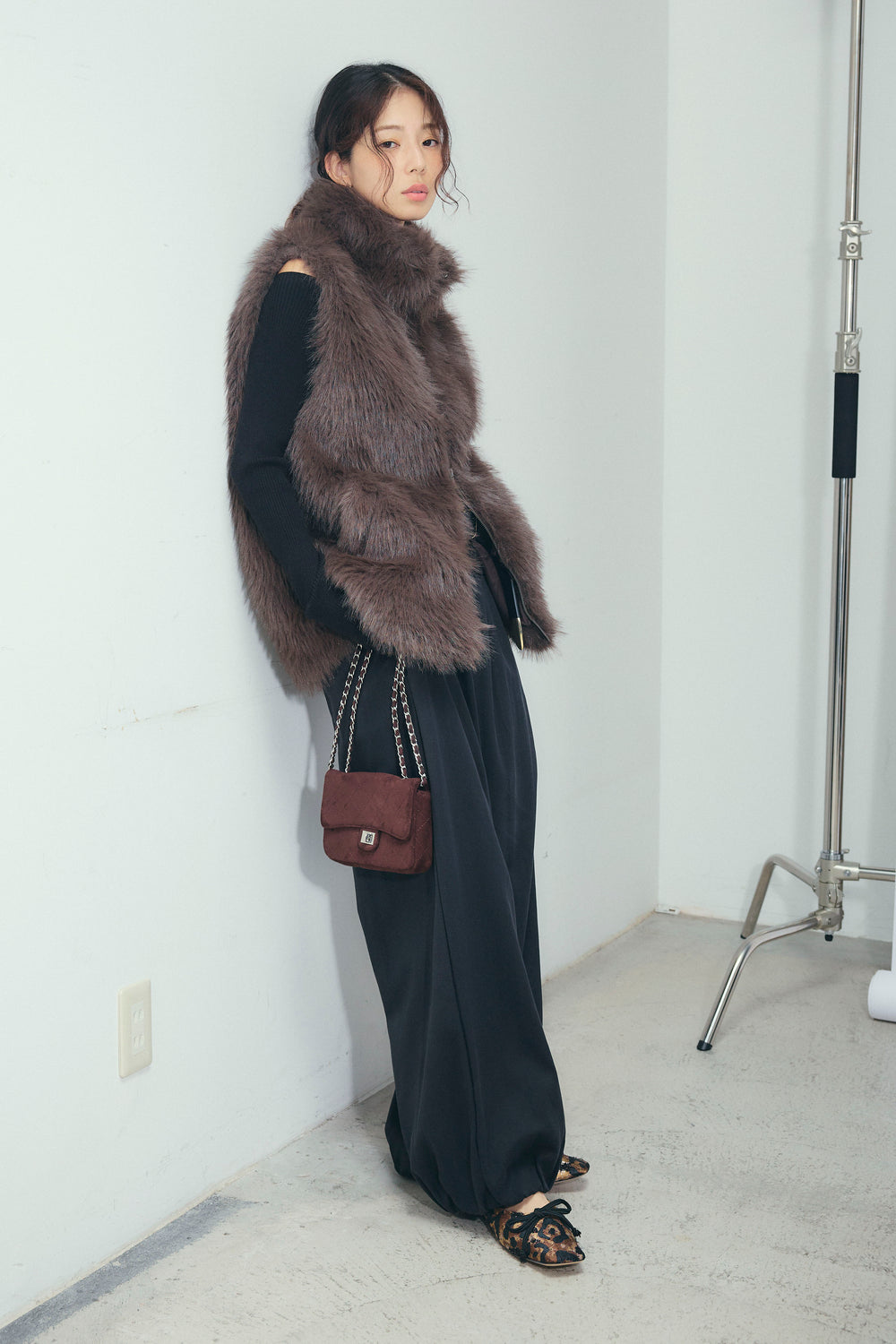 [予約/SET]エコファースタンドジレ+オフショルリブニット+バルーンパンツ(3set)