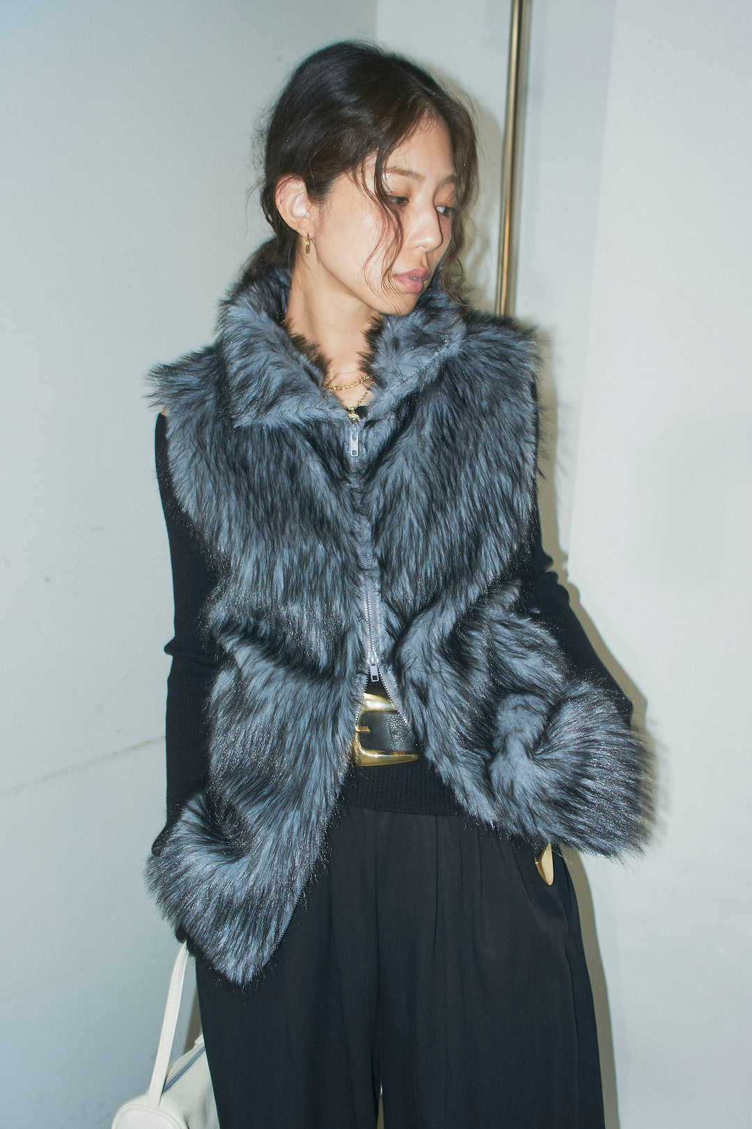 [予約/SET]エコファースタンドジレ+オフショルリブニット(2set)