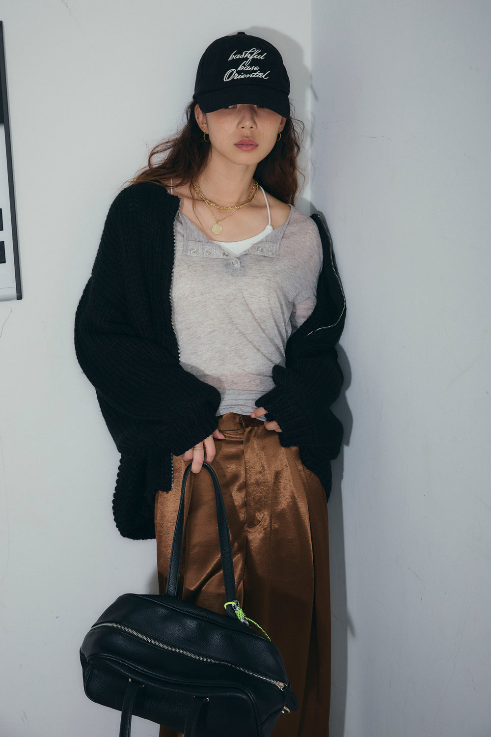 [予約/SET]ロービングケーブルオーバーサイズジップPO+シアーヘンリーネックロンT+サテンタックワイドパンツ(3set)