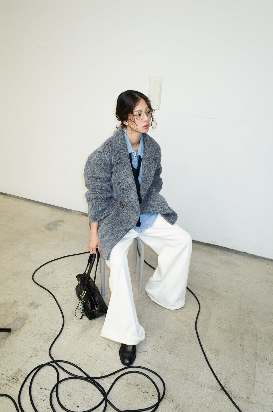[予約/SET]シャギーミドルコート+オーバーサイズデニムシャツ+エフォートレススウェットパンツ(3set)