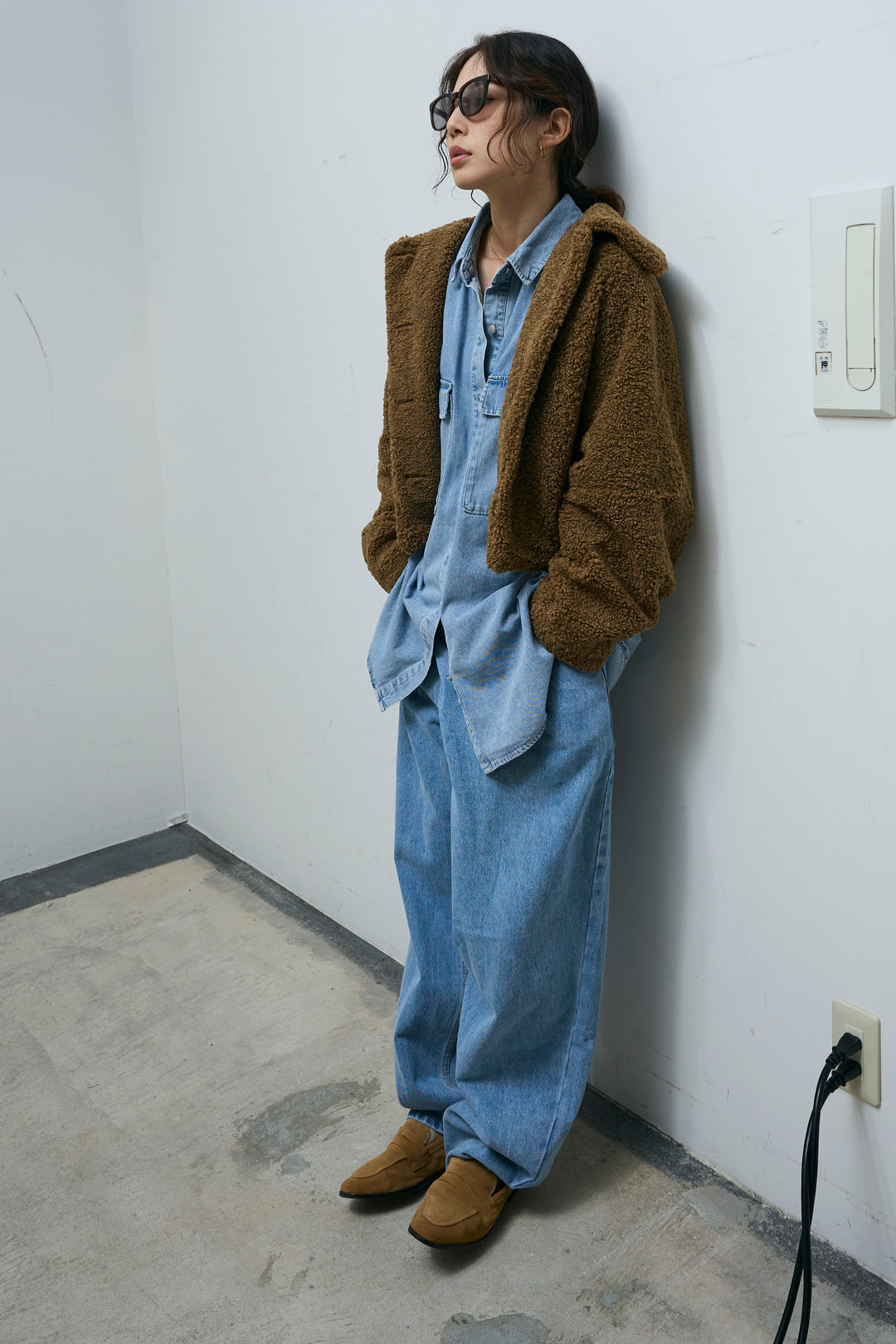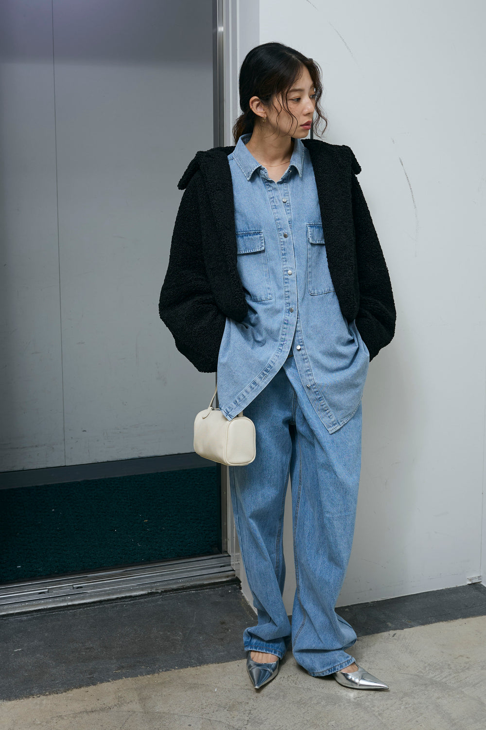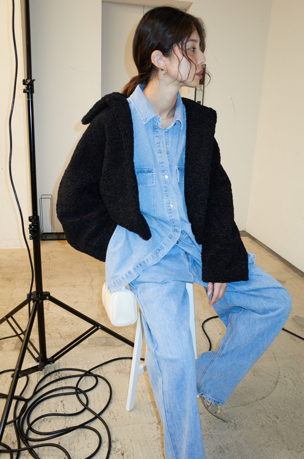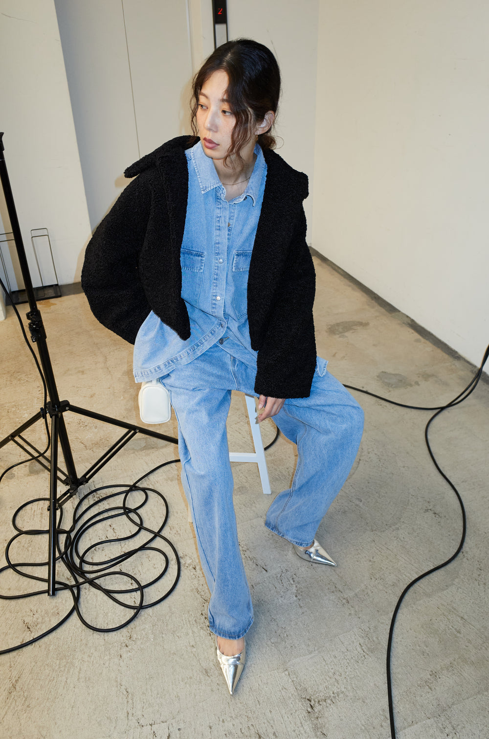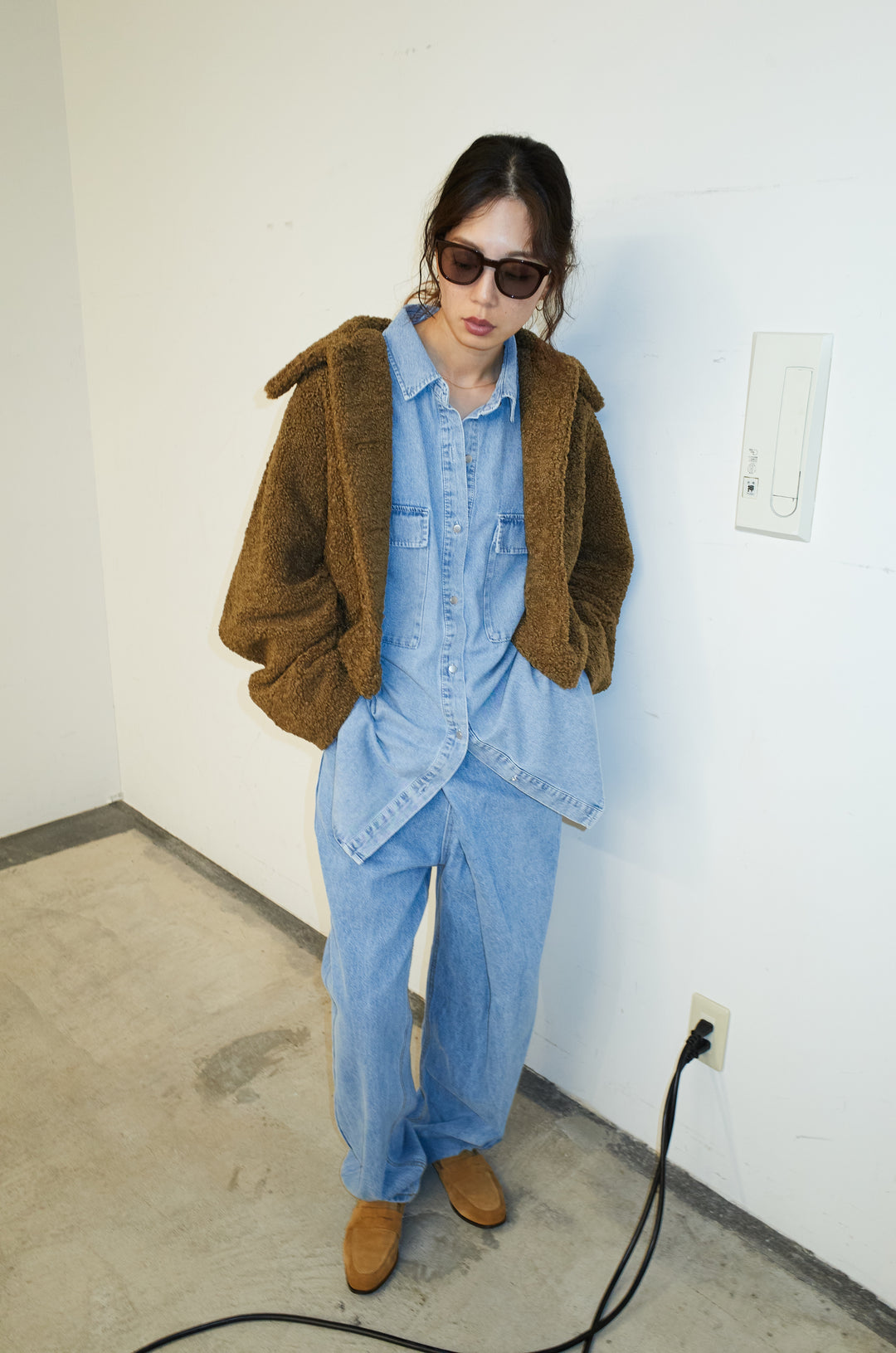 [予約/SET]シャギーミドルコート+オーバーサイズデニムシャツ(2set)