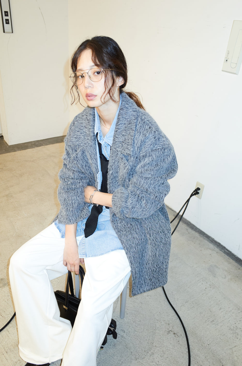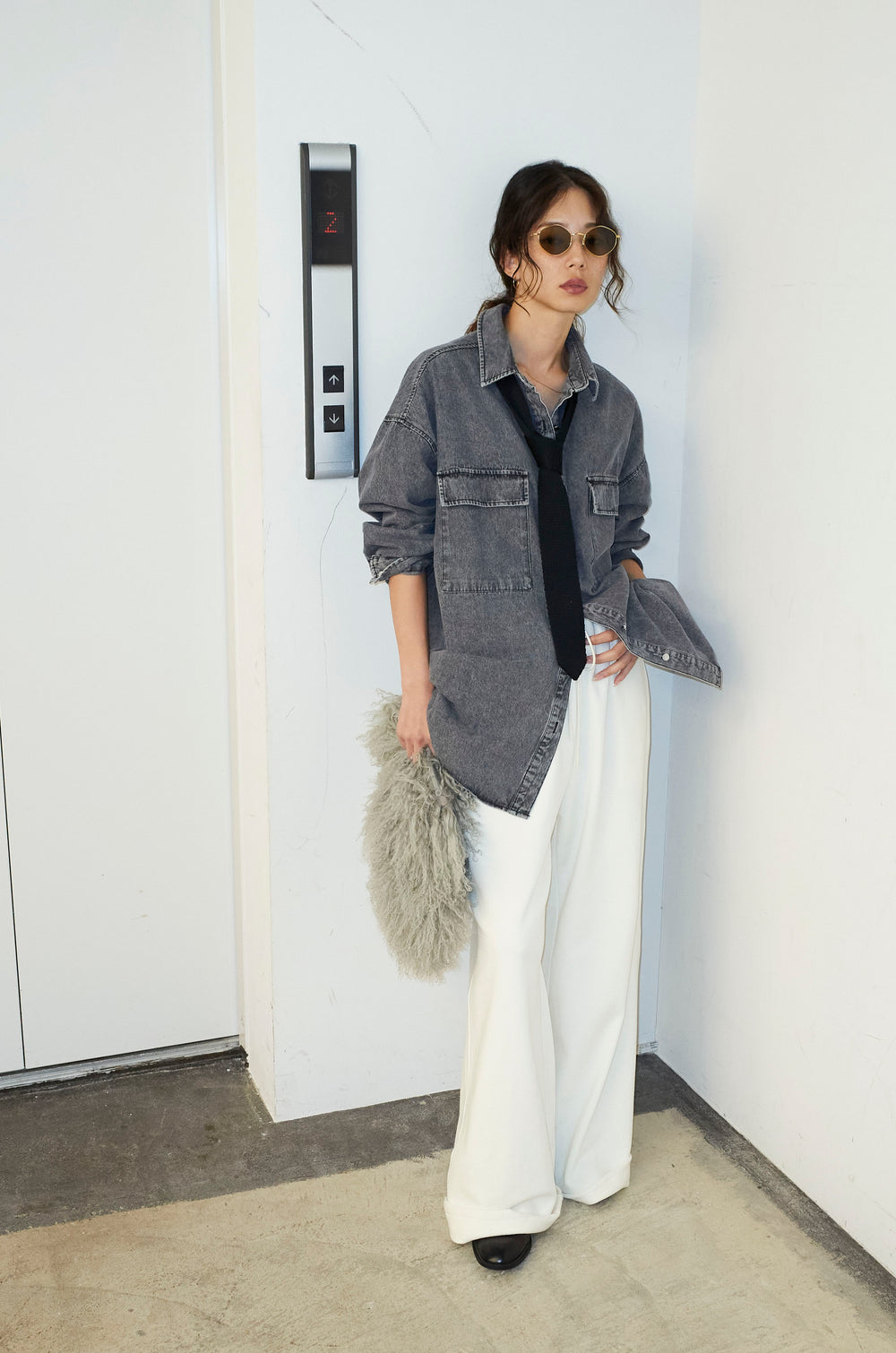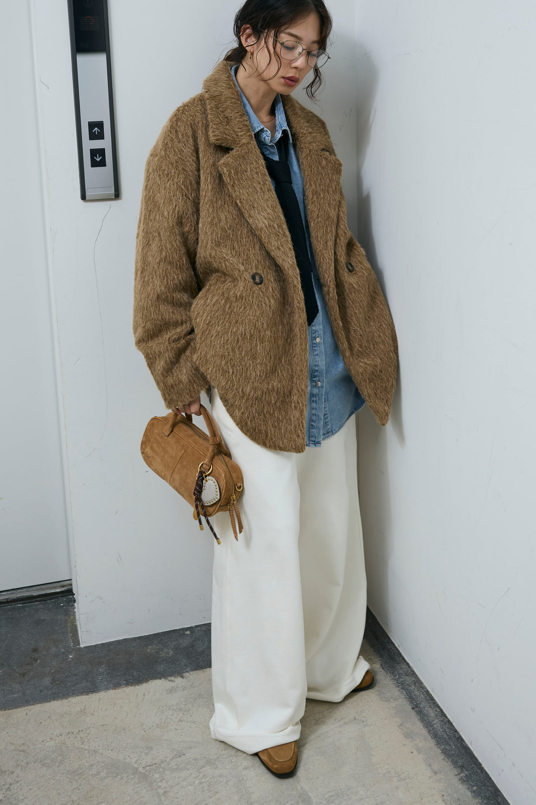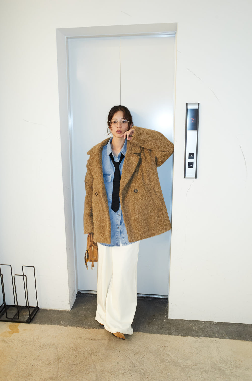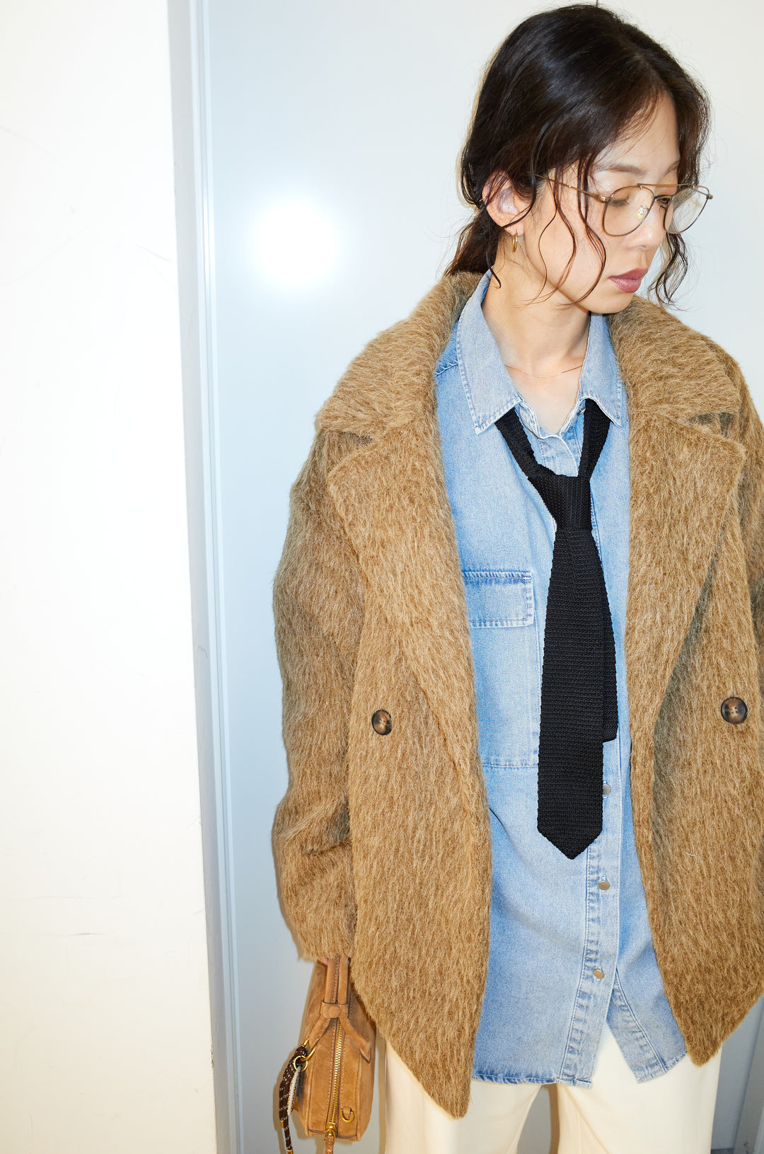[予約/SET]シャギーミドルコート+オーバーサイズデニムシャツ(2set)