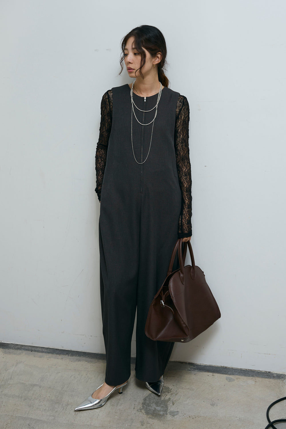 [予約/SET]フロントジップコクーンコンビネゾン+シアーレーストップス(2set)