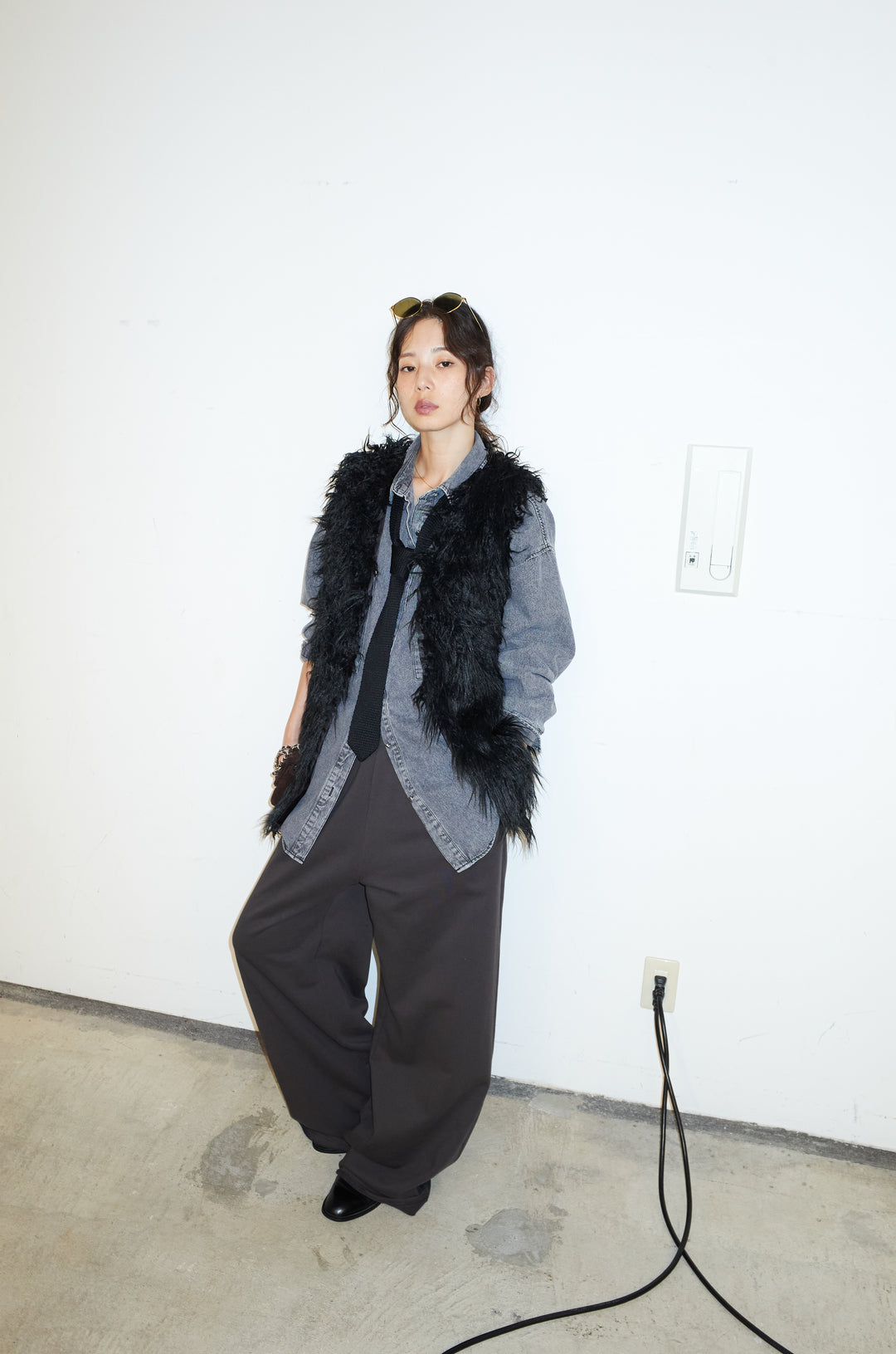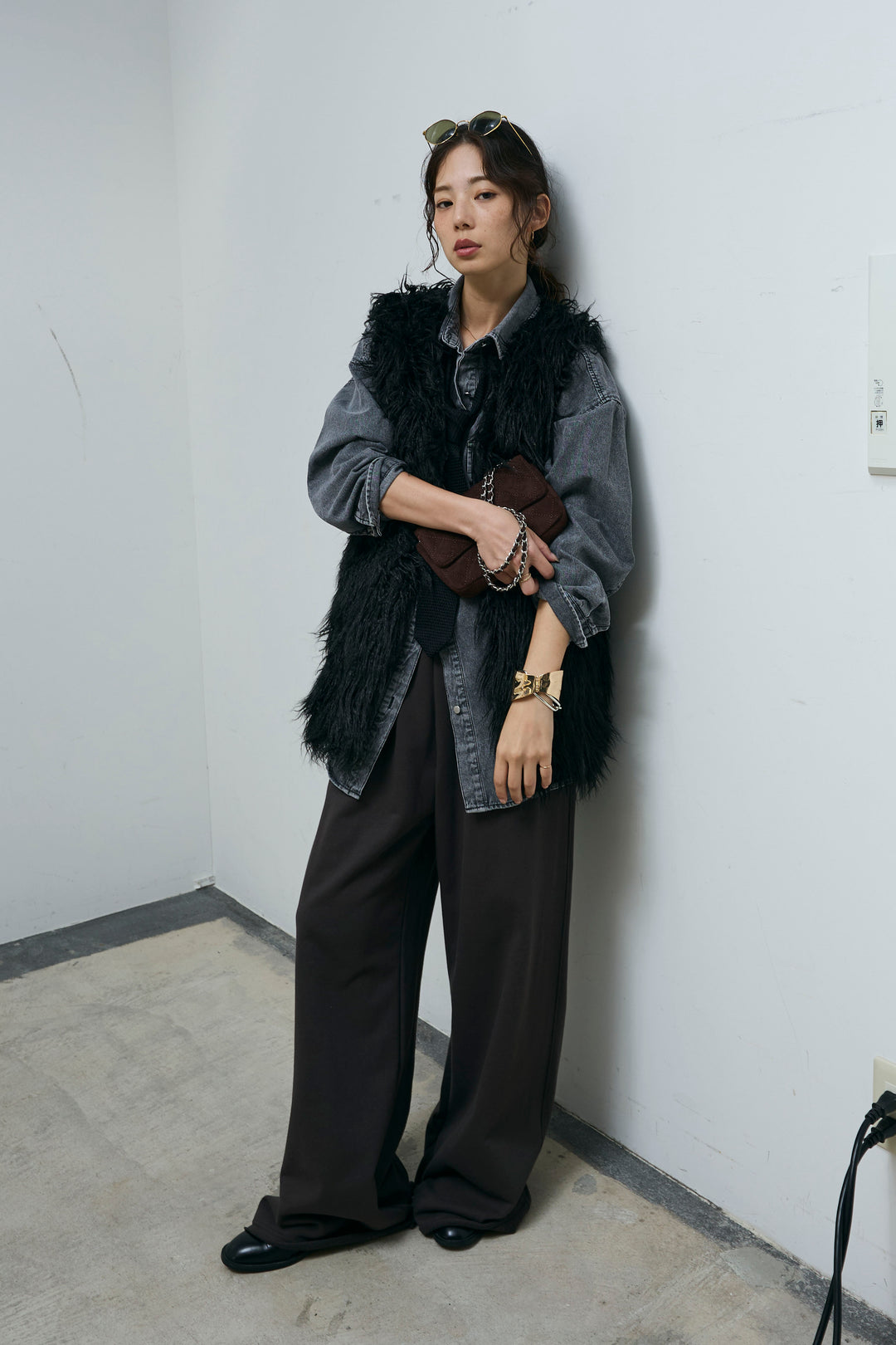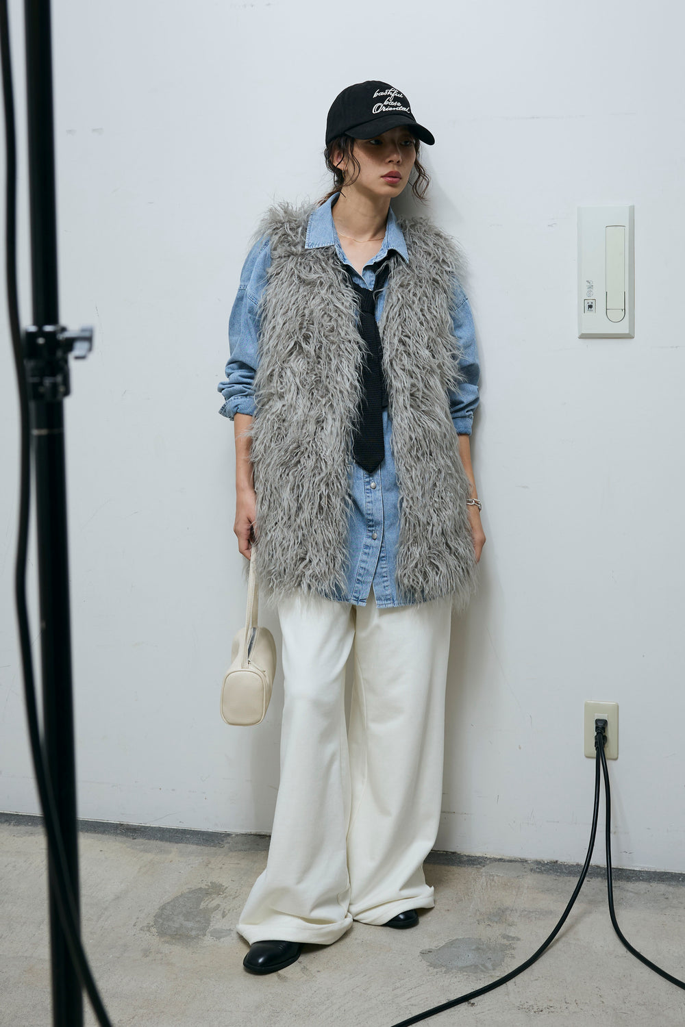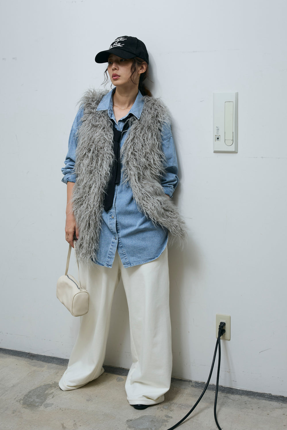 [予約/SET]フェイクシャギーファーベスト+オーバーサイズデニムシャツ(2set)