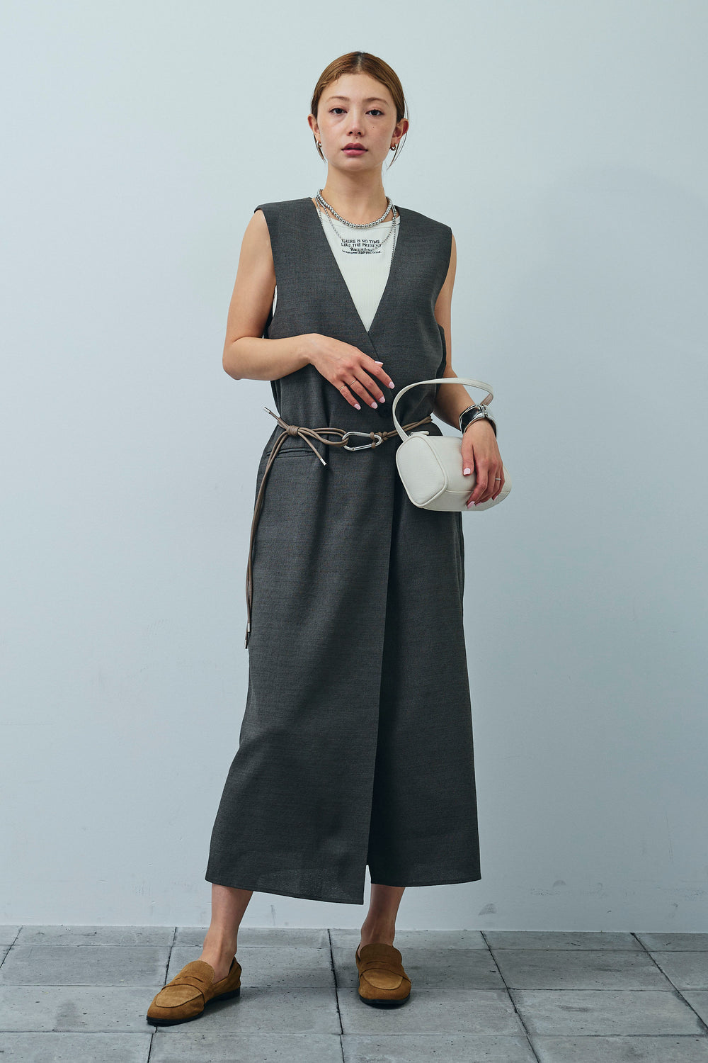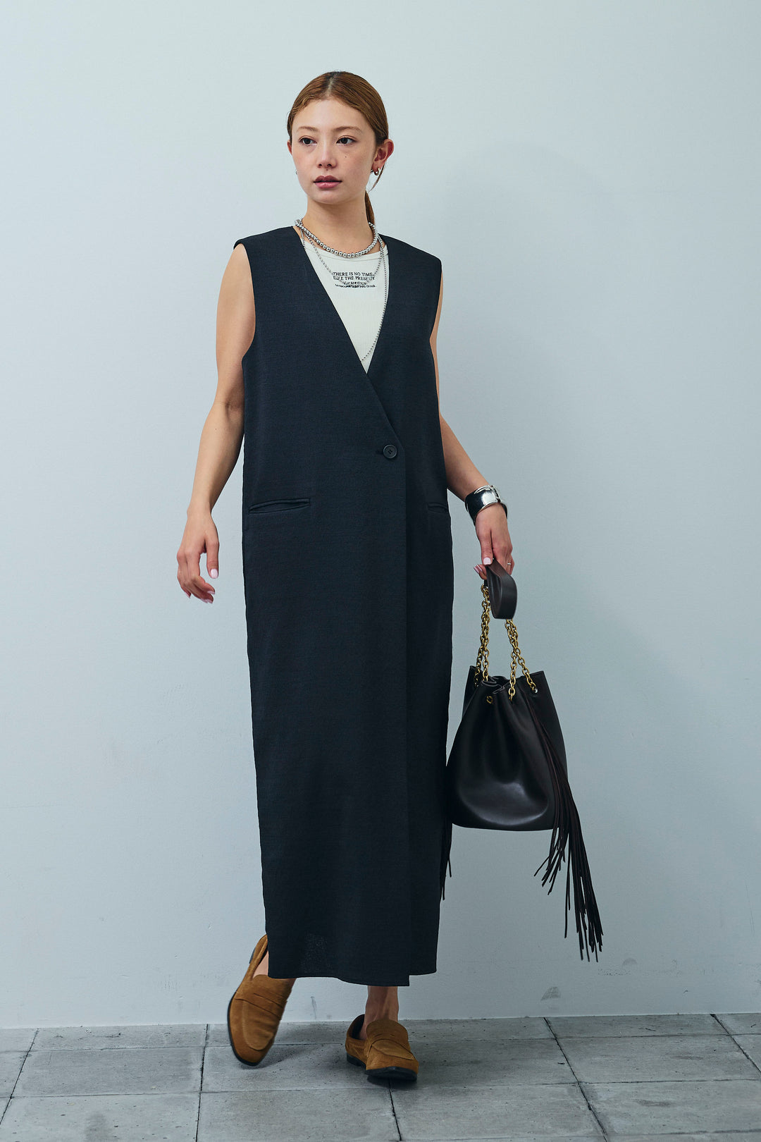 [予約/SET]リネンタッチVネックロングOP+リブロゴタンク(2set)