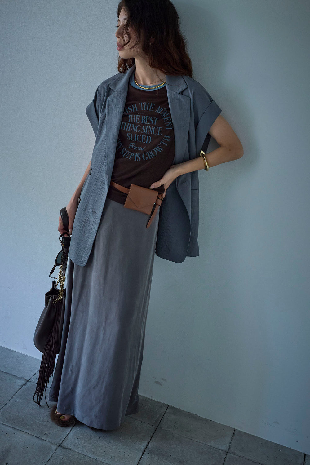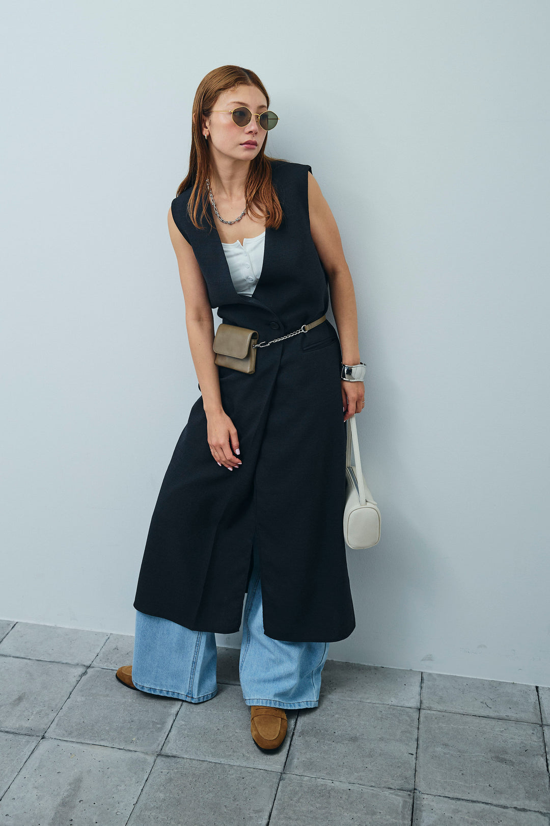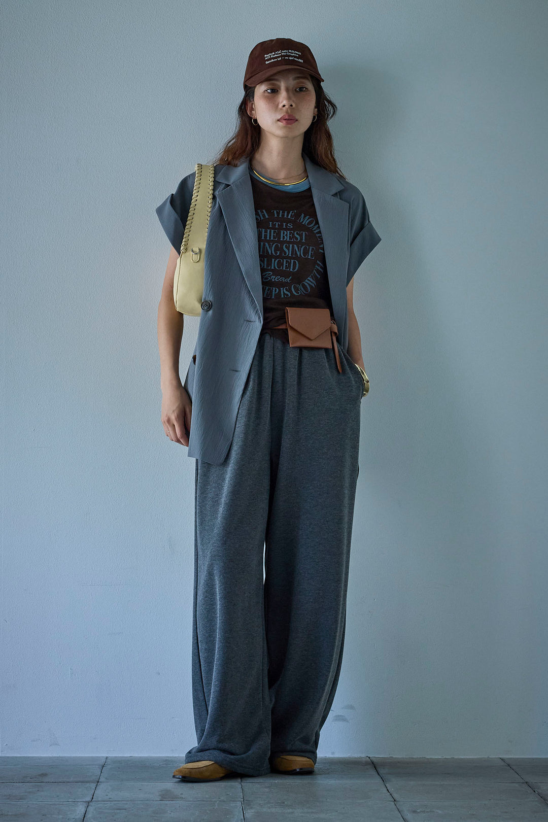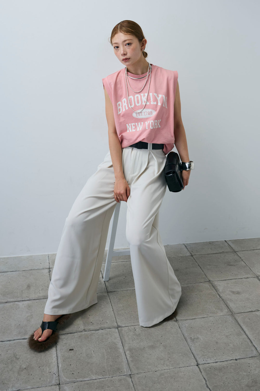 [予約/SET]クレープノースリーブダブルジレ+シアーリンガーロゴT+裏毛ワイドパンツ(3set)