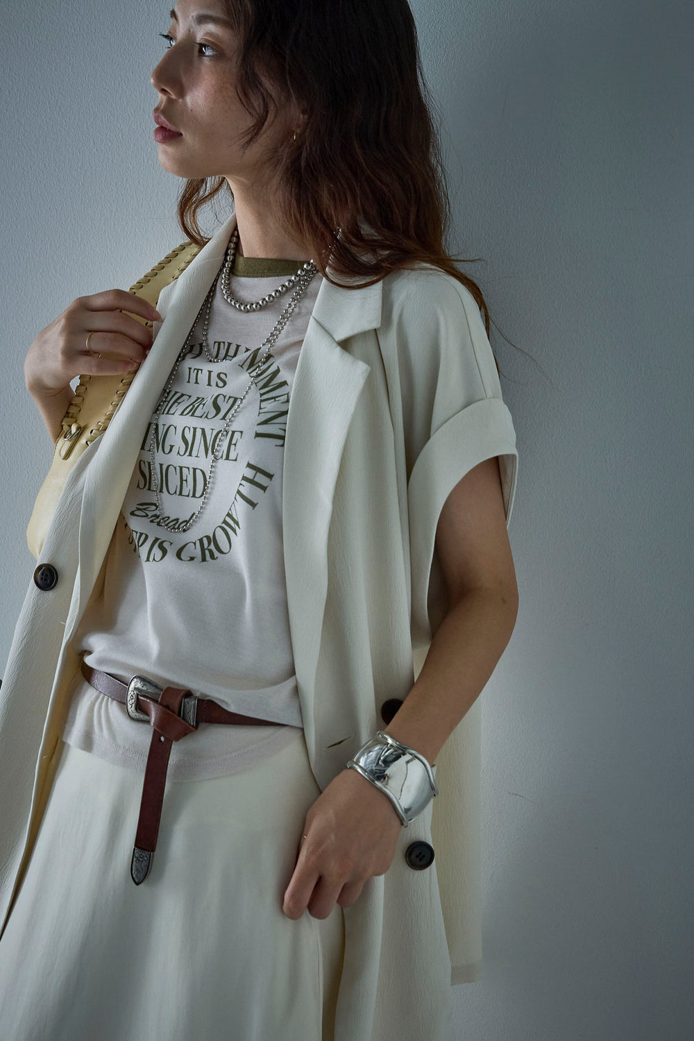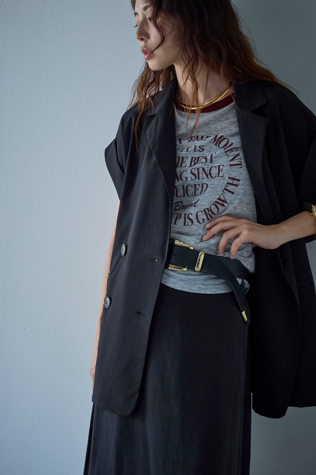 [予約/SET]クレープノースリーブダブルジレ+シアーリンガーロゴT(2set)