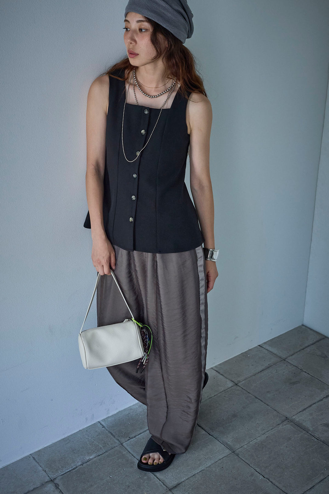 [予約/SET]ボクシーニットベスト+裾ドロストナイロンパンツ(2set)