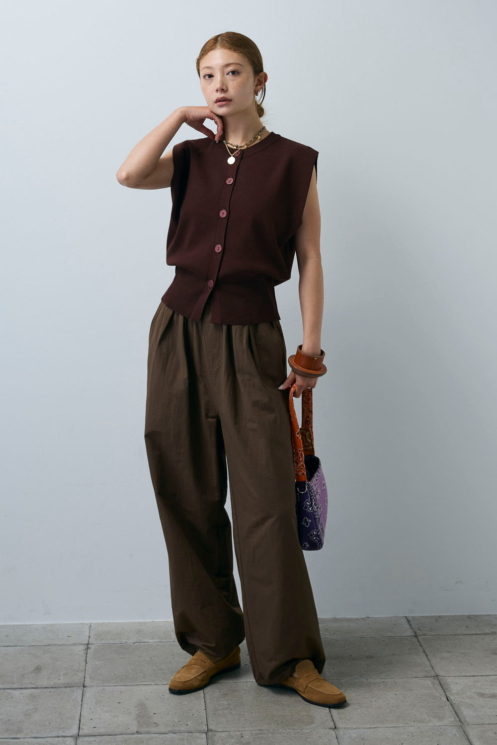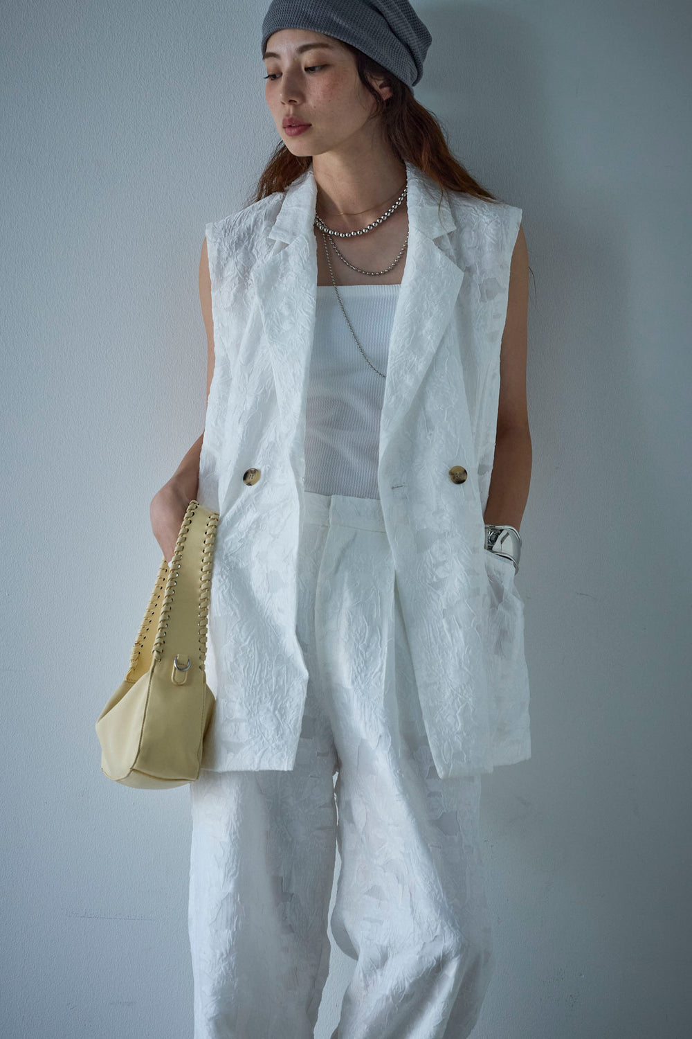 [予約/SET]クレープノースリーブダブルジレ+裏毛ワイドパンツ(2set)