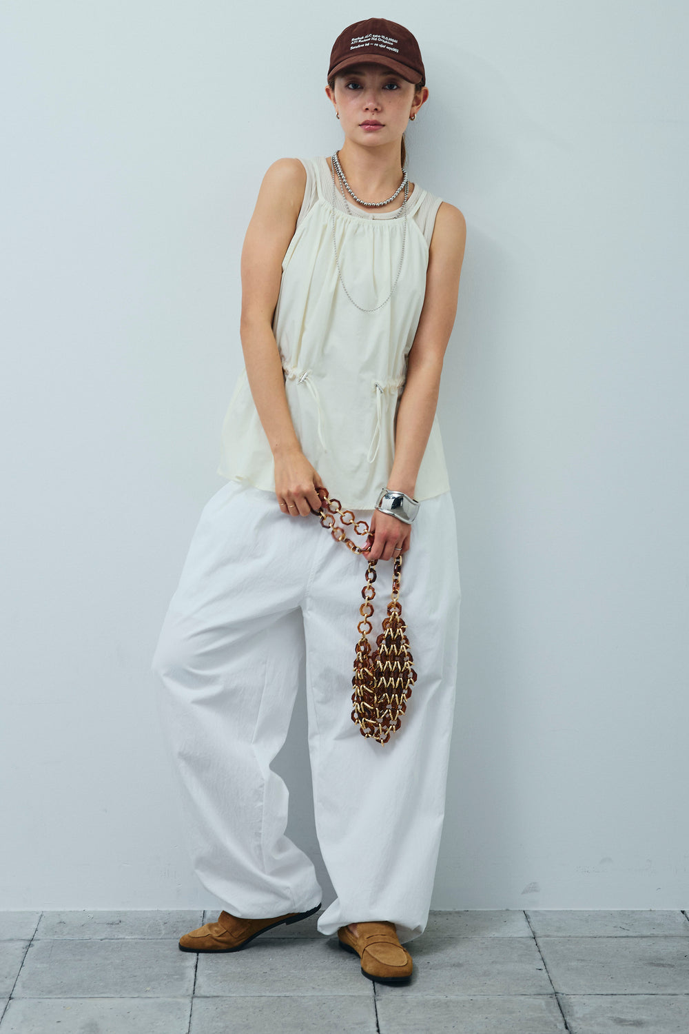 [予約/SET]ドロストギャザーキャミ+裾ドロストナイロンパンツ(2set)