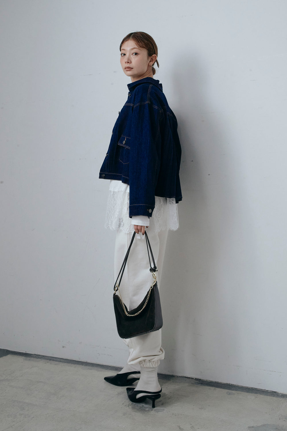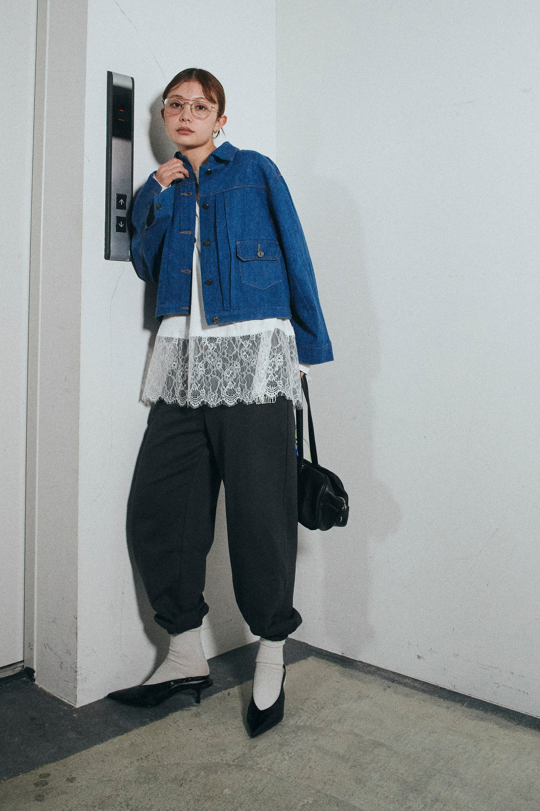 [予約/SET]バックプリーツデニムJK+レースコンビカットソー+ロゴ刺繍ジョガー パンツ(3set)