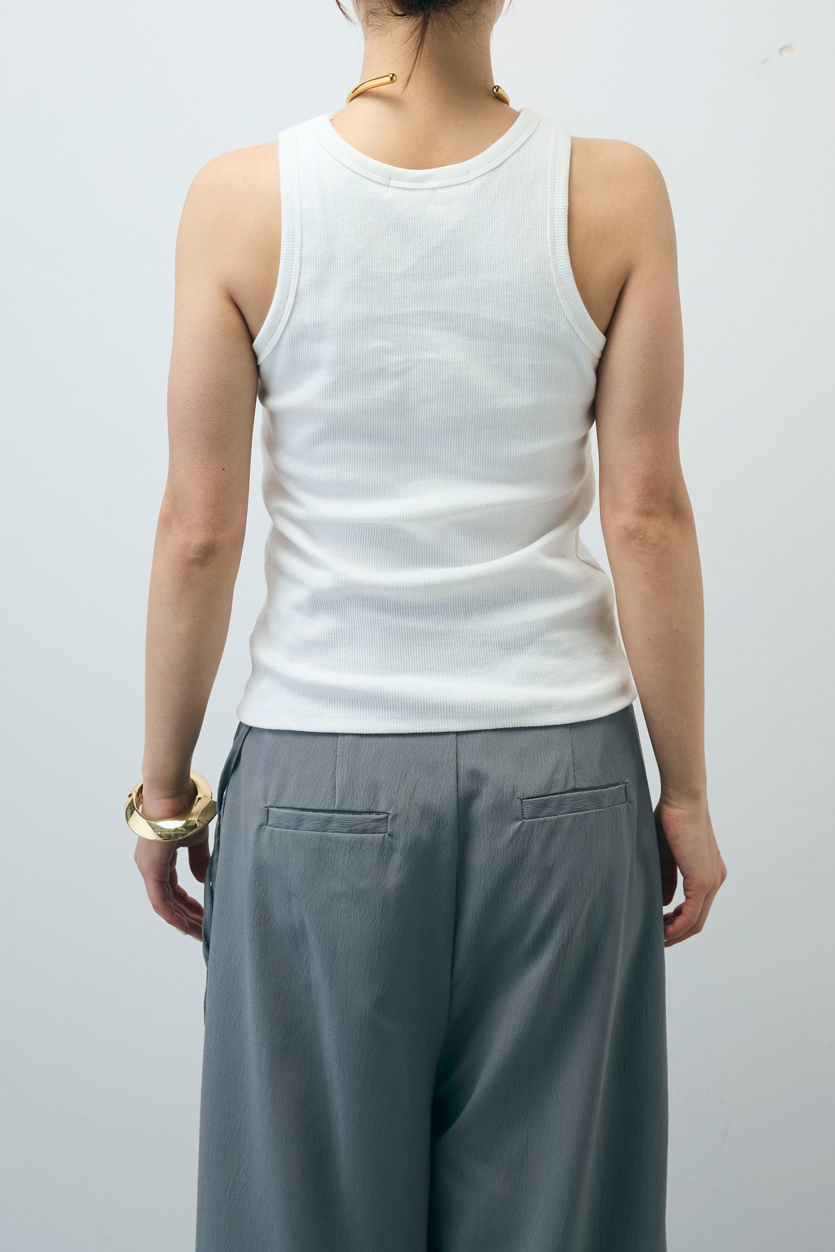 ネーム刺繍がさりげないアクセントになるアメスリタンク。程よくフィットするシルエットでレイヤードにもぴったり。リブ素材がカジュアルさをプラスし、1枚でもインナー使いでも活躍します。