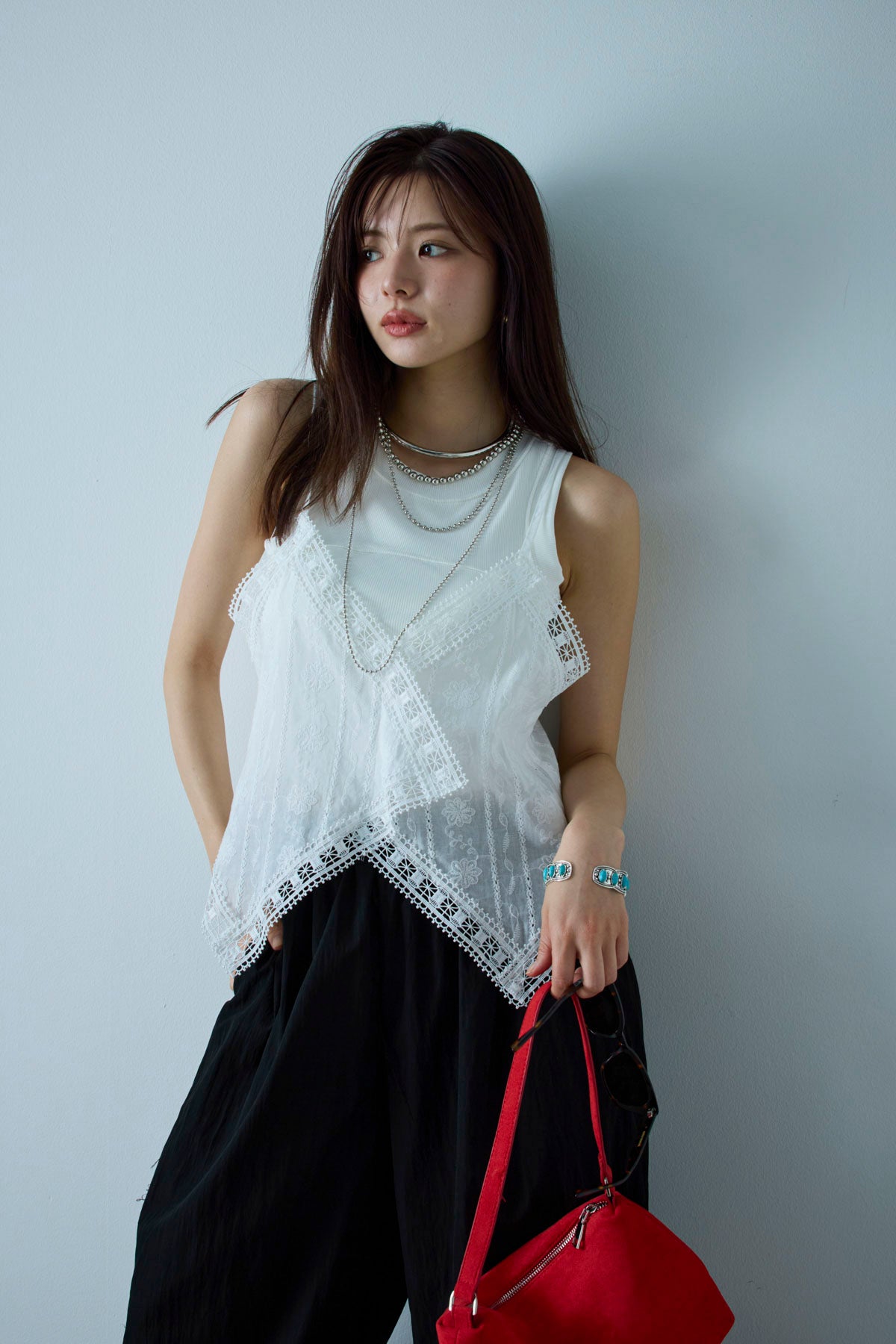 リブ切り替えタンクトップを含んだコーデセット商品を探す↓