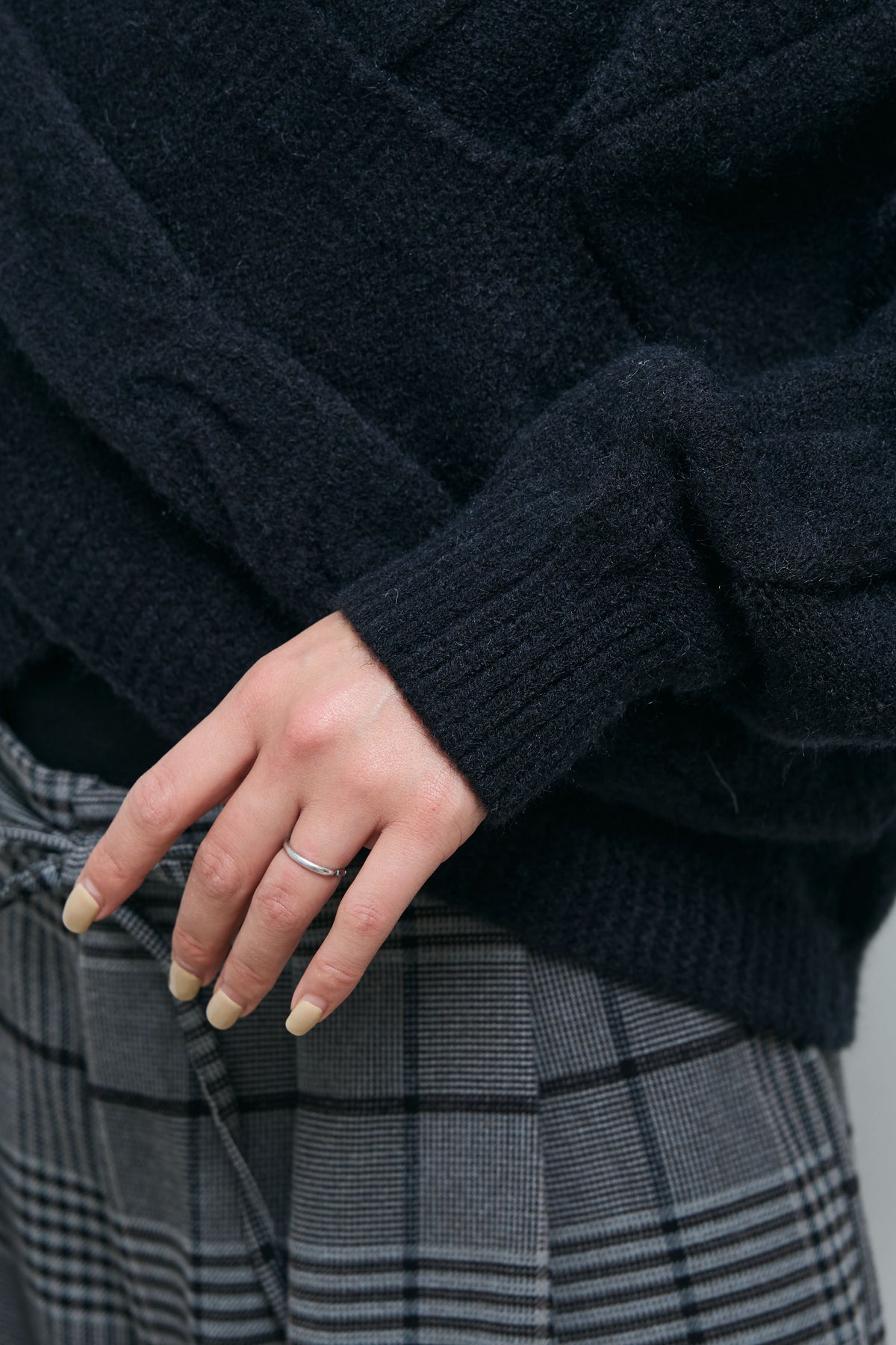 立体的なケーブル編みとカシュクールデザインが印象的なショートニット。深めのVネックがデコルテをきれいに見せ、レイヤードスタイルも楽しめます。コンパクトな丈感でボトムスを選ばず、ハイウエストパンツやスカートと好相性。トレンド感と上品さを兼ね備えた大人のニットトップスです。