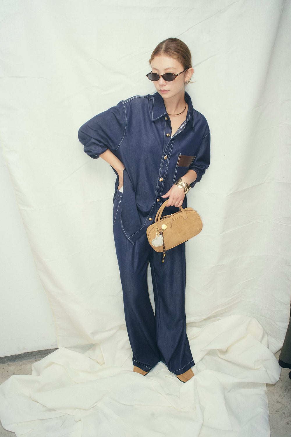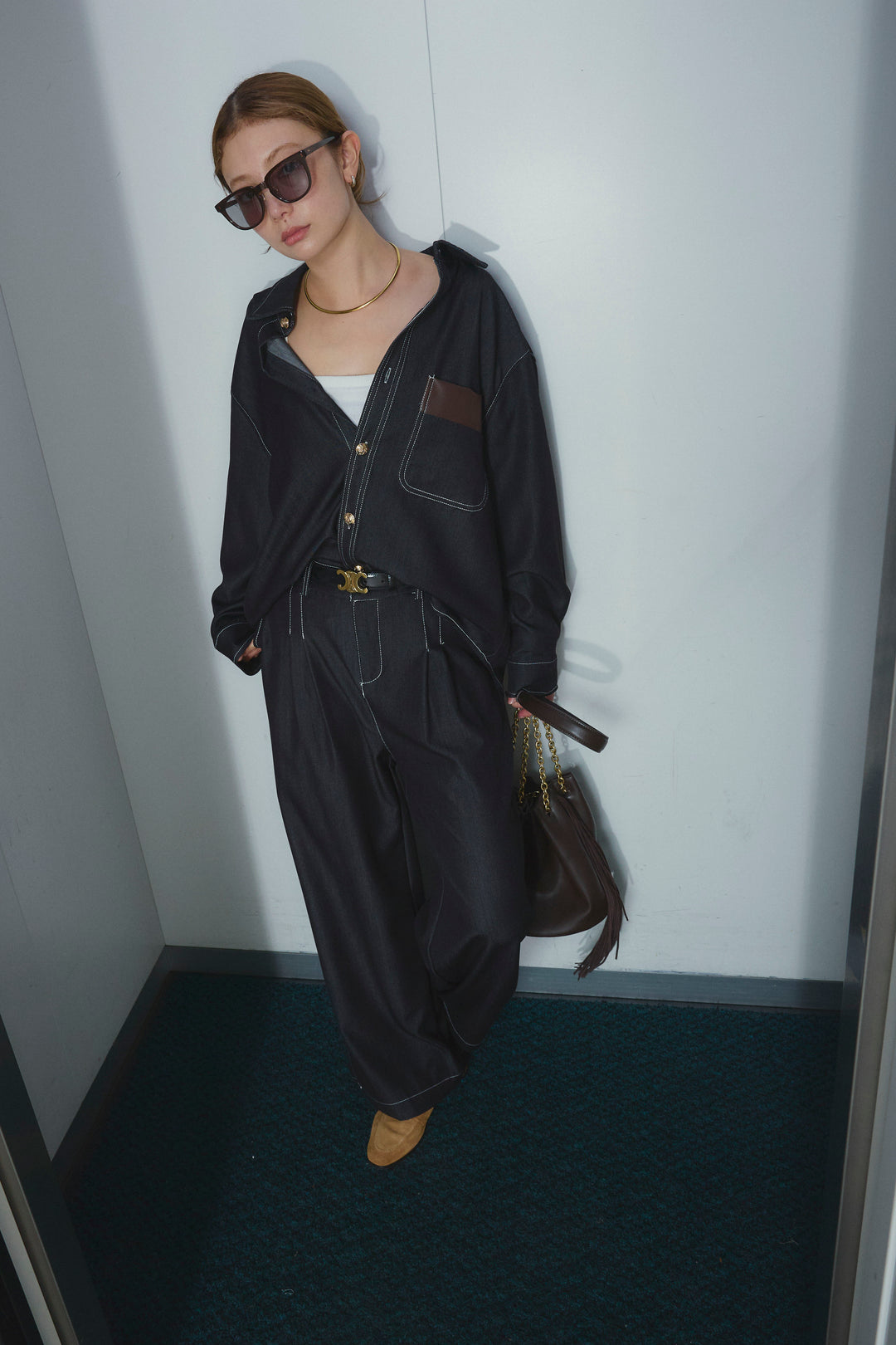 [予約]フェイクレザーポケット付きデニムセットアップ