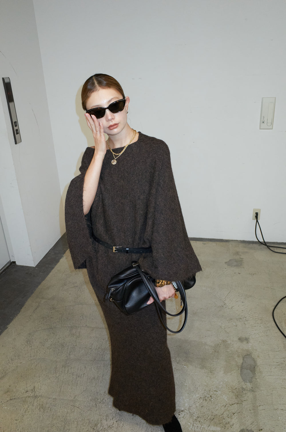 [予約]ブレイデットベルトつきヘンリーネックワンピ