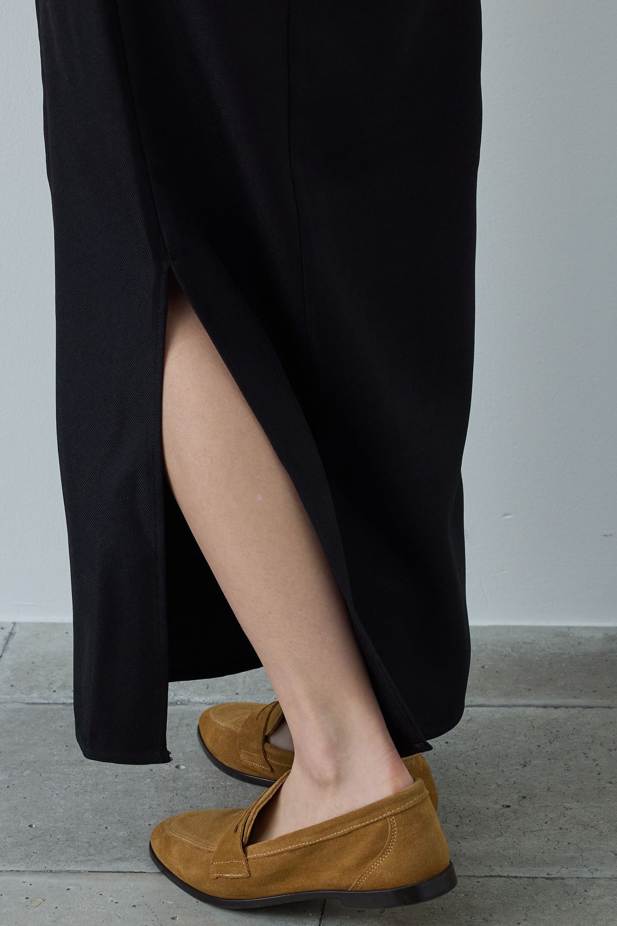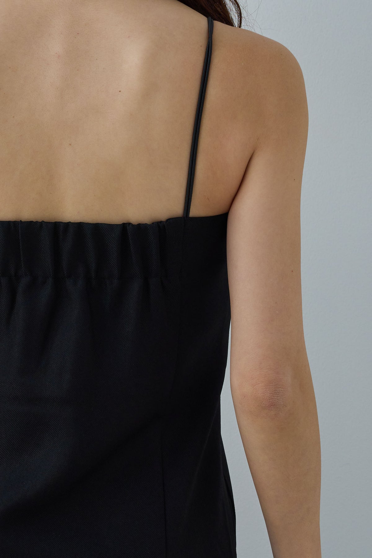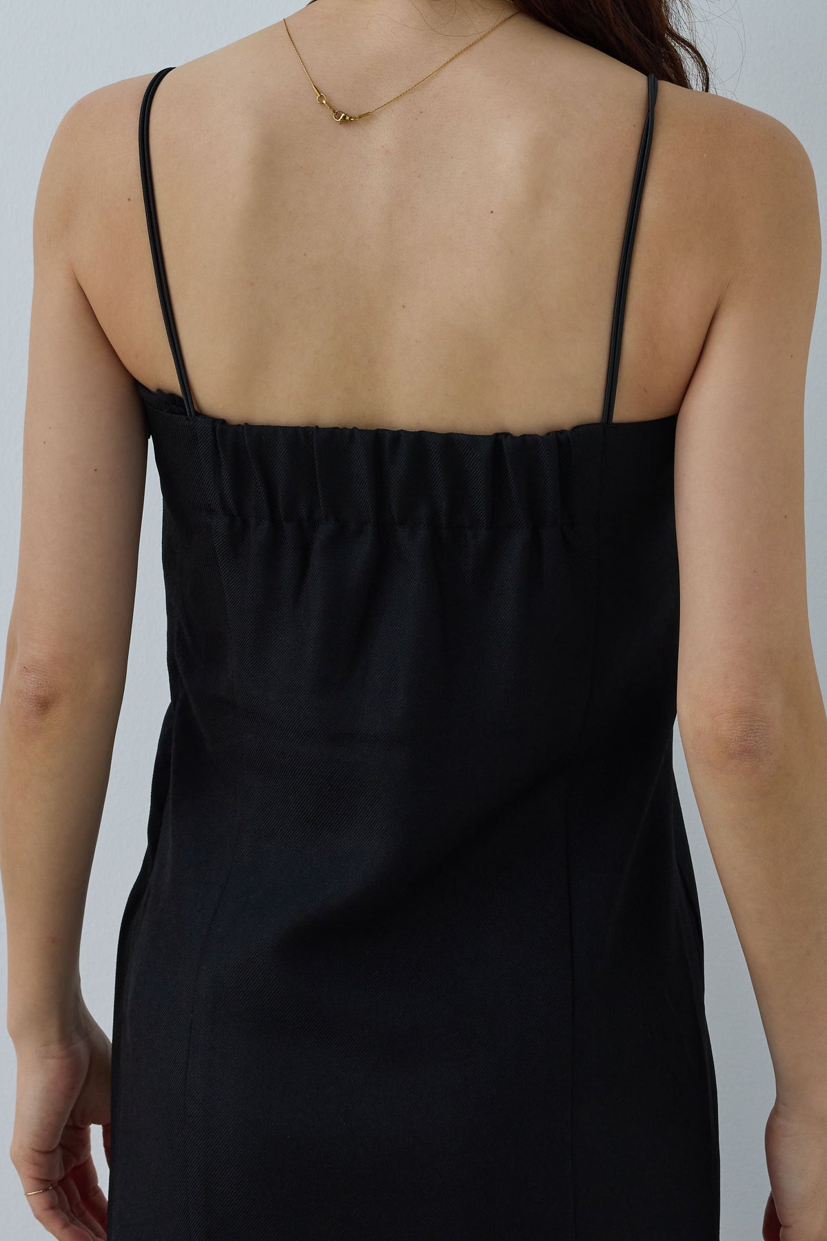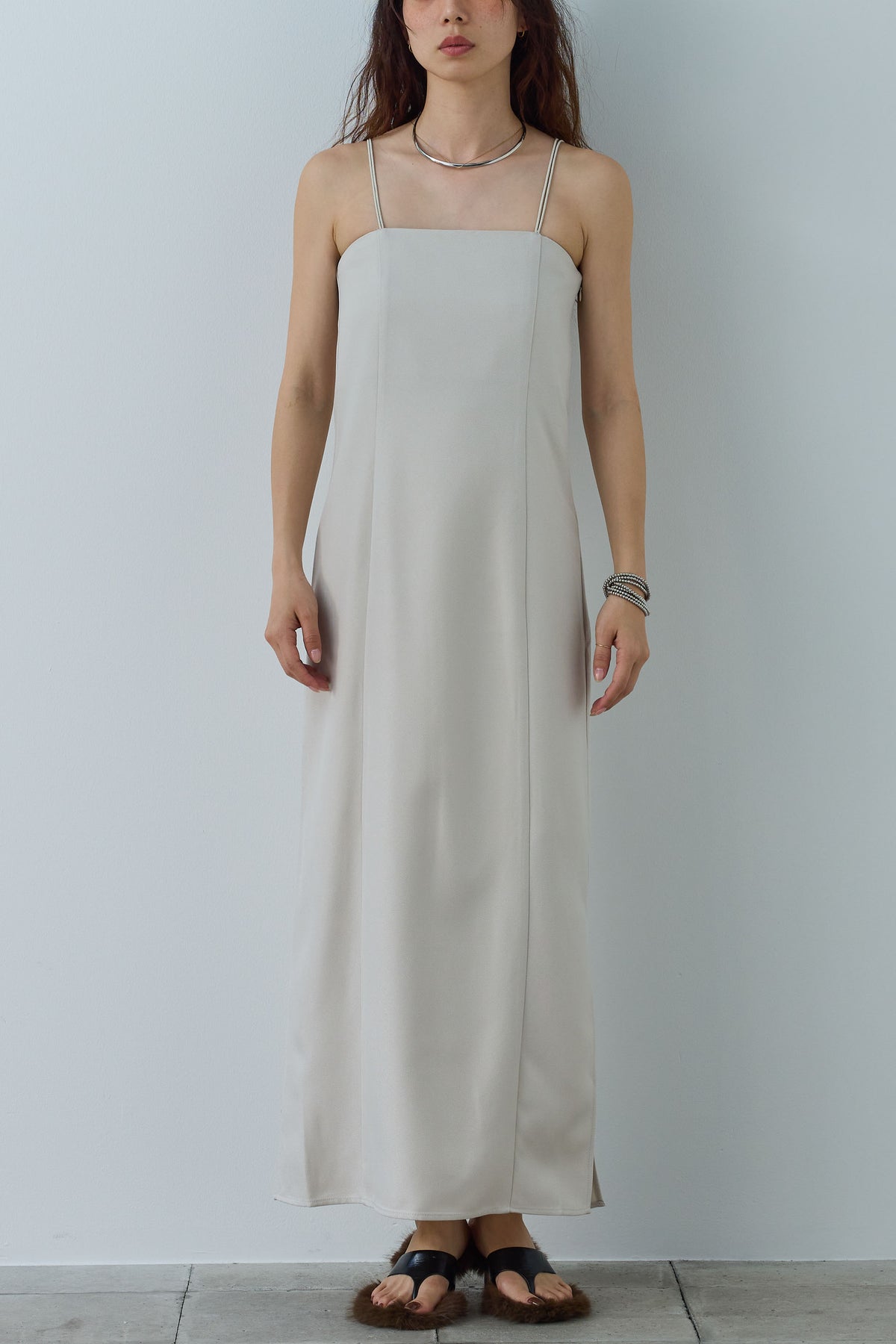 ヘザー素材を使用したキャミソールデザインのワンピースで、シンプルなストレートラインが特徴的です。ベーシックでありながら、シルエットにこだわりがあり、着る人のスタイルを引き立てます。