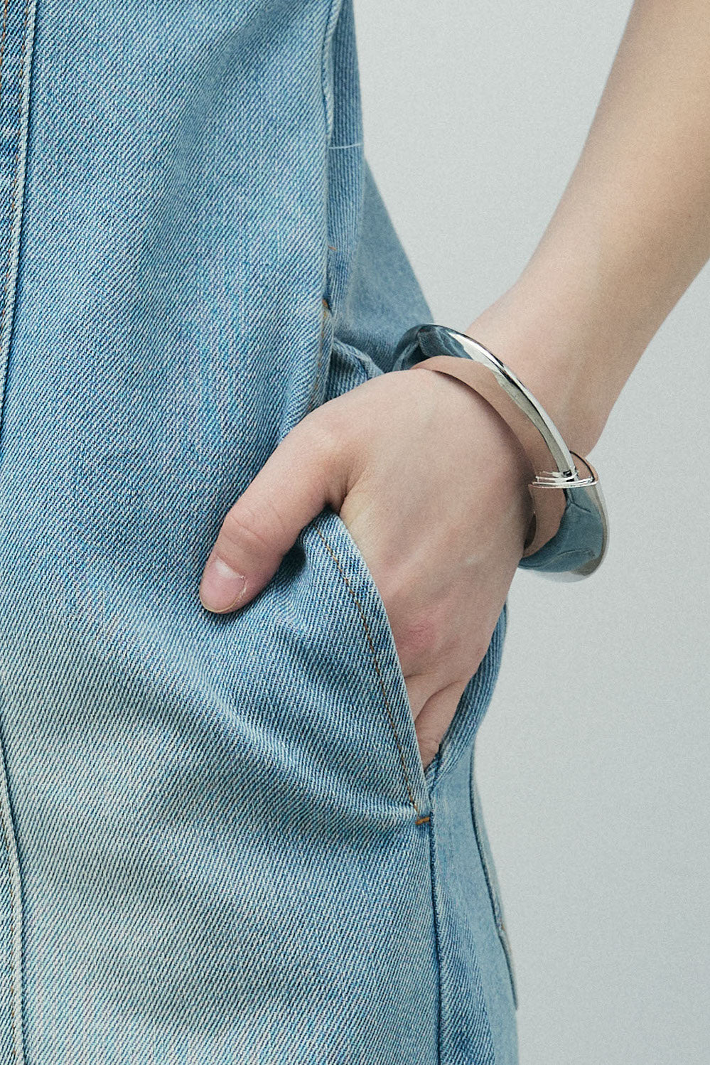 バイカラーのデザインが目を引くデニムオールインワン。カジュアルながらも個性的なコントラストがコーディネートの主役に。程よくゆとりのあるシルエットで、動きやすくリラックスした着心地を実現。Tシャツやブラウスと合わせて幅広いスタイルにマッチするアイテムです。