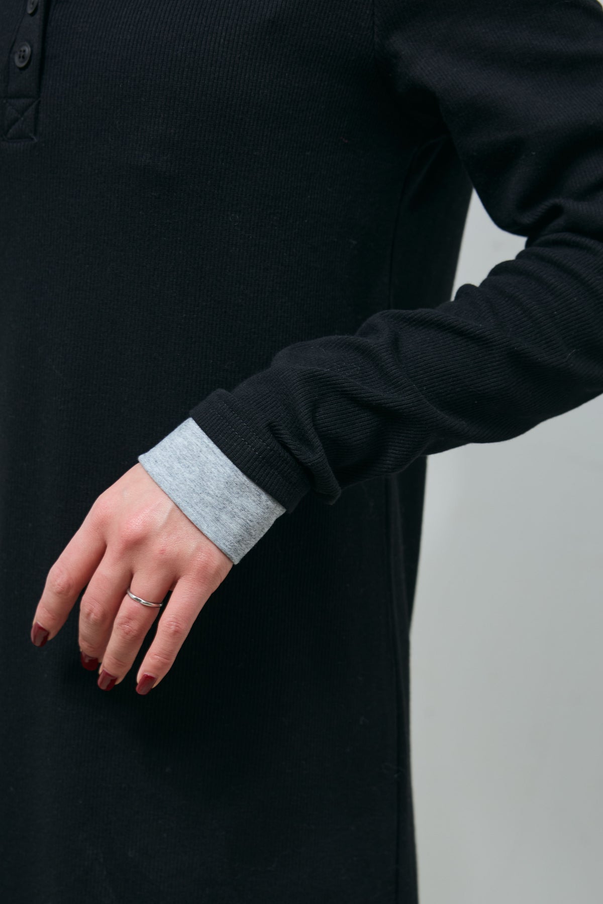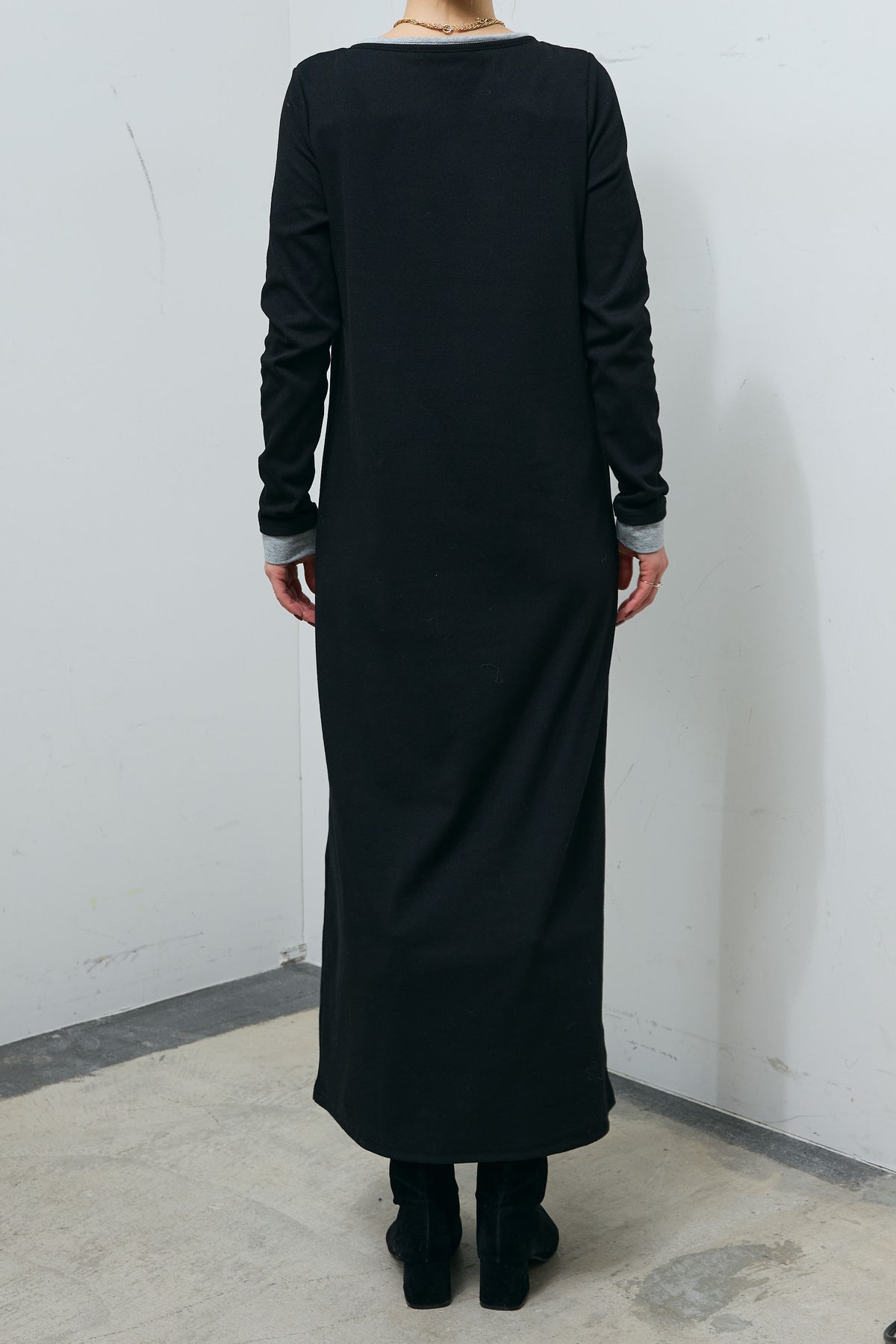 レイヤード風のデザインが一枚で完成度を高める、ヘンリーネックワンピース。カットリブ素材ならではのほどよい伸びと落ち感があり、縦のラインを意識したすっきりとしたシルエットに仕上がっています。首元のヘンリーネックと袖口・裾から覗くインナー風ディテールが、さりげない奥行きをプラス。スニーカーやフラットシューズと合わせてもバランスが取りやすく、日常使いから軽めのお出かけまで幅広く活躍します。一枚で着用しやすく、アウター次第でロングシーズン取り入れられるのもポイントです。