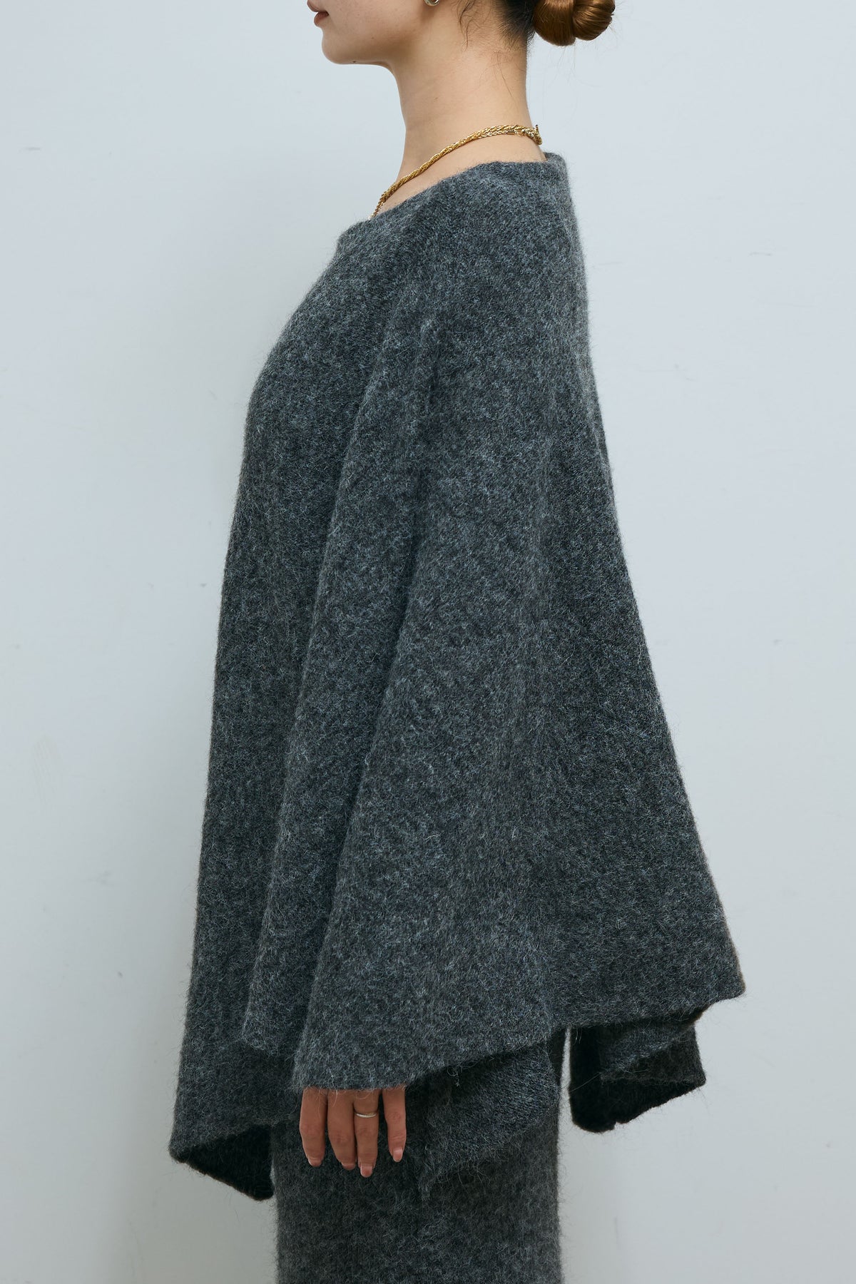 立体的な編み地が目を惹くポンチョ風トップスと、ワイドニットパンツのセットアップ。ゆったりとしたシルエットがリラクシーな抜け感を生みつつ、全体に表情のあるニットが品の良さを引き立てます。ポンチョは左右アシンメトリーな丈感で動きのあるフォルムに仕上げ、着るだけで印象的なスタイルが完成。セットでの着用はもちろん、それぞれ単品でも着回せる万能アイテムです。