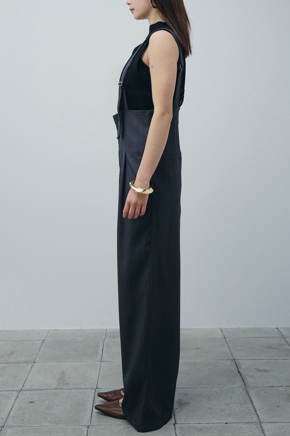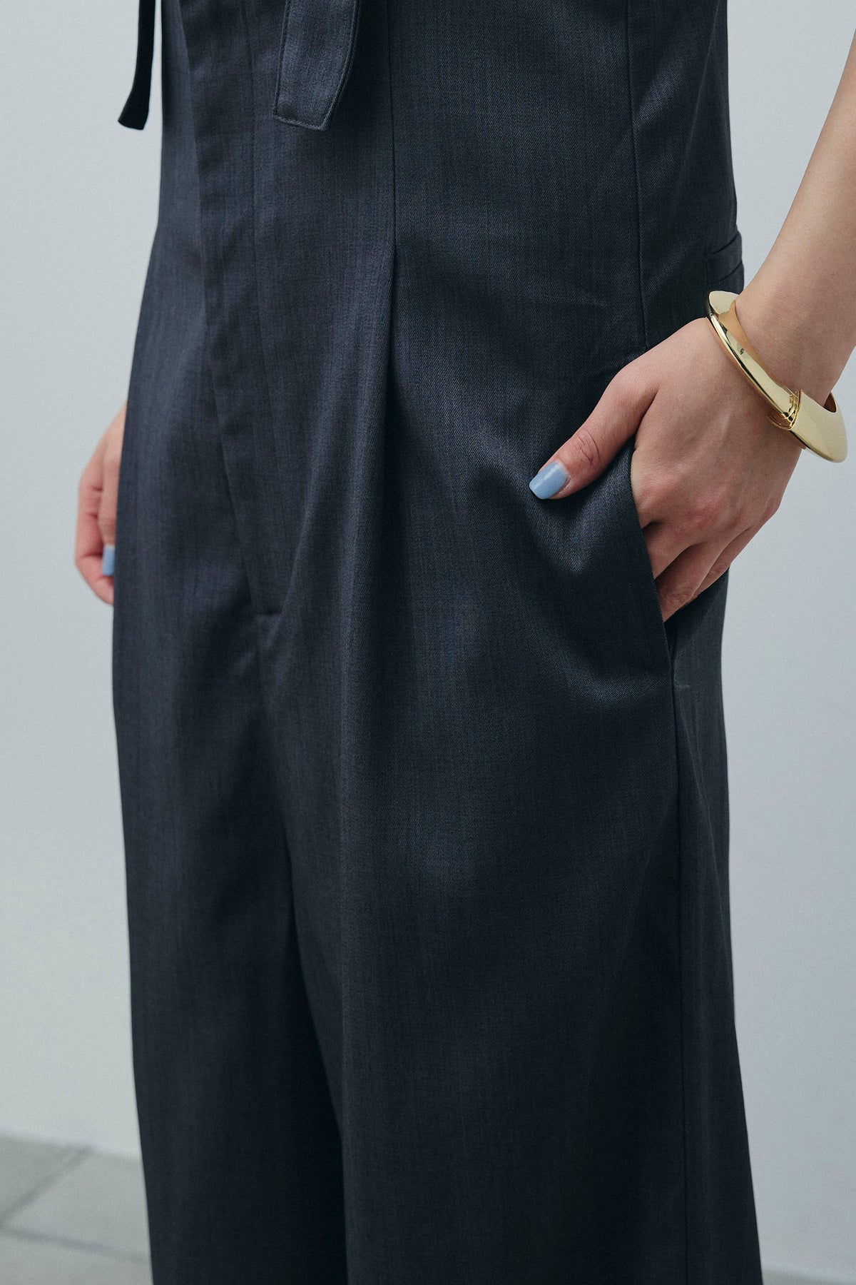 スタイルアップ効果抜群のハイウエストワイドサロペット。 すとんと落ちるワイドシルエットが脚のラインを拾わず、ナチュラルに体型カバーを叶えます。肩紐はアジャスター付きで長さの調整が可能。Tシャツやリブニットなど、インナー次第で幅広いスタイリングが楽しめます。上品な光沢感のある生地を使用し、カジュアルながらもクラス感のある一枚に仕上がっています。シーズンレスに活躍する万能アイテムです。