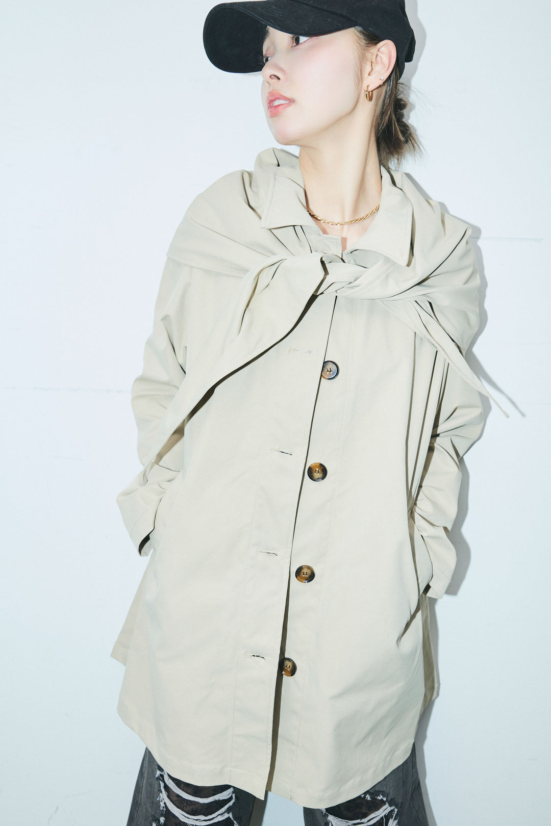 [予約]スカーフ付きステンカラースプリングコート