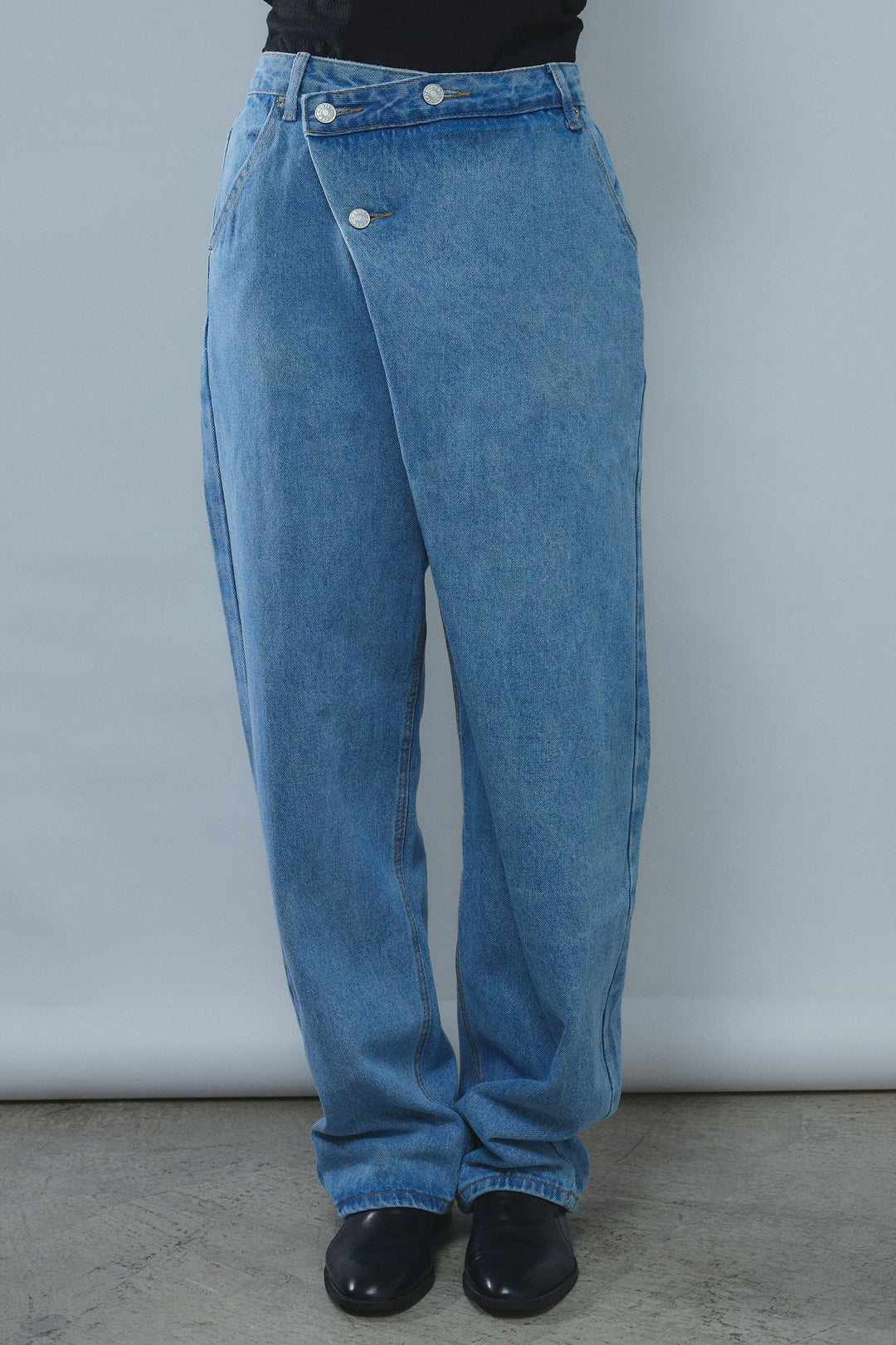 [予約]フェイクレザーベルト付きワイドタックパンツ
