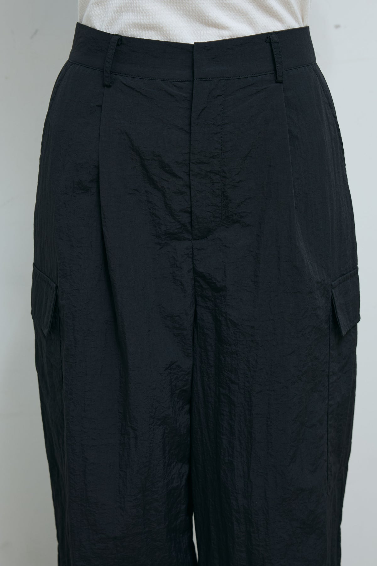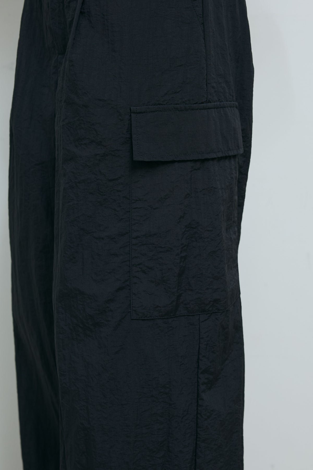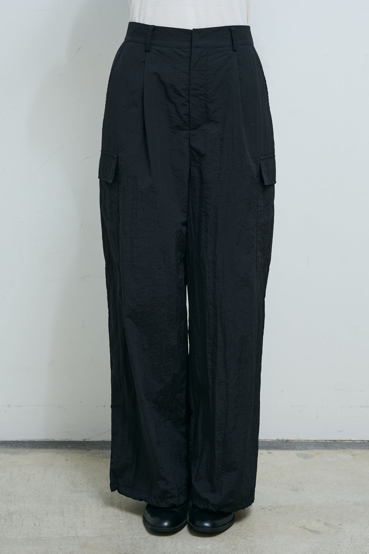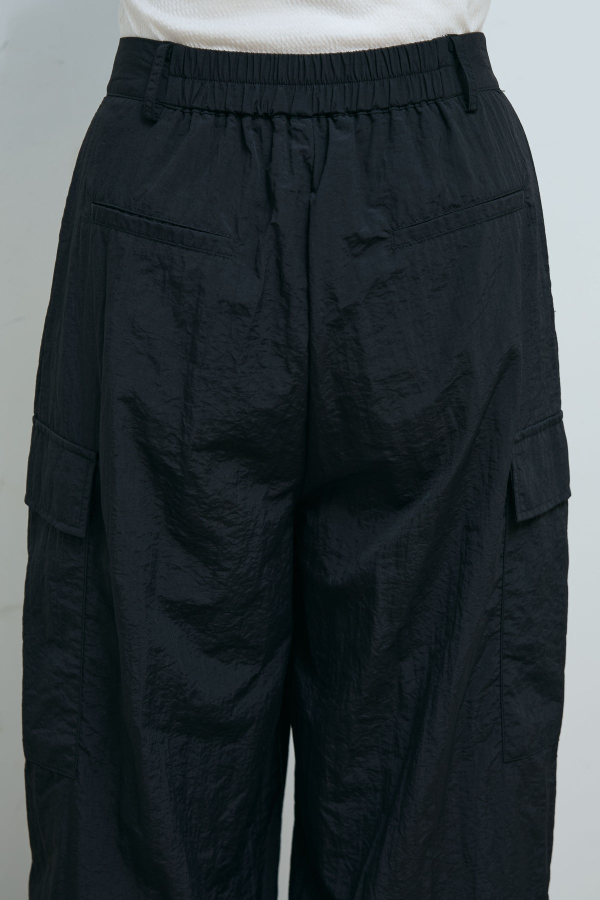 光沢感のあるナイロン素材が魅力のドロストパンツ。程よいハリと落ち感があり、シルエットを美しく保ちながらも快適な穿き心地。裾のドローストリングでシルエット調整が可能で、カジュアルからモードまで幅広いスタイルにマッチ。ハイウエストデザインがスタイルアップも叶えてくれる。軽やかな素材感でロングシーズン活躍する一着。