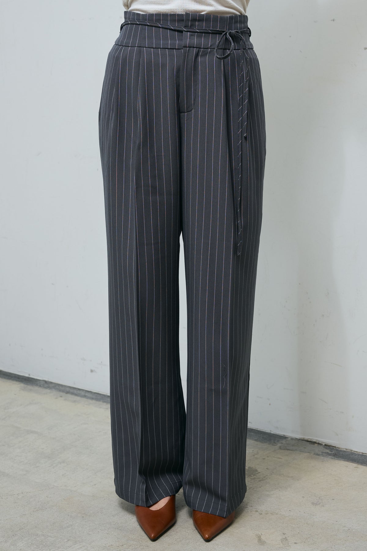 ストレートシルエットで、リボンをウエスト部分にあしらい、シンプルながらもディテールにこだわったデザインが特徴です。ストライプ柄が施され、エレガントかつスタイリッシュな印象を与えます。トップスと合わせやすいアイテムで、カジュアルなコーディネートからオフィスにもぴったりです。リボンでウエストを調整でき、着心地の良さも提供します。日常的に使える上品なデザインで、シンプルでありながらも華やかさをプラスしたアイテムです。