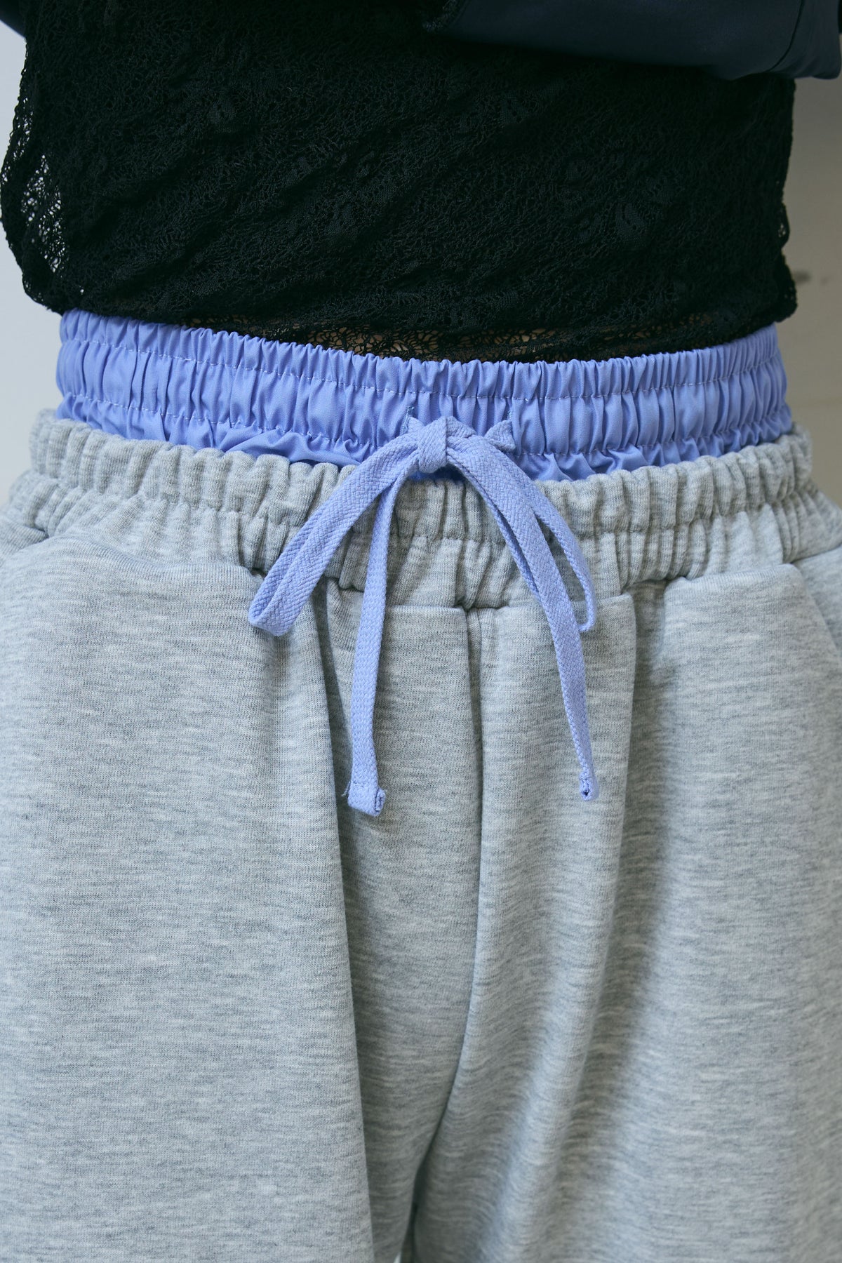 裏毛スウェットにリブウエストをドッキングした異素材ミックスパンツ。ラフな着心地ながら、すっきりとしたシルエットでルーズになりすぎず、タウンユースにも◎。ウエストの配色デザインがスタイリングのアクセントに。カジュアルな抜け感を演出する一着です。