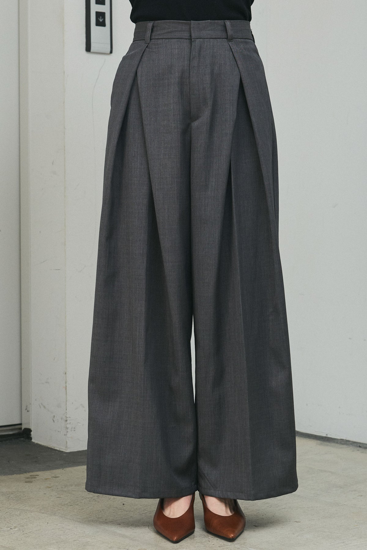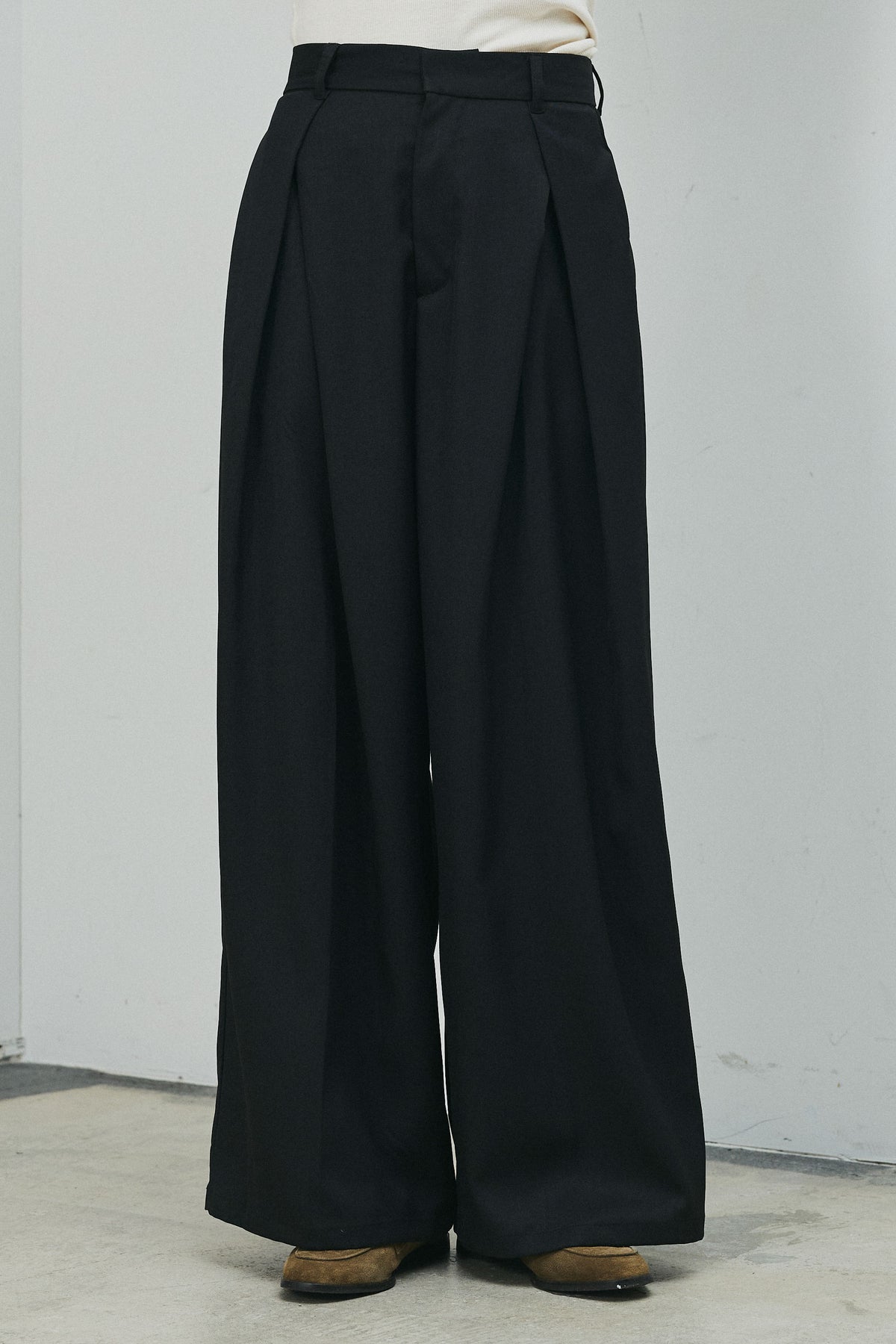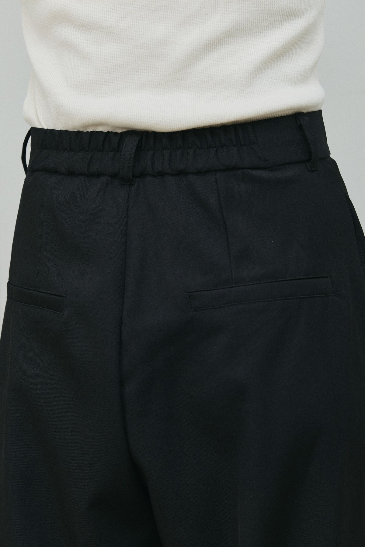 フロントに施したタックが立体感を生み出す、上品な印象のTRツイルパンツ。落ち感のあるなめらかな素材が縦ラインをきれいに引き立て、ワイドシルエットながらもすっきりとしたバランスに仕上がります。腰まわりは程よくゆとりを持たせつつ、ウエストまわりはきちんと感のあるデザインで、トップスをインしたスタイルもきれいに決まります。シンプルなカットソーからシャツ合わせまで幅広く馴染み、オンオフ問わず活躍する一本です。