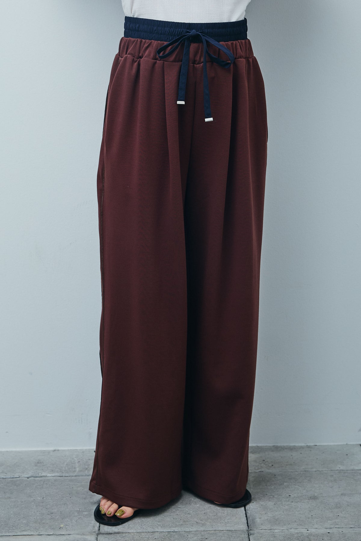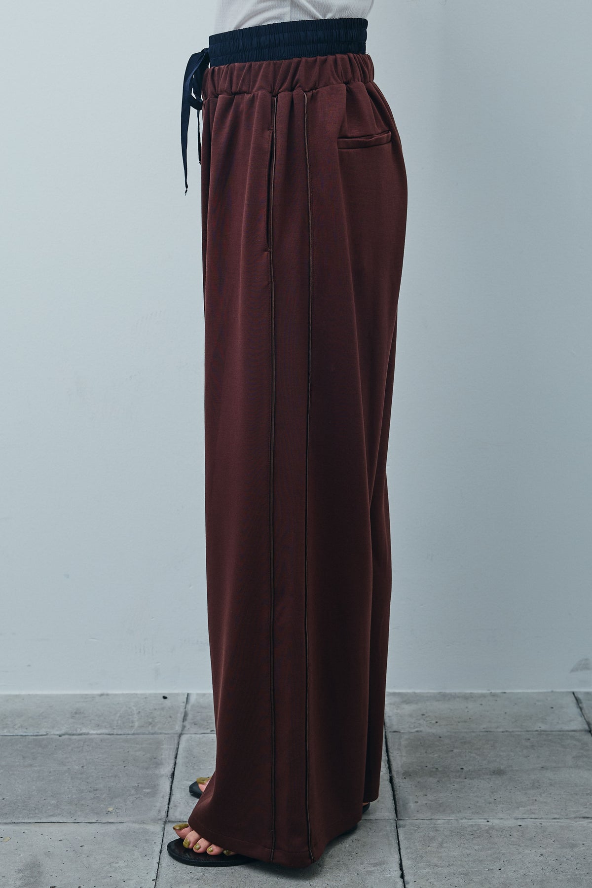 ラフな着心地とさりげないデザイン性を兼ね備えたスウェットパンツ。ウエスト部分はレイヤード風のダブルデザインで、トップスをインしても抜け感のあるアクセントに。サイドラインが縦のラインを強調し、スタイルアップも期待できます。リラックスした着心地ながら、カジュアルになりすぎず洗練された印象に仕上がる一着です。