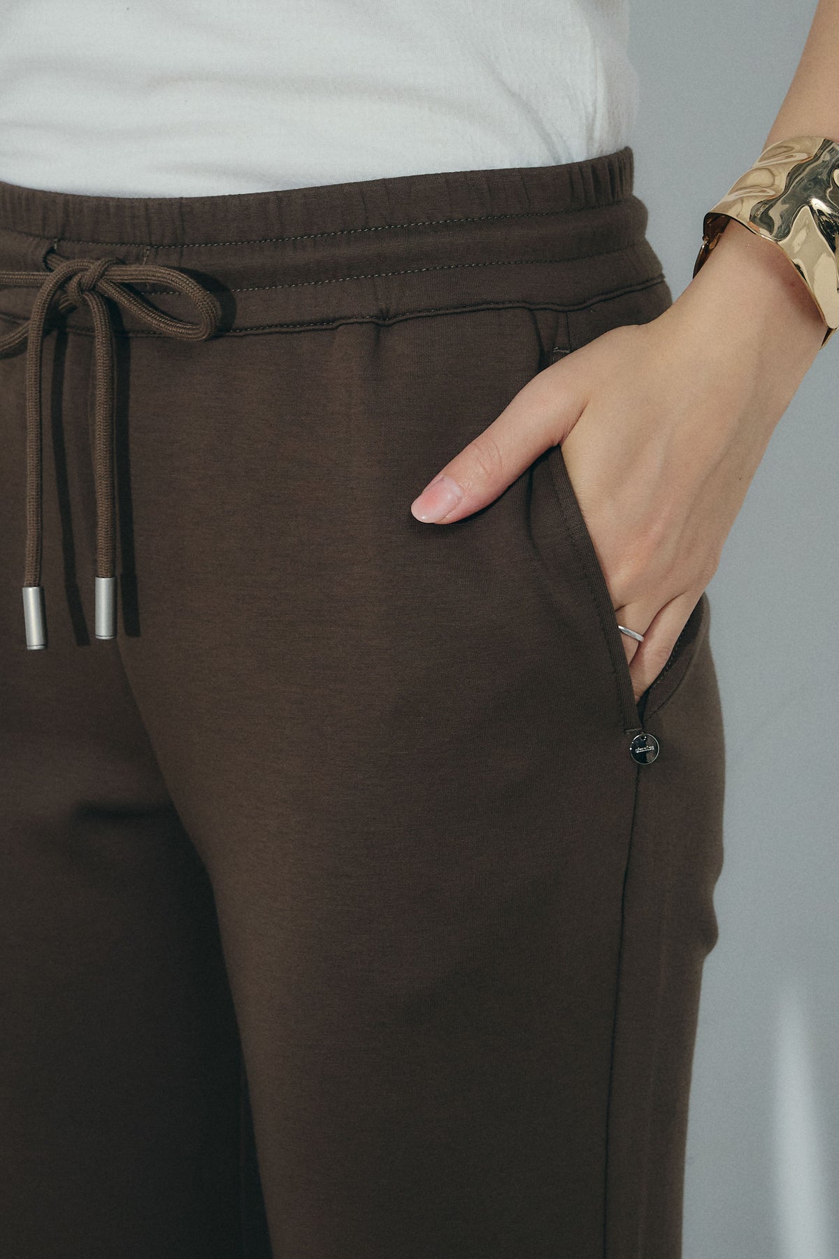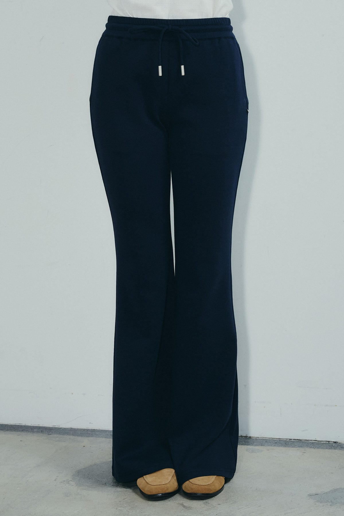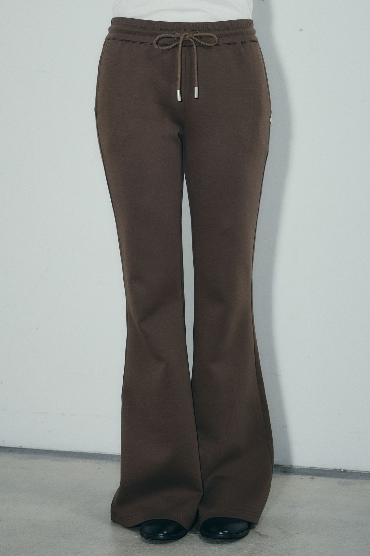 レッグラインを美しく見せる計算されたフレアシルエットが魅力のスウェットパンツ。柔らかく伸縮性のある素材で快適な穿き心地ながら、センターシームや裾に向かって広がるラインが洗練された印象をプラス。カジュアルになりすぎず、トップスを選ばずに着回せる万能ボトムです。