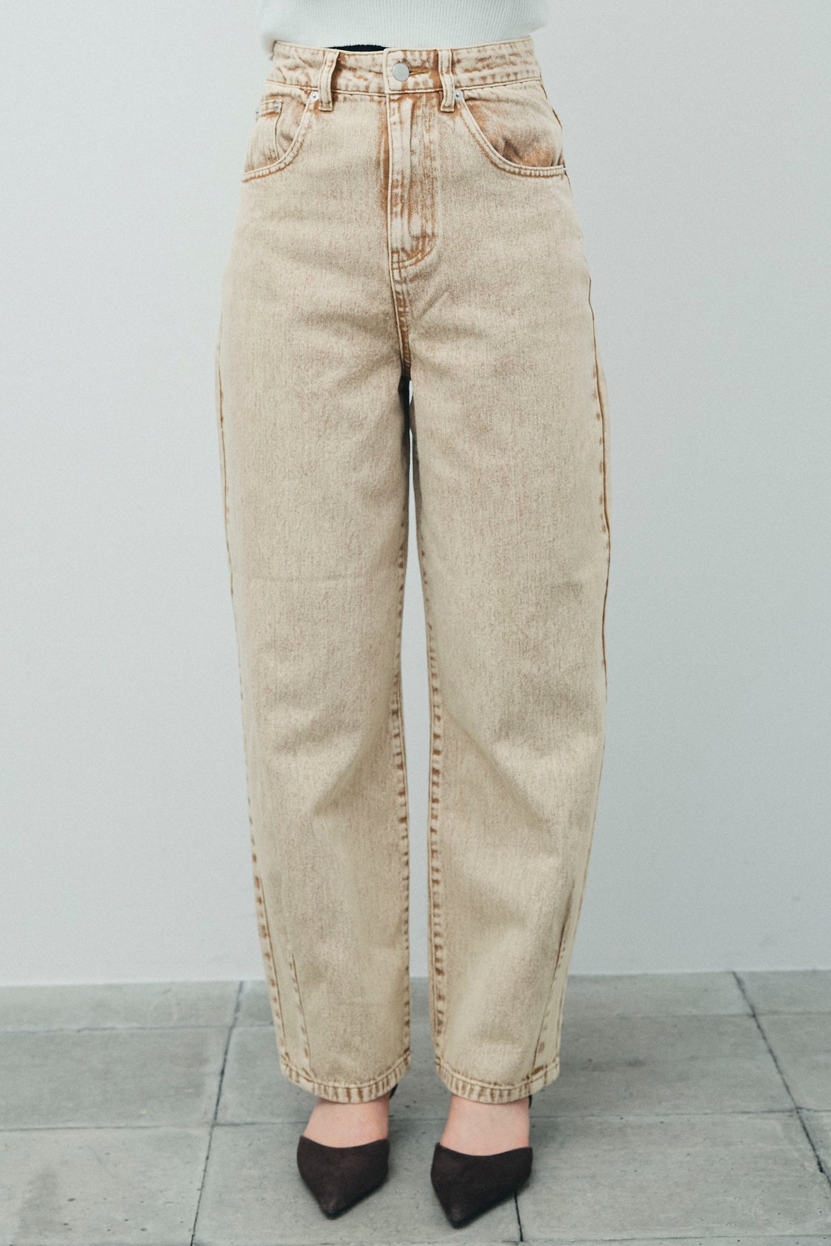 ヴィンテージ風の風合いが魅力のカーブデニムパンツ。ややハイウエストで、スタイルを引き立てるシルエットが特徴です。 しっかりとしたデニム生地ながらも、履き心地は軽やかで、リラックスした着用感を実現。自然な色落ち感とヒゲ加工が、こなれた雰囲気を作り出します。 脚長効果のあるストレートシルエットで、トップスをインしてもアウトにしても、バランスよく着こなせます。カジュアルコーデはもちろん、シャツやブラウスとの相性も良く、さまざまなスタイルに合わせやすいアイテムです。