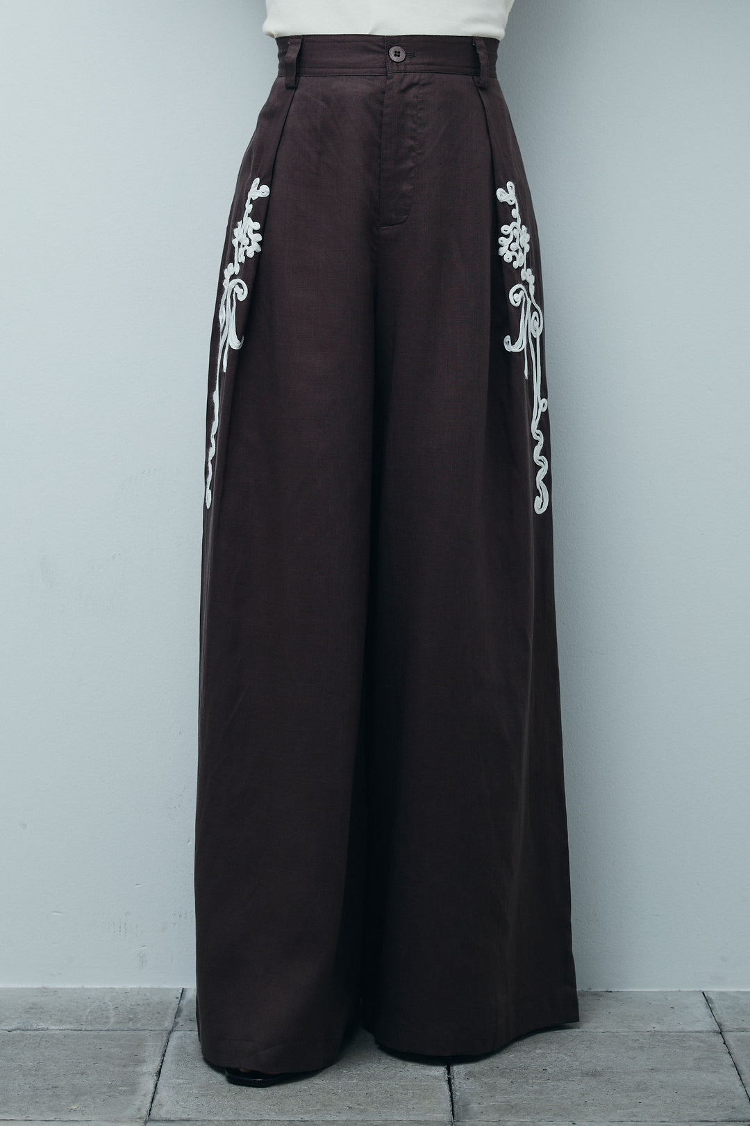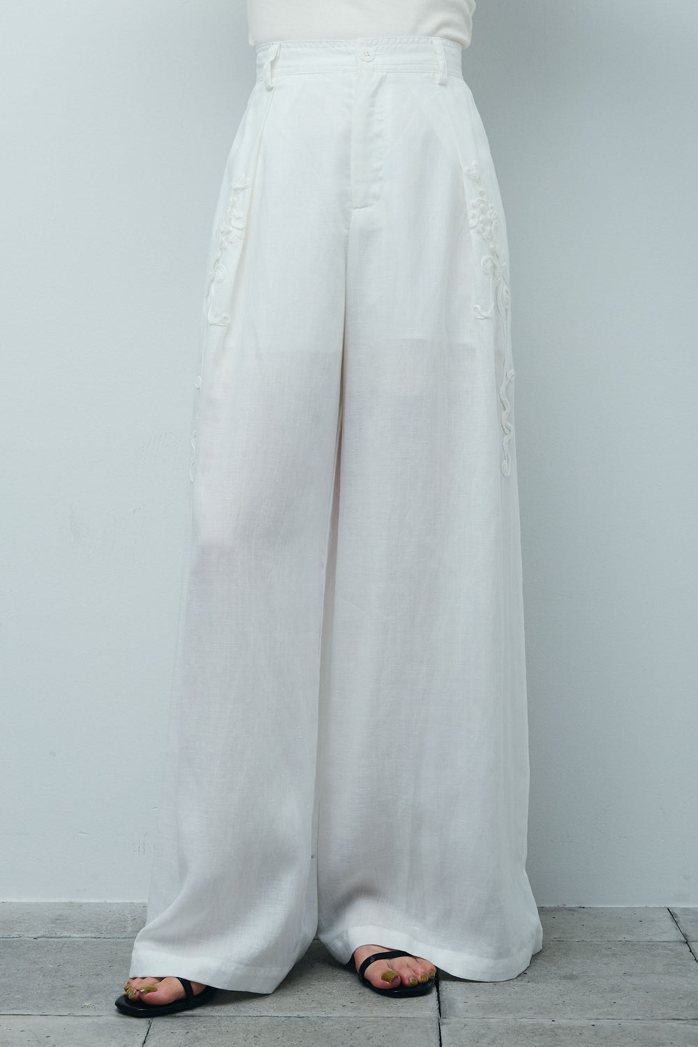 [予約]リネンミックステープ刺繍ワイドパンツ